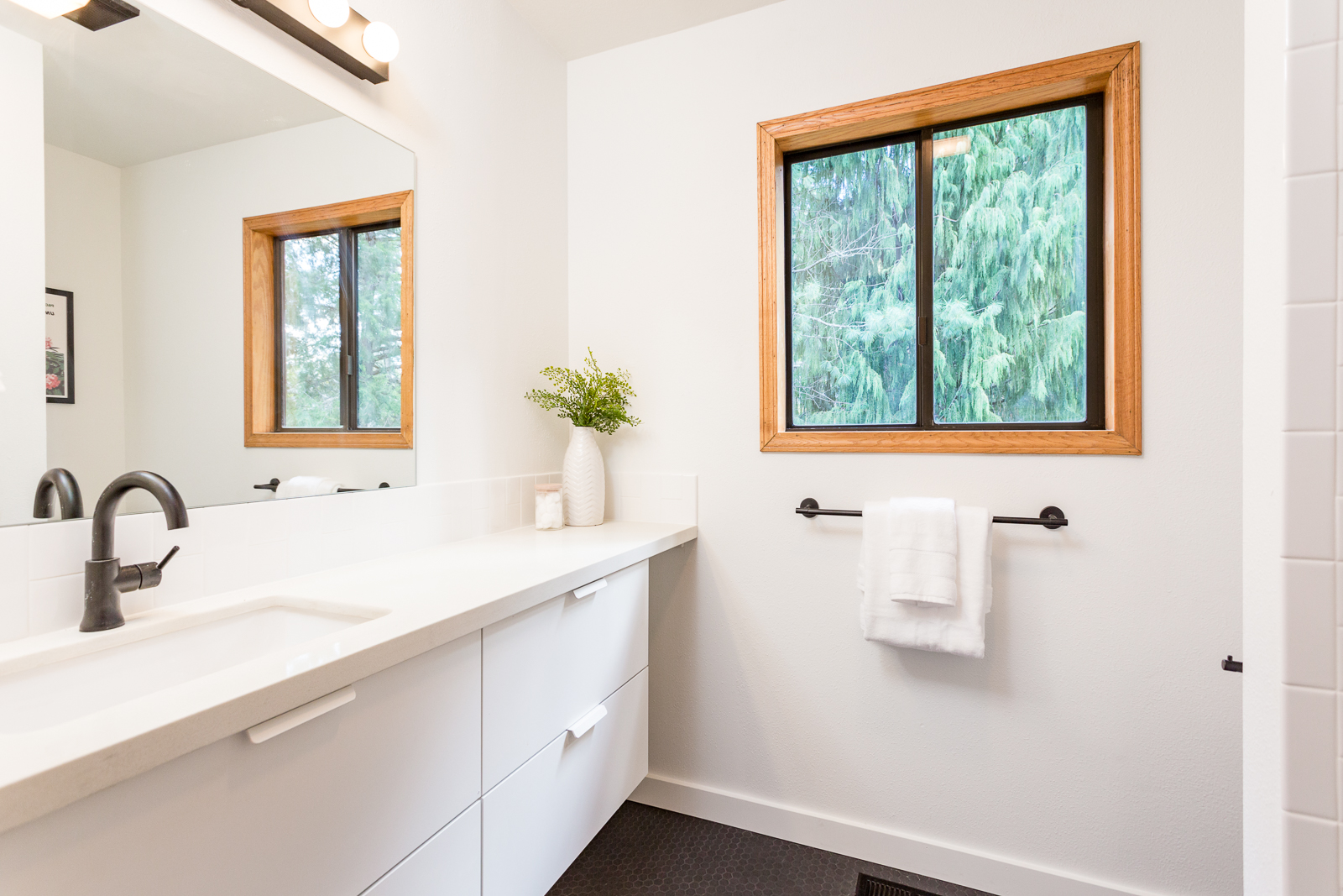 This NW contemporary home is ensconced in nature, backing up to hundreds of acres of green-space and situated on a beautiful butte. The neighborhood is late mid century and full of cool homes. The house itself has just been lovingly remodeled with many new systems: furnace/heat pump, deck, gutters, garage doors, water heater, paint inside and out, fixtures, hardware etc etc. Do yourself a favor and come see it for yourself!