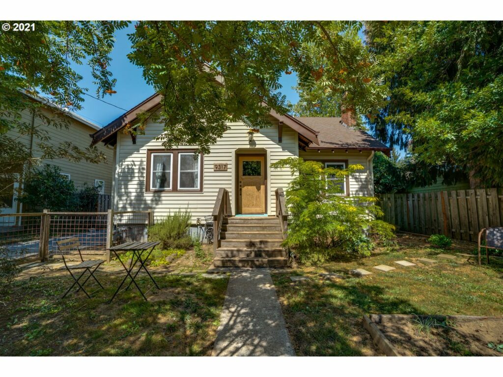 This cozy bungalow mixes old world charm with modern updates. The charm comes from hardwood floors, original millwork, an elegant brick fireplace, and a dining room with original built-in hutch that shines in the afternoon light. The updated bathrooms, kitchen with butcher block counter and stainless-steel appliances, bring modern convenience. There are two bedrooms on the main, with a bedroom and bonus space on the upper level, a family room downstairs, with laundry room and fully shelved storage room.  The yard has abundant raspberries, planter boxes, and a chicken coop for the urban farmer. Located on a tucked away private street in north St. Johns, with easy access to bike trails and parks, shopping, and everything St. Johns has to offer.