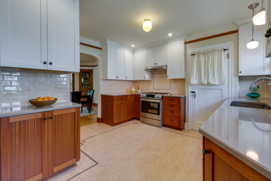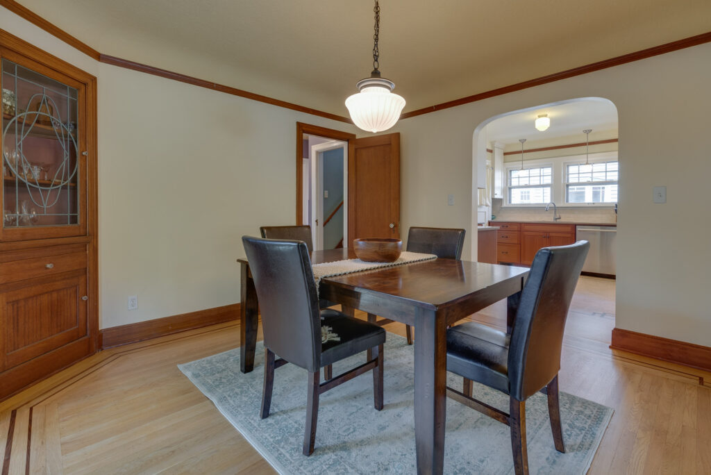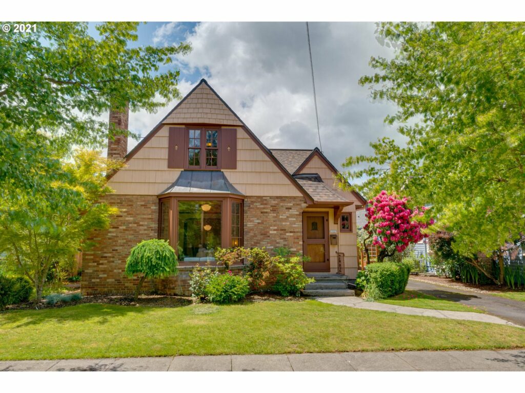 Luxe English bungalow in coveted Hawthorne-Division area. Classic good looks from the front brick façade to the rear grapevine covered arbor! Original art deco details and thoughtful upgrades. Large living and dining rooms with refinished inlaid oak floors, bay window, tiled fireplace, elegant lighting, splendid leaded mahogany built-in, south-facing sunny alcove with newer wood windows. Eat-in, cook’s kitchen with quartz counters, tiled backsplash, custom cabinets, stainless steel appliances and inlaid Marmoleum floor — designed to perfection in keeping with the home’s essence. Ample closets. Tiled bath. Distinctive French doors. The roomy upstairs suite accommodates a king bed, has skylights, a full bathroom with two sinks, walk-in closet, built-in drawers and loft area. Stained concrete floors create a European feeling in the lower level family room, bedroom and bathroom to spread out in or use as a short term rental. Great yard, patio and garage, too!