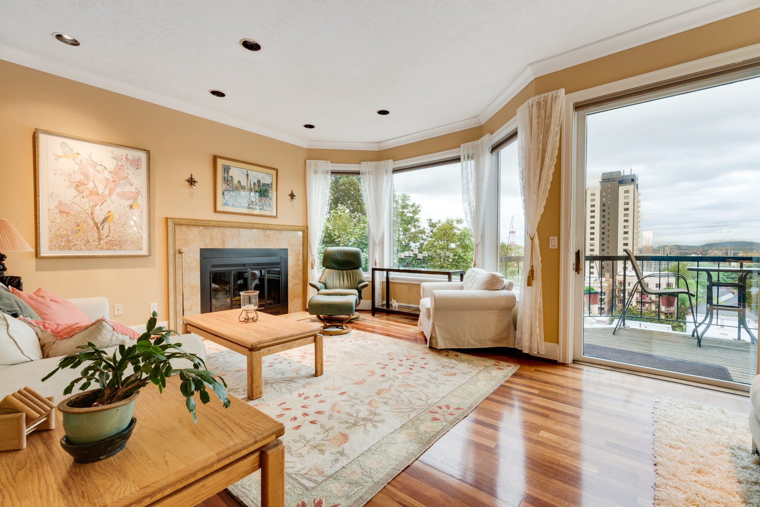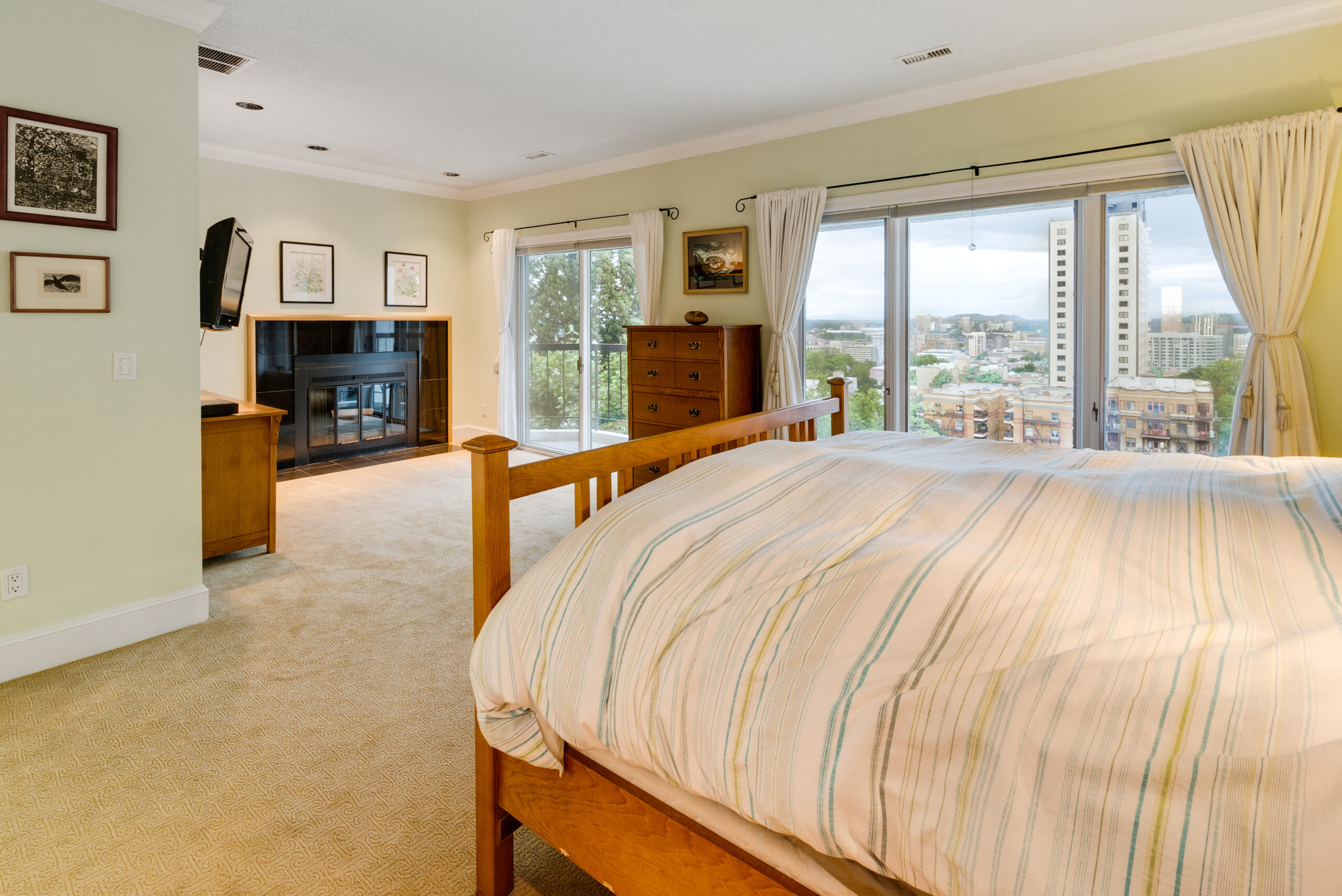 Live the best condo lifestyle right here! Enter the home and immediately be blown away by the spectacular view of the city and Cascades behind. On clear days, enjoy views of Mt. Hood, Mt. Adams, Mt. Saint Helen’s, and even Mt. Rainier right from the comfort of your own home. Watch as the sun sets and the city lights up from the spacious open concept living room with high ceilings and large windows to let in plenty of light. Perfect for entertaining or cozying up and enjoying a relaxing night in. Upstairs boasts two generous sized, light-filled extra bedrooms with a full bath and views of the neighborhood park. Situated at the front of the home, the master suite is a sanctuary with stunning views, a cozy sitting area with fireplace and a small balcony to enjoy a morning cup of coffee. The connected bathroom has an oversize shower, soaking tub, and cozy heated floors. Ample room downstairs to turn into a yoga studio, kids’ playroom, or anything you dream of, plus a huge storage area in the back. Private back deck, complete with a hot tub. Spacious patio for outdoor dining with those breath-taking city views.