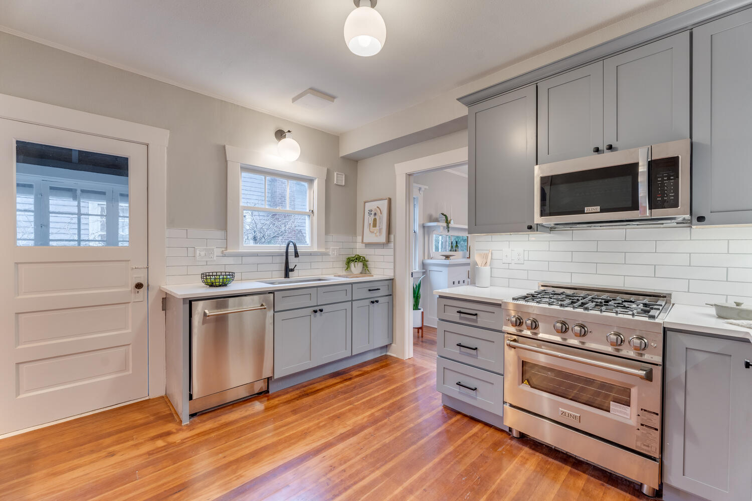 Tasteful updates blend with original charm in this stunning Grant Park/Hollywood renovation. An abundance of windows light up refinished hardwood floors on main, leading from front living room and dining room to gorgeous Chef’s kitchen with new Italian appliances, two beds, and full bath. Primary bed upstairs neighbors primary bath with dual sinks, luxury tiled shower, and spacious closet. Custom built-in features sprinkled throughout keep the original 1922 home in tact at the heart of the remodel. Complete and move-in ready with new roof, electrical, plumbing, HVAC, water heater, and carport make this home one that can’t be missed! A great location on a quiet residential block, just steps from Grant High School and neighborhood treasures such as Gado Gado and Hollywood Theater.
