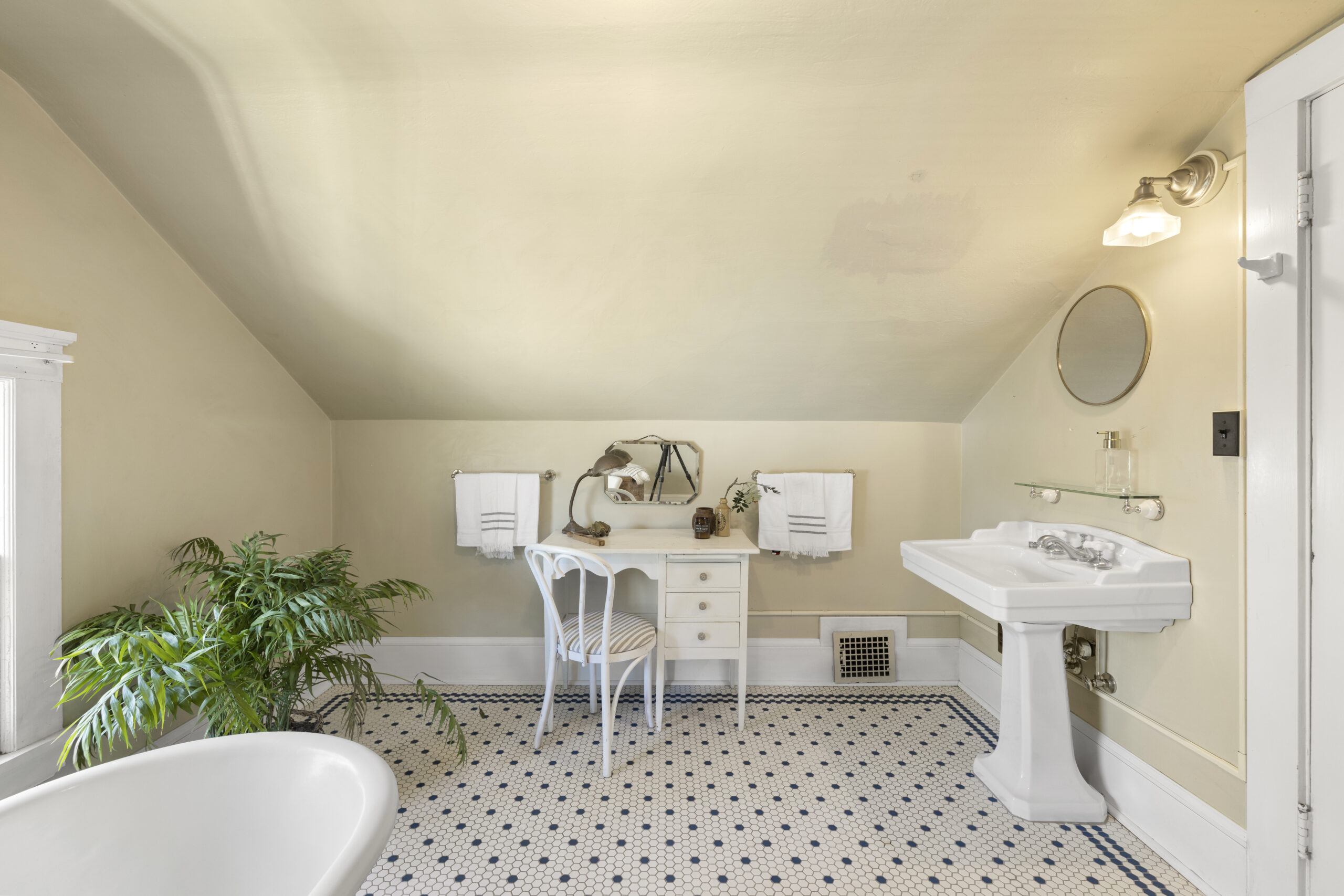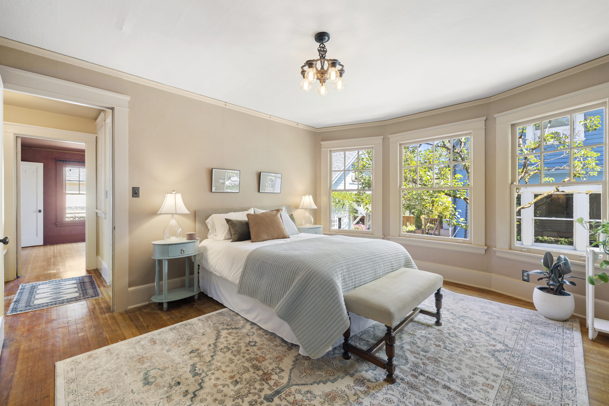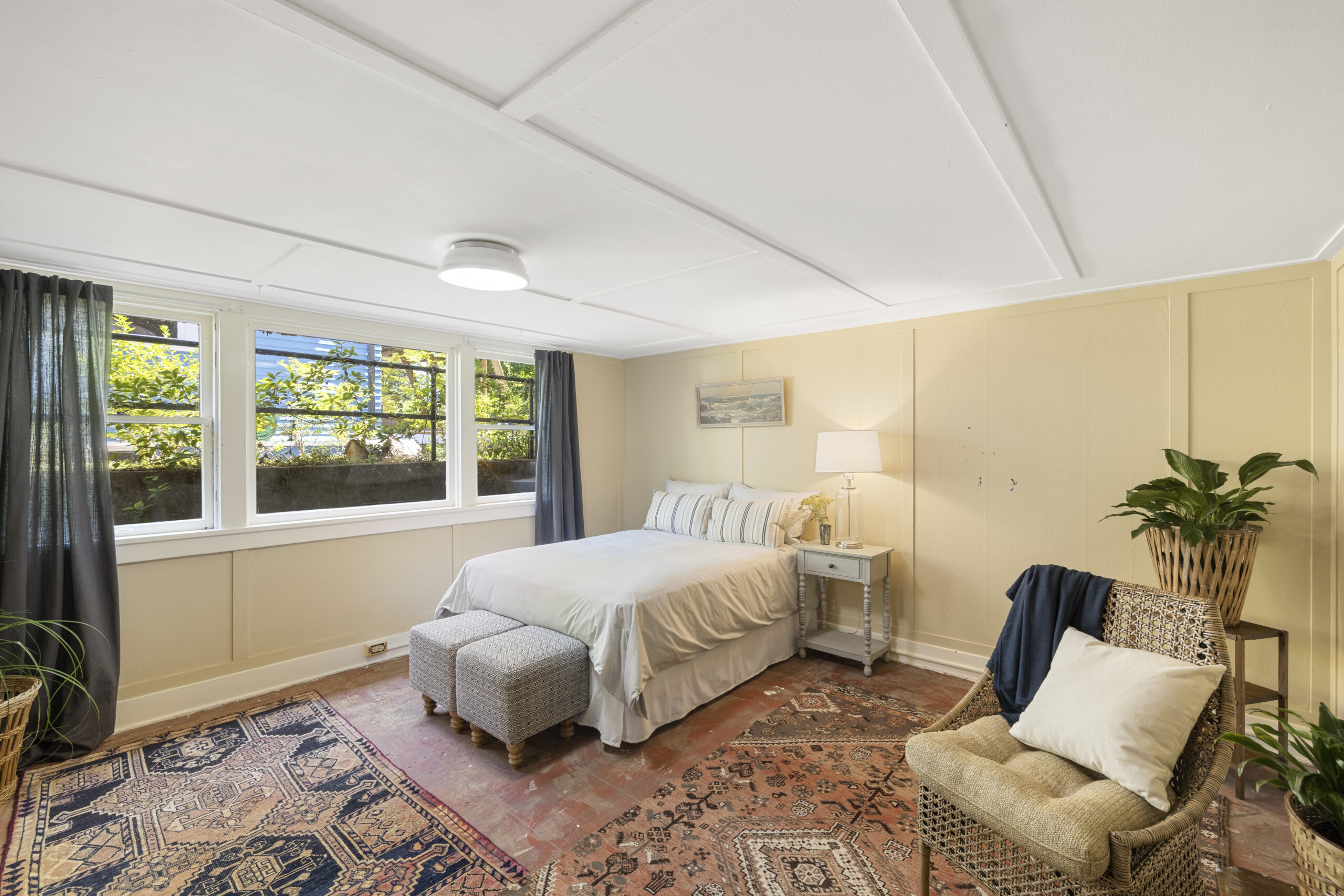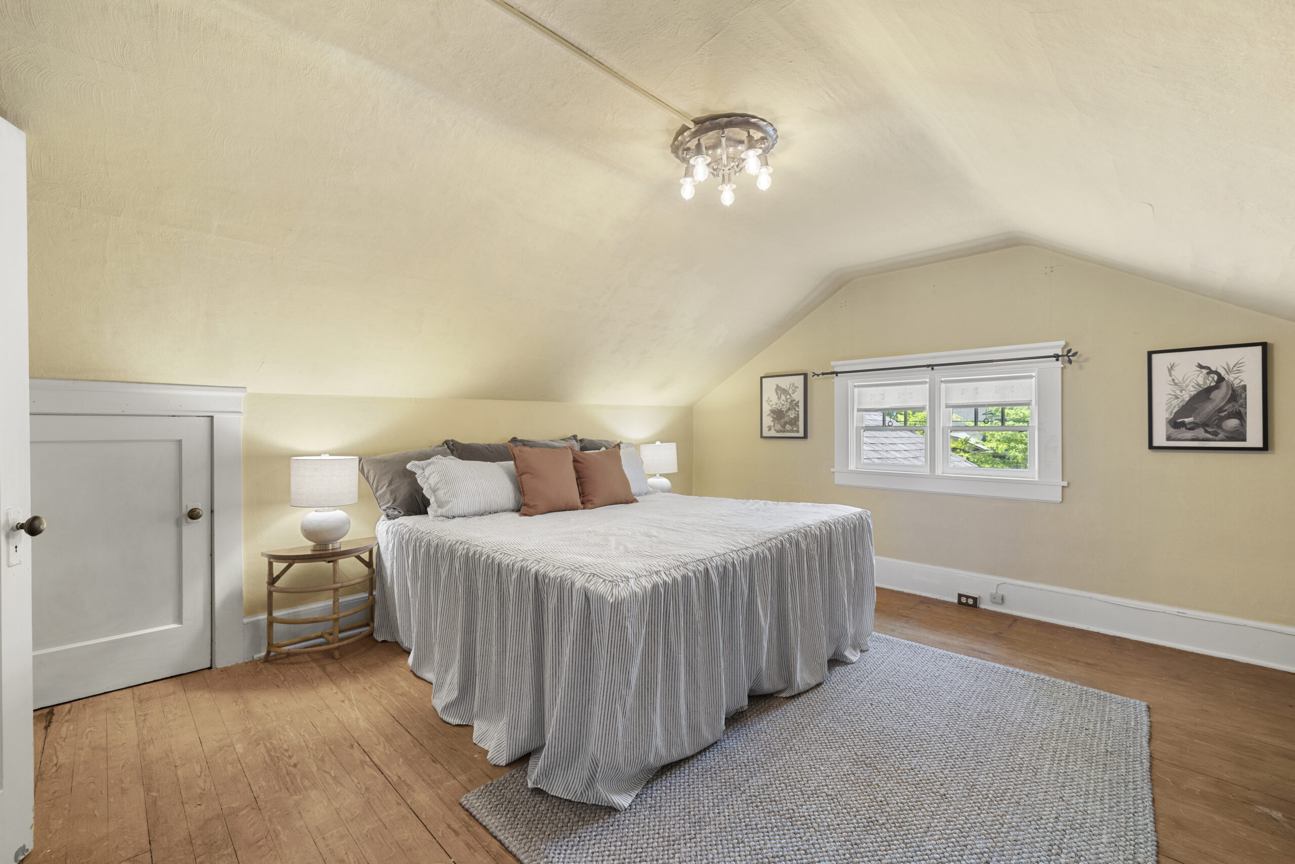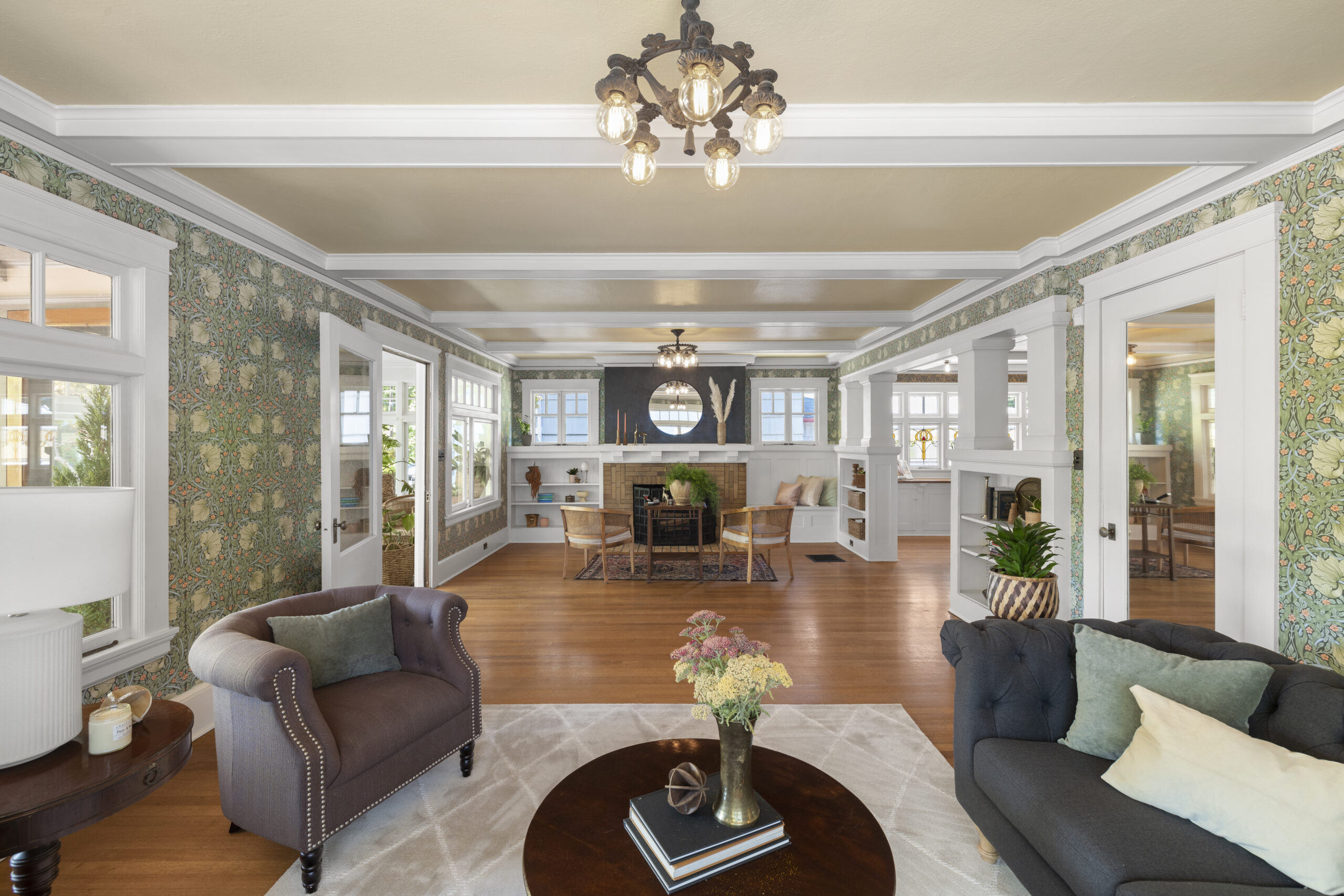 View ListingArts & Crafts bungalow brimming with preserved and embellished architectural details, including natural brick, classic half-timbers, stucco accents, and ornamental trim. Beckoning front porch leads to an enclosed botanical vestibule that even has its own spigot! Tremendous living room with expansive windows and an original brick fireplace. Frescoed dining room adorned by stained glass panels and wainscotting. Relish the exposed beams, built-in bookshelves, plate rail, picture molding, designer art wallpaper, period light fixtures, and retired dumb waiter bench seat. Vintage style kitchen with new retro range and fridge, soapstone sink, antique wall phone, and hidden dishwasher. Timeless baths. Tongue and groove office nook. Old school daylight one-bedroom apartment on lower level with separate entrance. Storage galore, patio, and garage. All in fab Laurelhurst location with easy access to the park, Belmont, Hollywood, MAX & more, yet offset from the buzz of city life.