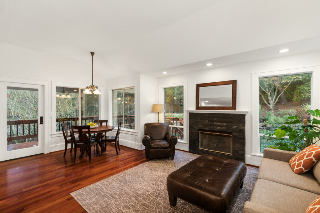 Surrounding all of these beautiful interior spaces are established grounds with raised beds, a covered wrap around cedar deck and beautiful trees and plantings. Situated proudly in the heart of a sought after Ash Creek cul-de-sac community, this address is just a mile to Multnomah Village and less than a mile to Gabriel Park. Efficient commute patterns, quick access to the SW Community Center and just a dozen blocks to Village shops like Grand Central Bakery make this noteworthy property even more compelling. To find a floor plan and remodeling like this in a 90’s traditional close to Multnomah Village can take years, so it is with great excitement and pride that we present this amazing property to the market!