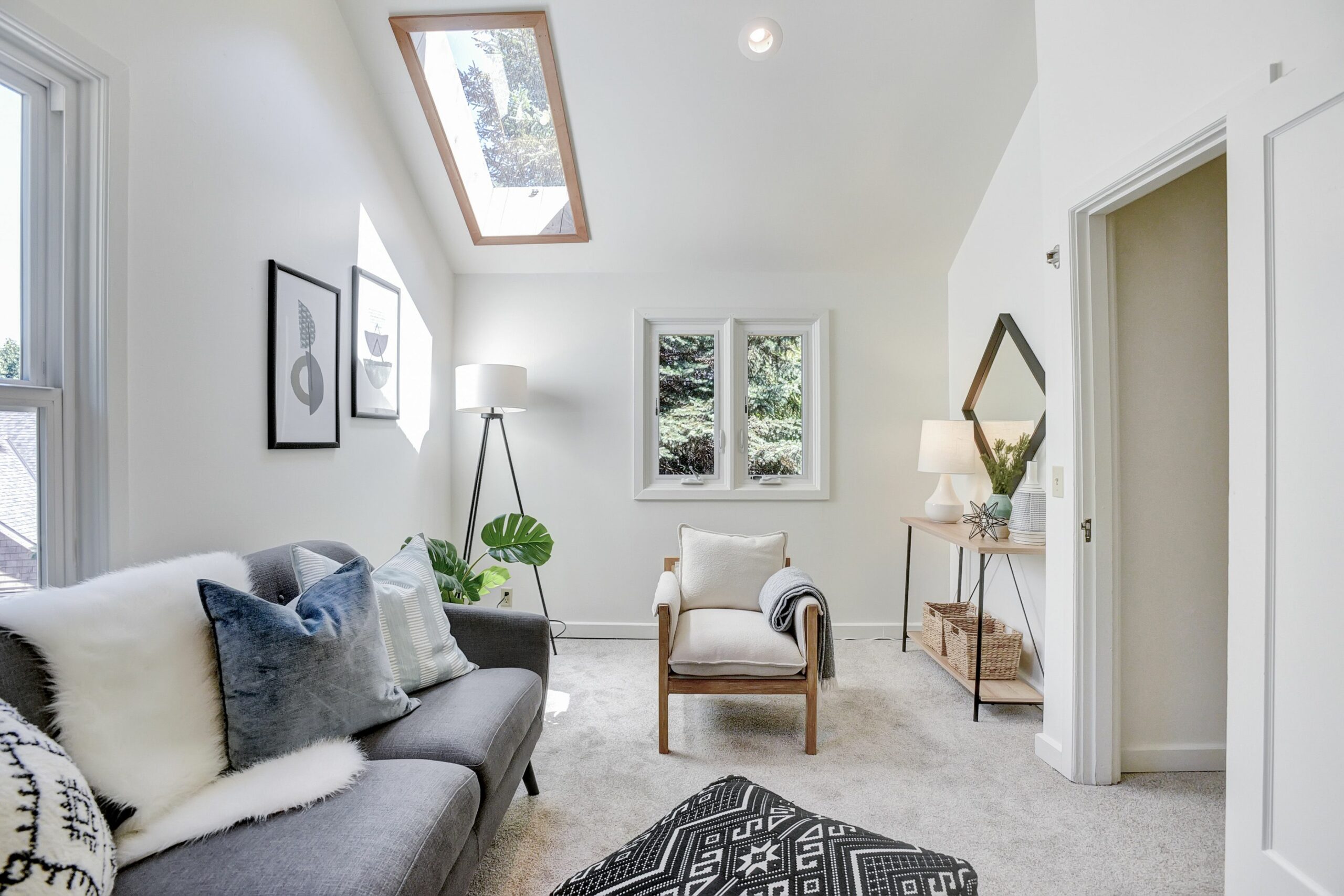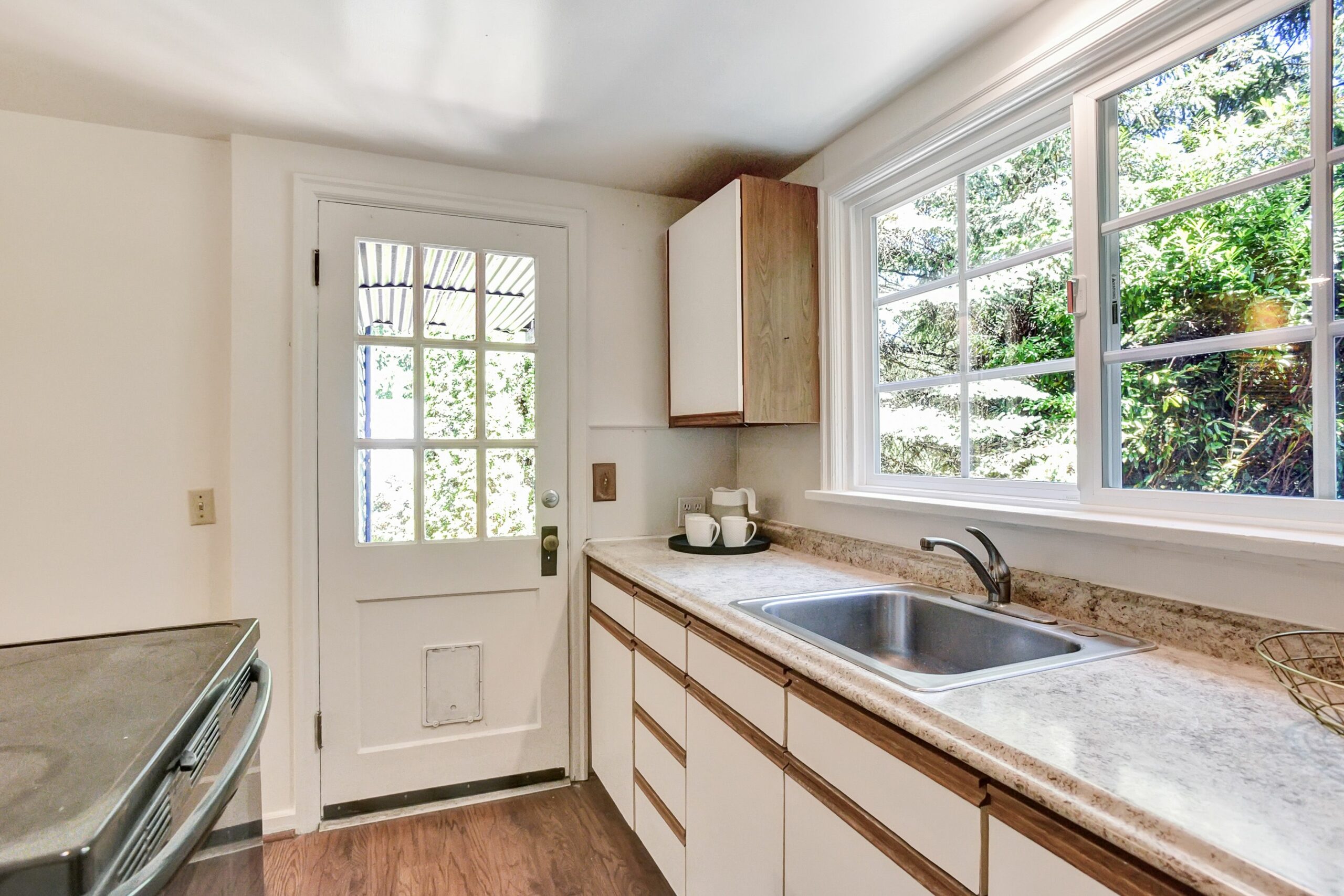 Set back amongst the trees on an almost 1/4 acre lot, this cutie wants you to unlock its potential. 1 bedroom and a bonus room upstairs are separated by a half bathroom, and brand new skylights allow an abundance of light throughout the whole house. A balcony off the upstairs bedroom looks out to the treed backyard which is just screaming for someone who likes to entertain, or someone with a green thumb! Downstairs, you’ll find 2 more bedrooms and a full bathroom adjacent to the open concept living and kitchen area. An attached one-car garage and full unfinished basement complete the package. The basement is plumbed for a bathroom and has outside access, so plenty of opportunity for finishing for a creative space! The roof has been completely replaced, along with the skylights and gutters, new carpet upstairs and the house has been freshly painted, inside and out. What a lovely canvas to offer its next owners!