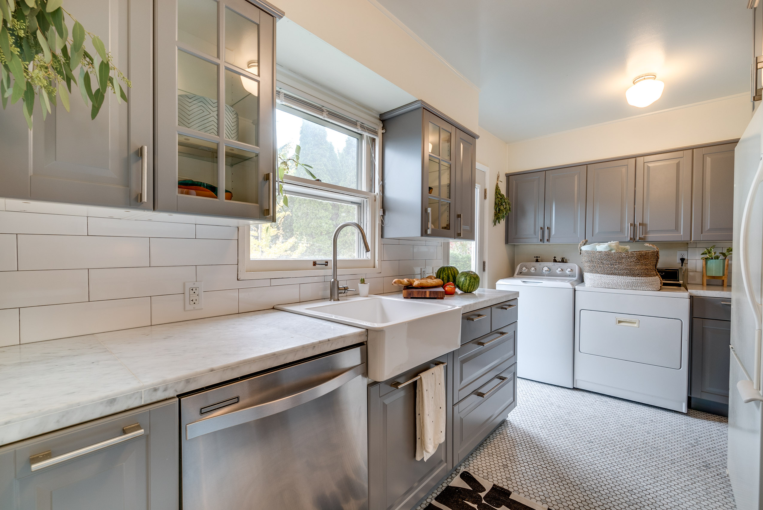 This charming mid-century ranch has it all. The stupendous location straddles the best of the Portsmouth and St. John’s neighborhoods, like only being a hop, skip and a jump to New Seasons on Lombard, and short ride to downtown St. Johns. This light filled home has an open floor plan, and a wonderfully updated kitchen and bath, with Carrara marble tile floors and counters. The roof and sewer line were replaced in 2011, the 90+ furnace replaced in 2007, and tankless water heater the same year. There are beautiful hardwood floors throughout, and the kitchen opens to a spacious back yard waiting for your summer urban garden or the crisp autumn evenings cozied in front of a chiminea on the patio.