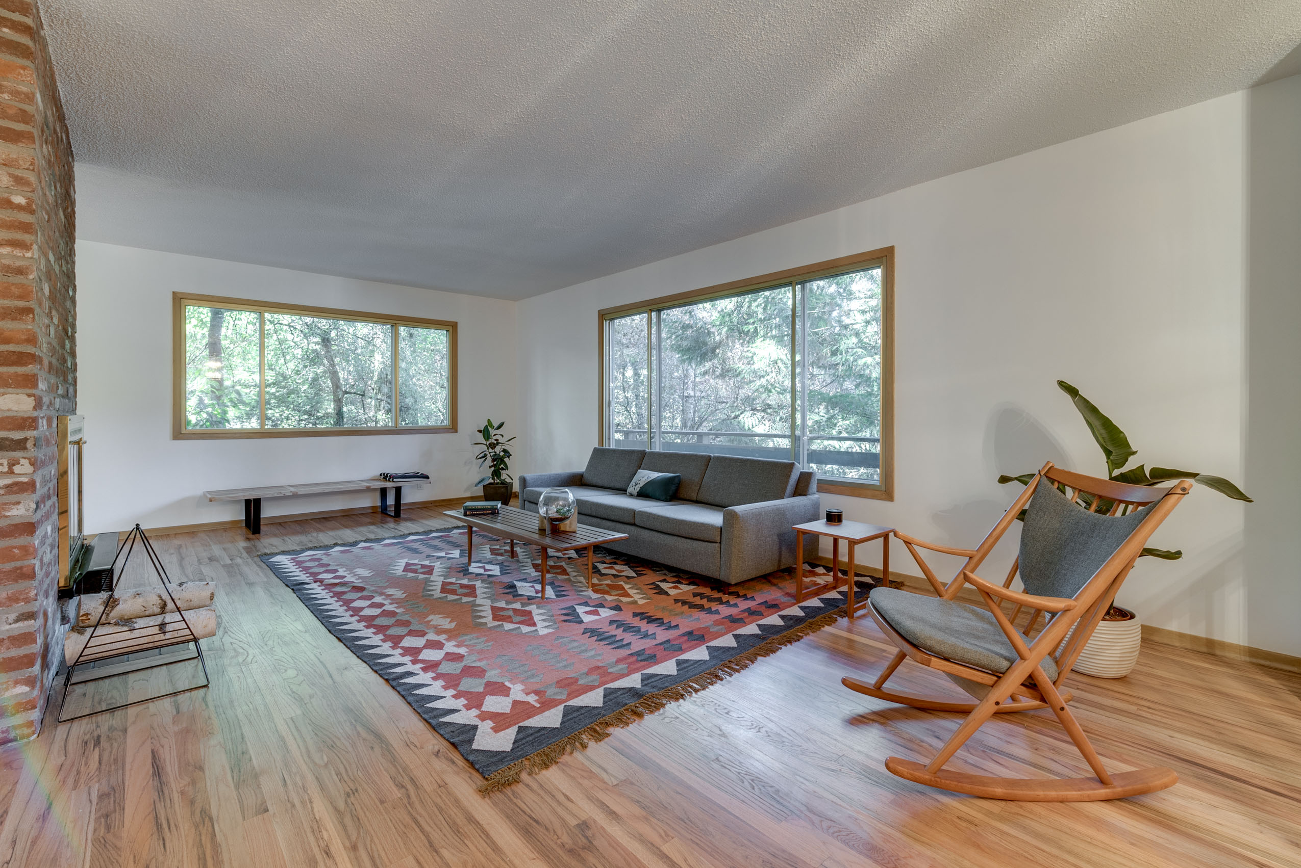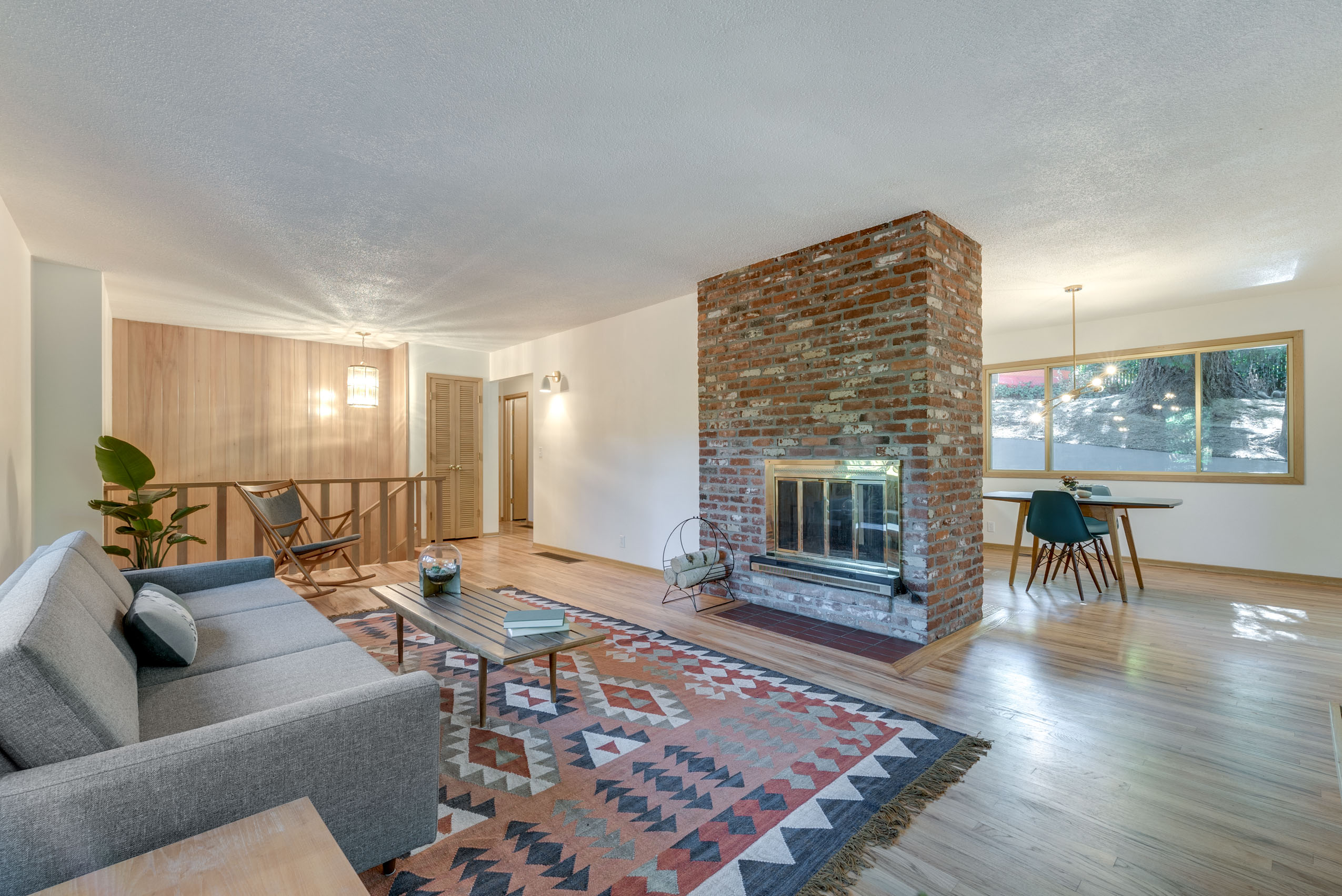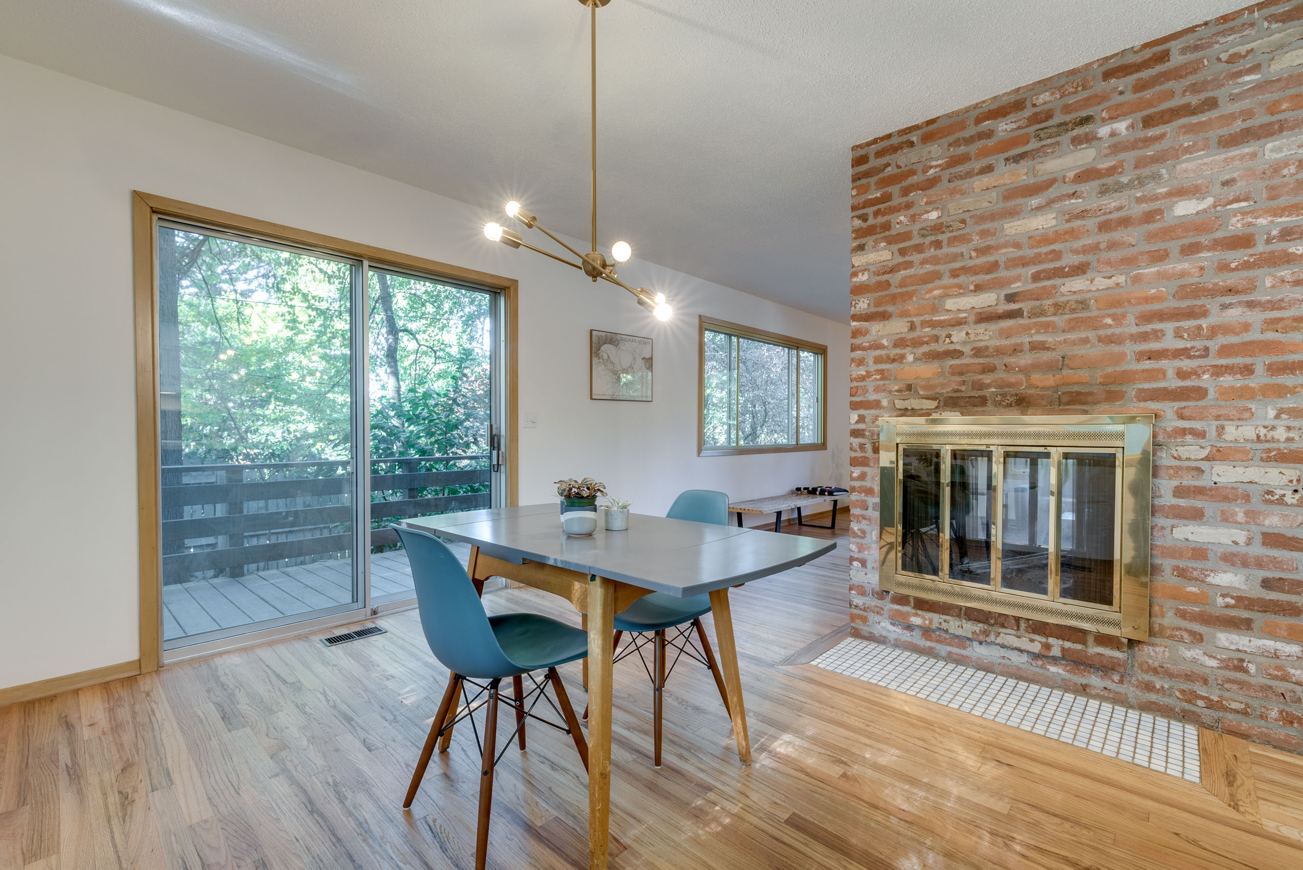 Mid century gem sits high up off the street with large picture windows in the living space giving the sense that you are floating in the trees. A functional split level layout offers living space with natural light in the upper and lower floors. Full of original vintage details and hardwood floors throughout with an updated modern bathroom featuring Pratt & Larson tile floor and a marble stone sink. Stay cozy on chilly winter evenings with the double sided fireplace in both the upstairs and downstairs living rooms. A private and tranquil setting with an elegant wrap around deck that connects the back and front of the house. Located in a quiet, secluded neighborhood yet close to many amenities, including Gabriel Park, Multnomah Village, downtown Hillsdale, Burger Stevens, Gurtons, Baker and Spice.