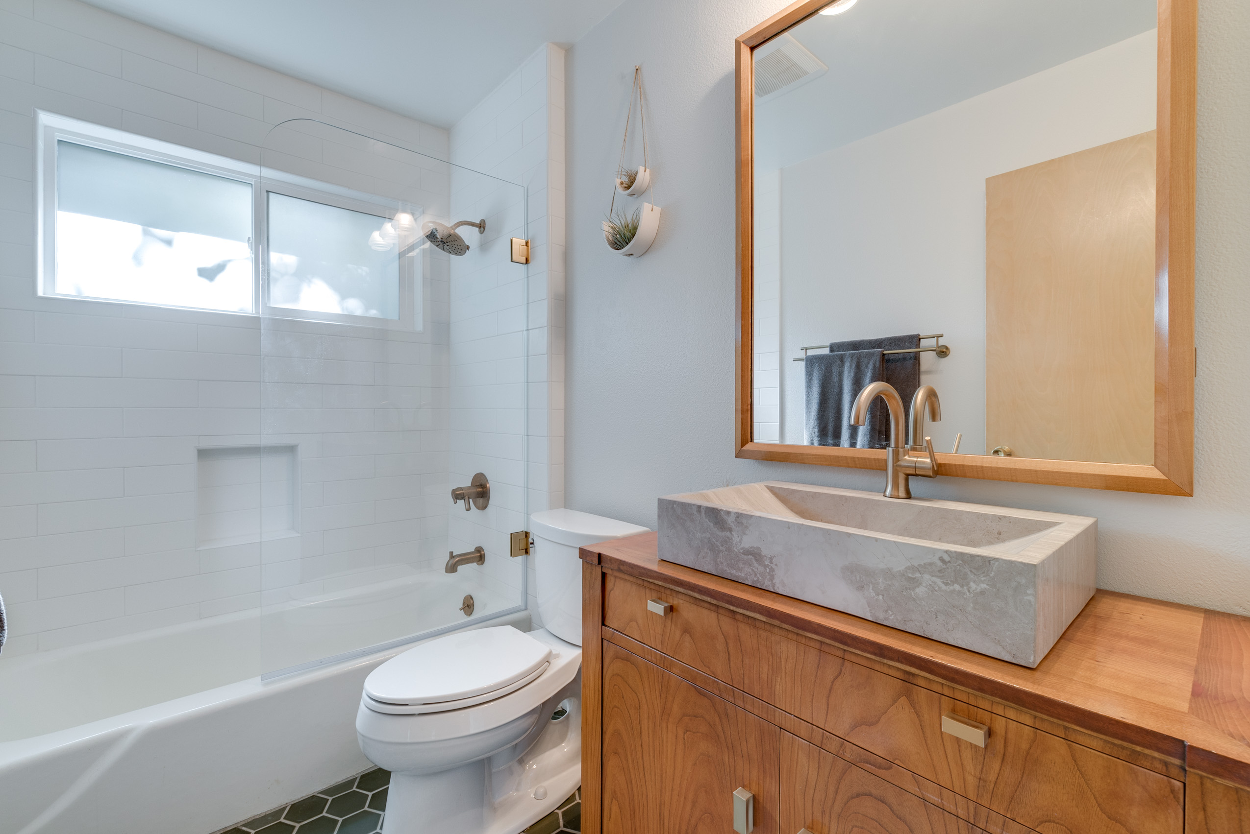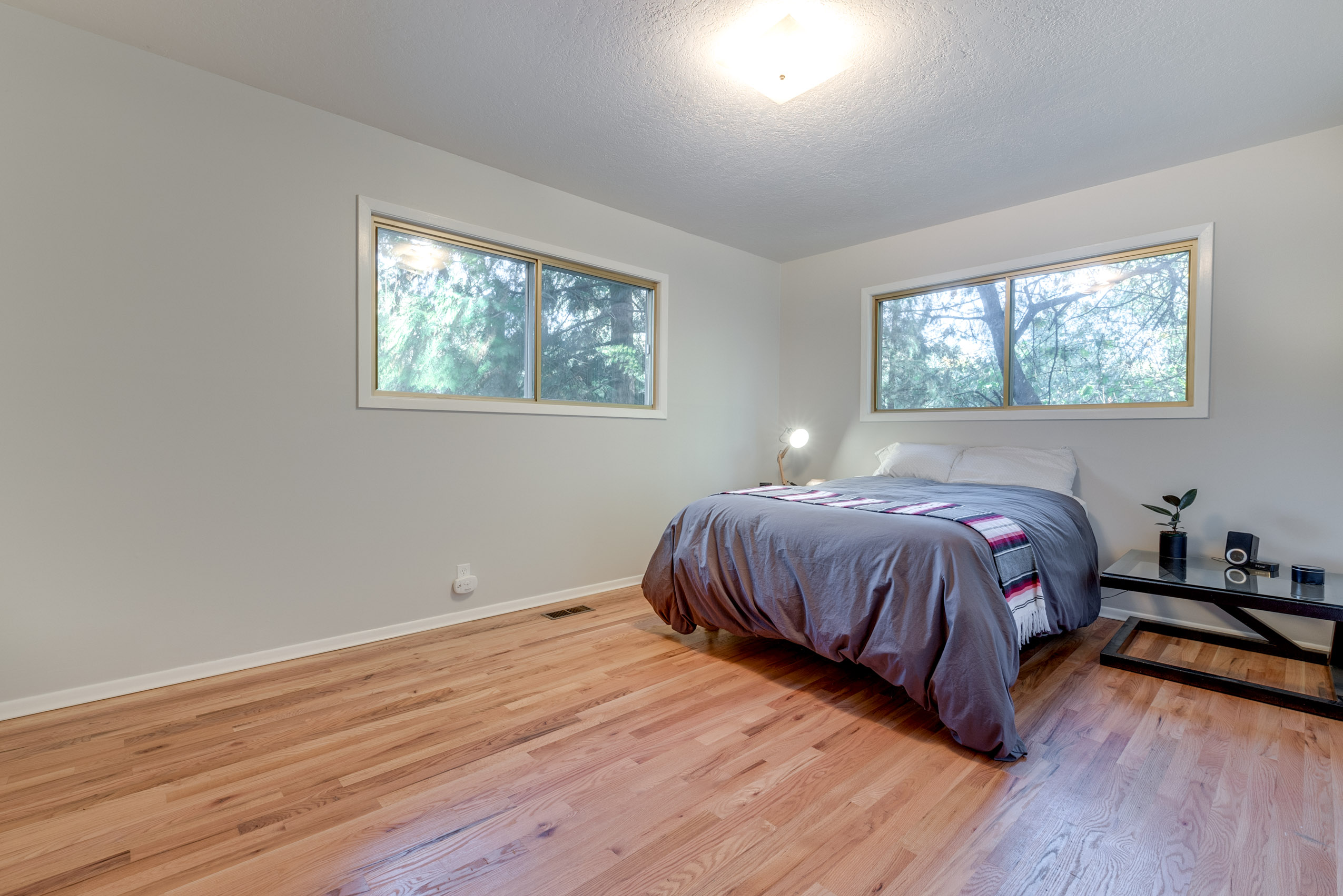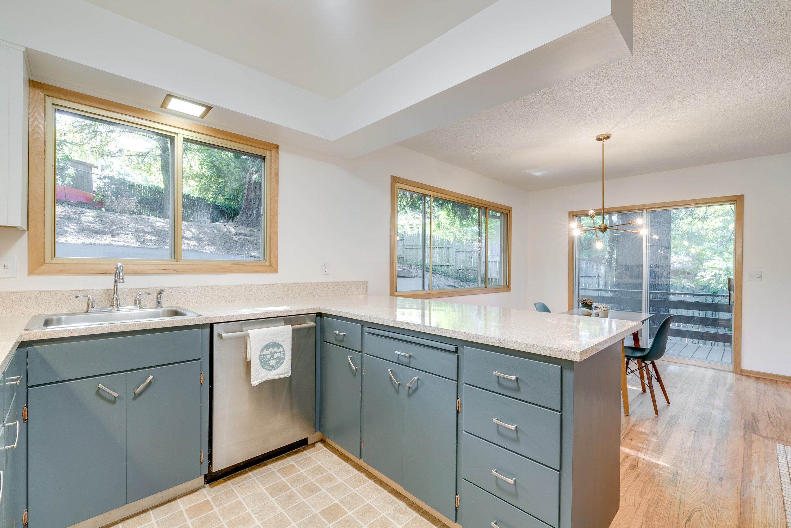 Mid century gem sits high up off the street with large picture windows in the living space giving the sense that you are floating in the trees. A functional split level layout offers living space with natural light in the upper and lower floors. Full of original vintage details and hardwood floors throughout with an updated modern bathroom featuring Pratt & Larson tile floor and a marble stone sink. Stay cozy on chilly winter evenings with the double sided fireplace in both the upstairs and downstairs living rooms. A private and tranquil setting with an elegant wrap around deck that connects the back and front of the house. Located in a quiet, secluded neighborhood yet close to many amenities, including Gabriel Park, Multnomah Village, downtown Hillsdale, Burger Stevens, Gurtons, Baker and Spice.