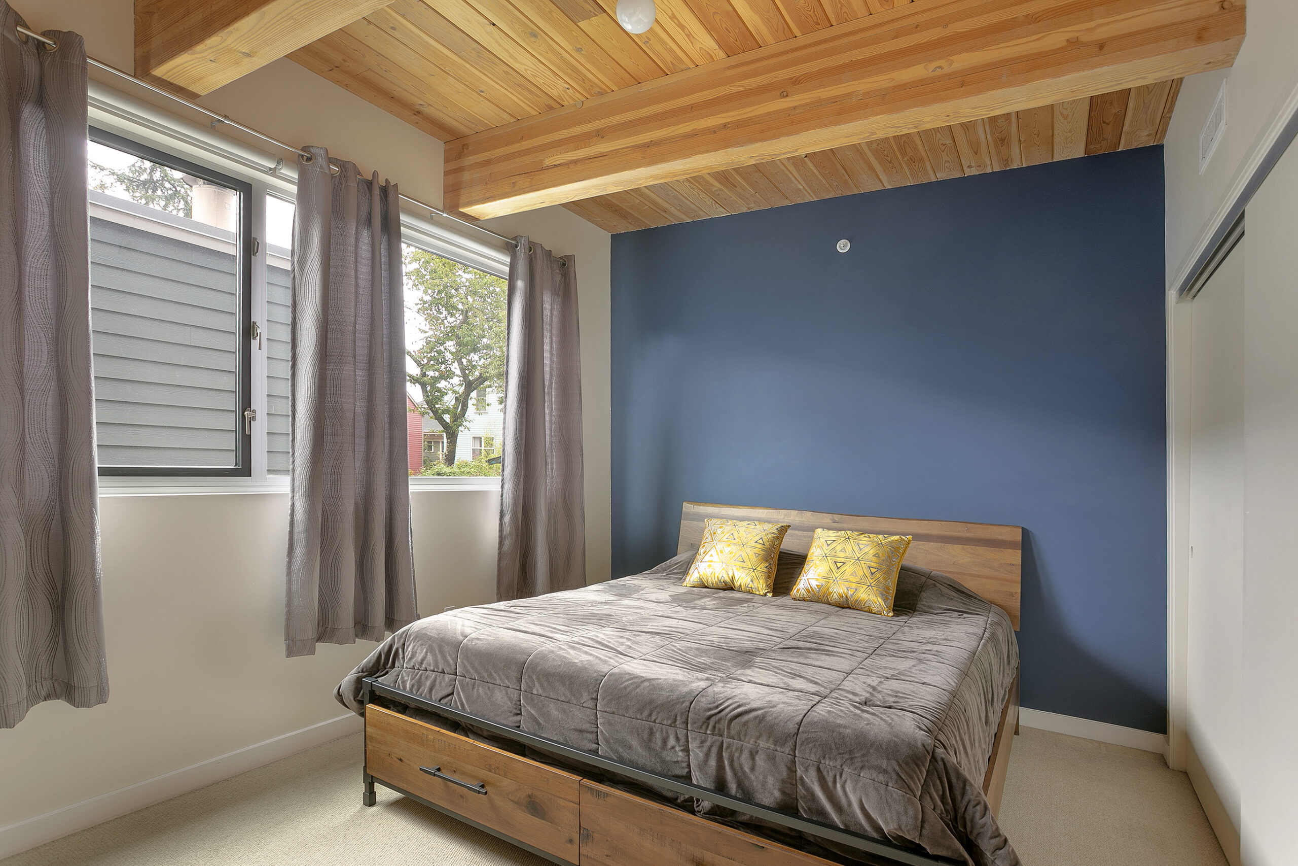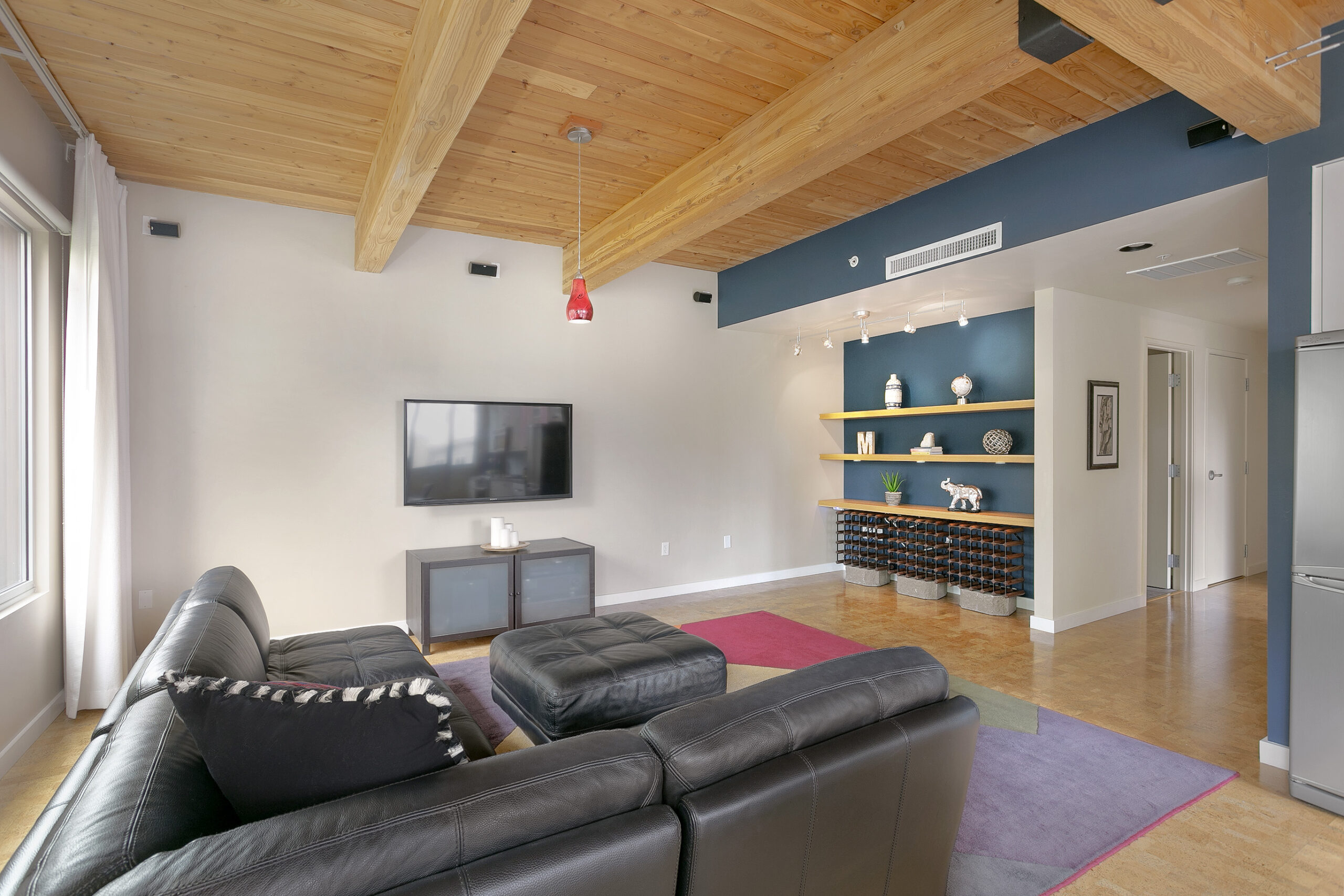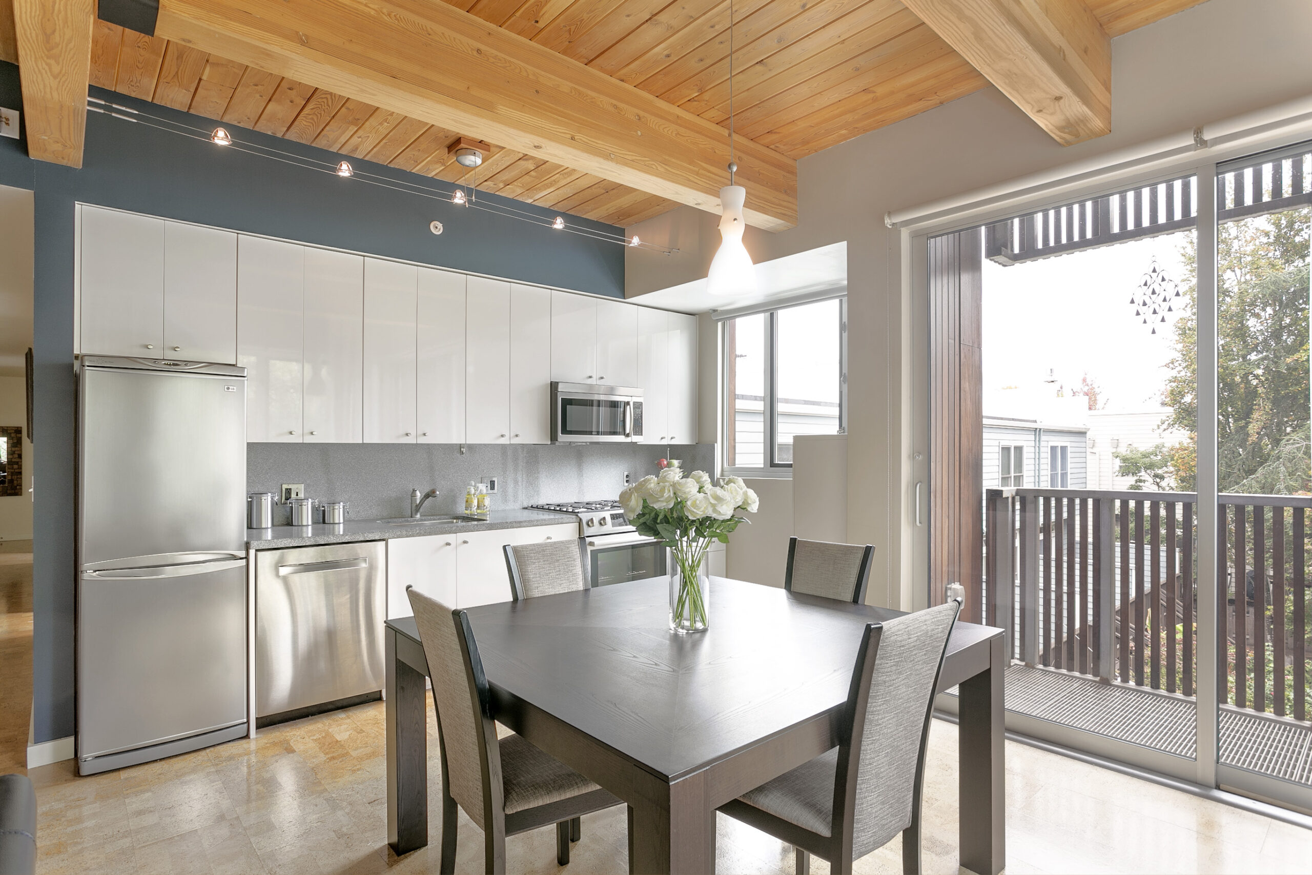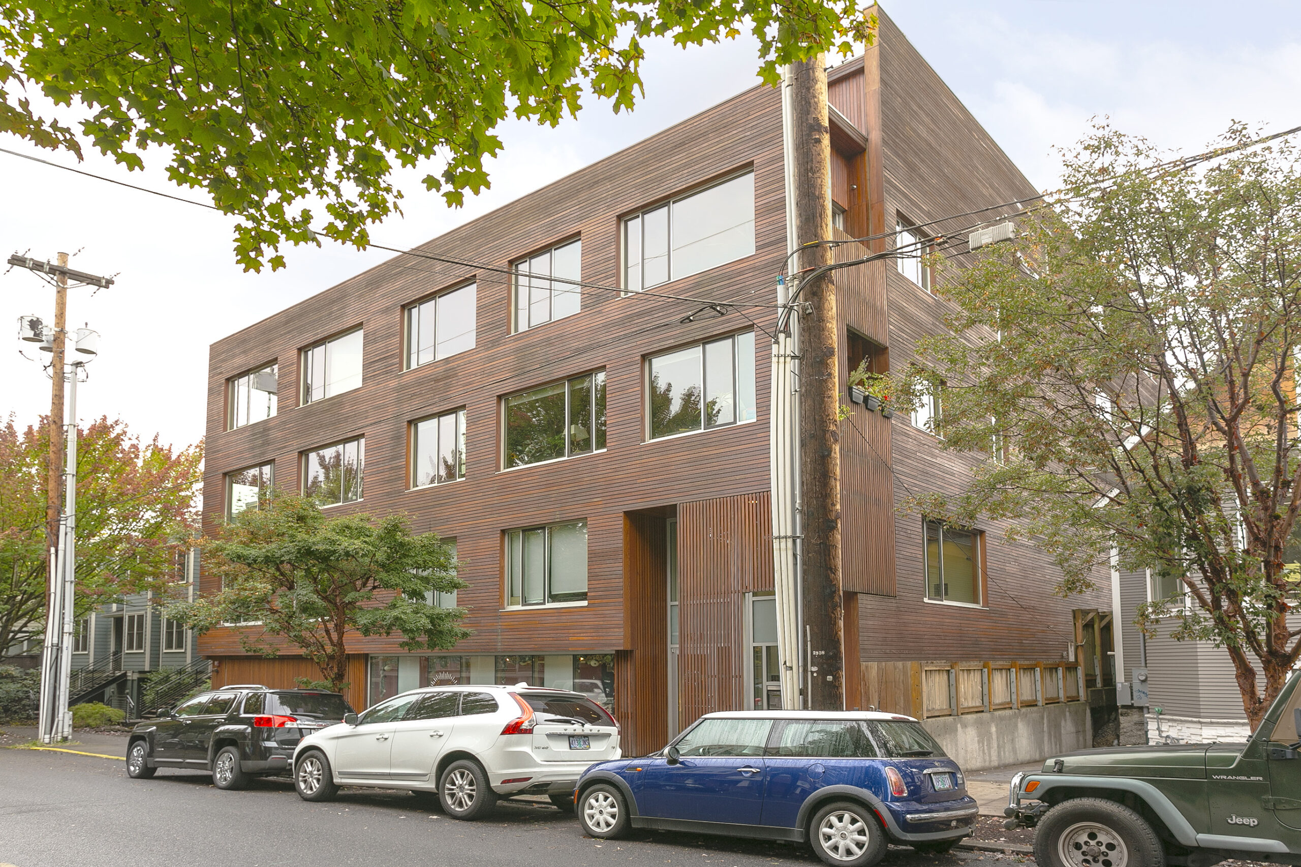 Beautiful, modern upper floor corner unit in the desirable Thurman Street Lofts in the Nob Hill neighborhood. An open concept in the main living spaces makes for easy entertaining, while the full two bedroom, two bathroom floor plan allows for privacy. Efficient kitchen features Bosch dishwasher, gas range, Hans Grohe faucets, Wenge wood caseworks, and cork floors. Enjoy the private balcony with sliding glass doors just off the dining room. Gorgeous details like exposed wood beams and eco-friendly cork floors with radiant floor heating add a luxurious touch to this modern dwelling. Bedrooms have lush Berber carpet, and the bathrooms feature marble counters and showers and slate tile flooring. Unit is pre-wired for surround sound and internet. Private storage and deeded parking in the basement. HOA includes exterior maintenance (including landscaping), common areas, garbage, water, gas, HOA management and insurance. Nearby to all the great shops and restaurants in NW, as well as 4 blocks to Forest Park trailhead.