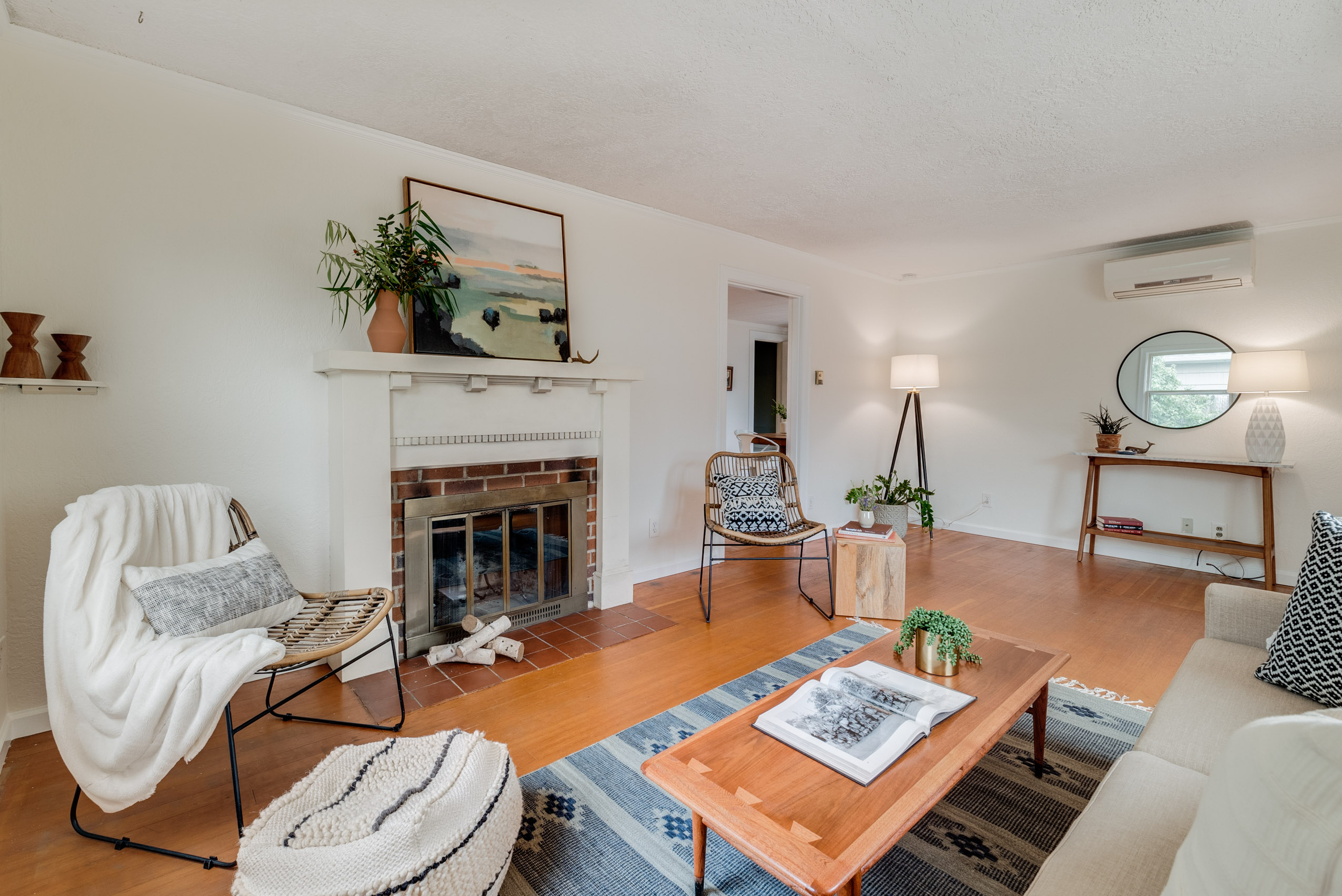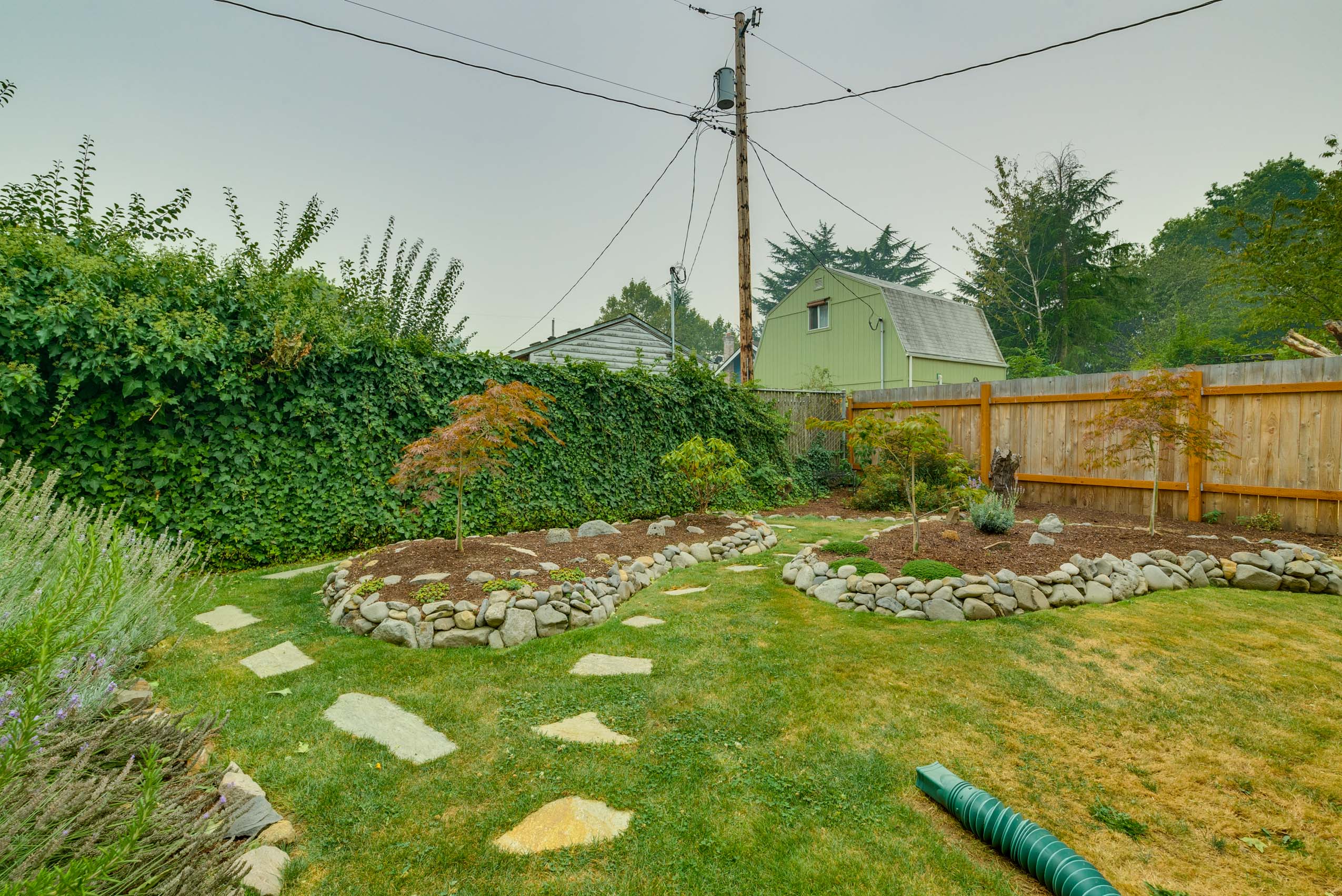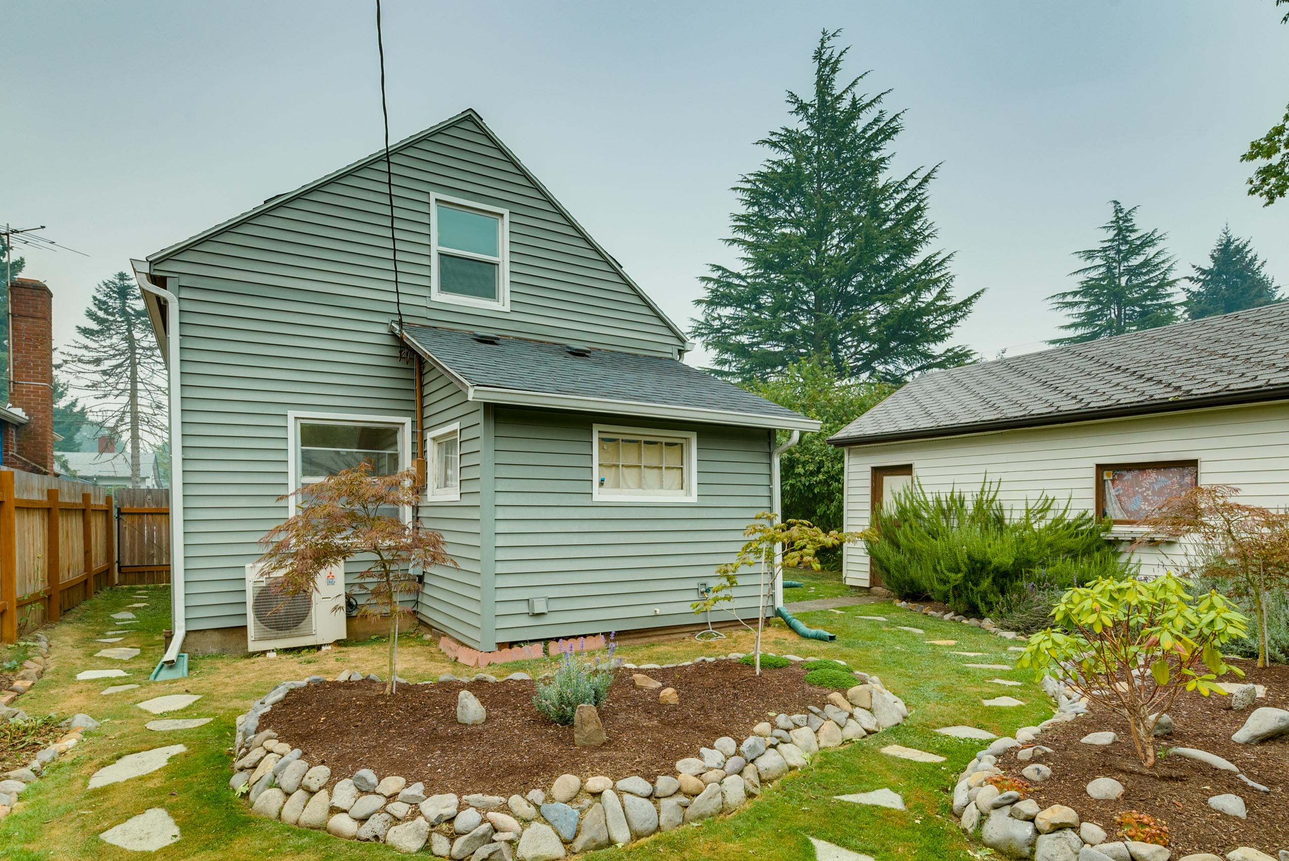 Cozy, light, and bright Montavilla Bungalow, just a stone’s throw to Mt. Tabor and all the good stuff on SE Stark! Details include warm wood floors and Marmoleum, a wood-burning fireplace in the living room, an eat-in kitchen, and a mud/laundry room that opens to the back deck facing a wall of dogwoods – part of the thoughtfully landscaped yard. Improvements include; mini-split AC/heat and insulation, new siding/gutters in 2017, updated bathroom, and permitted seismic retrofit. HES of 8!