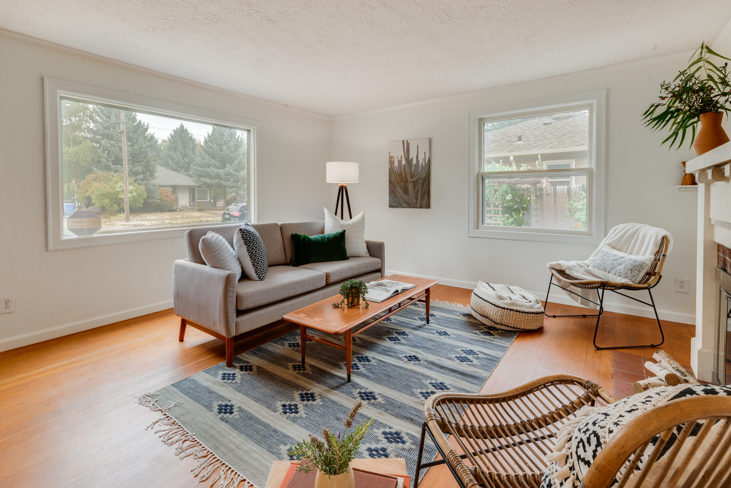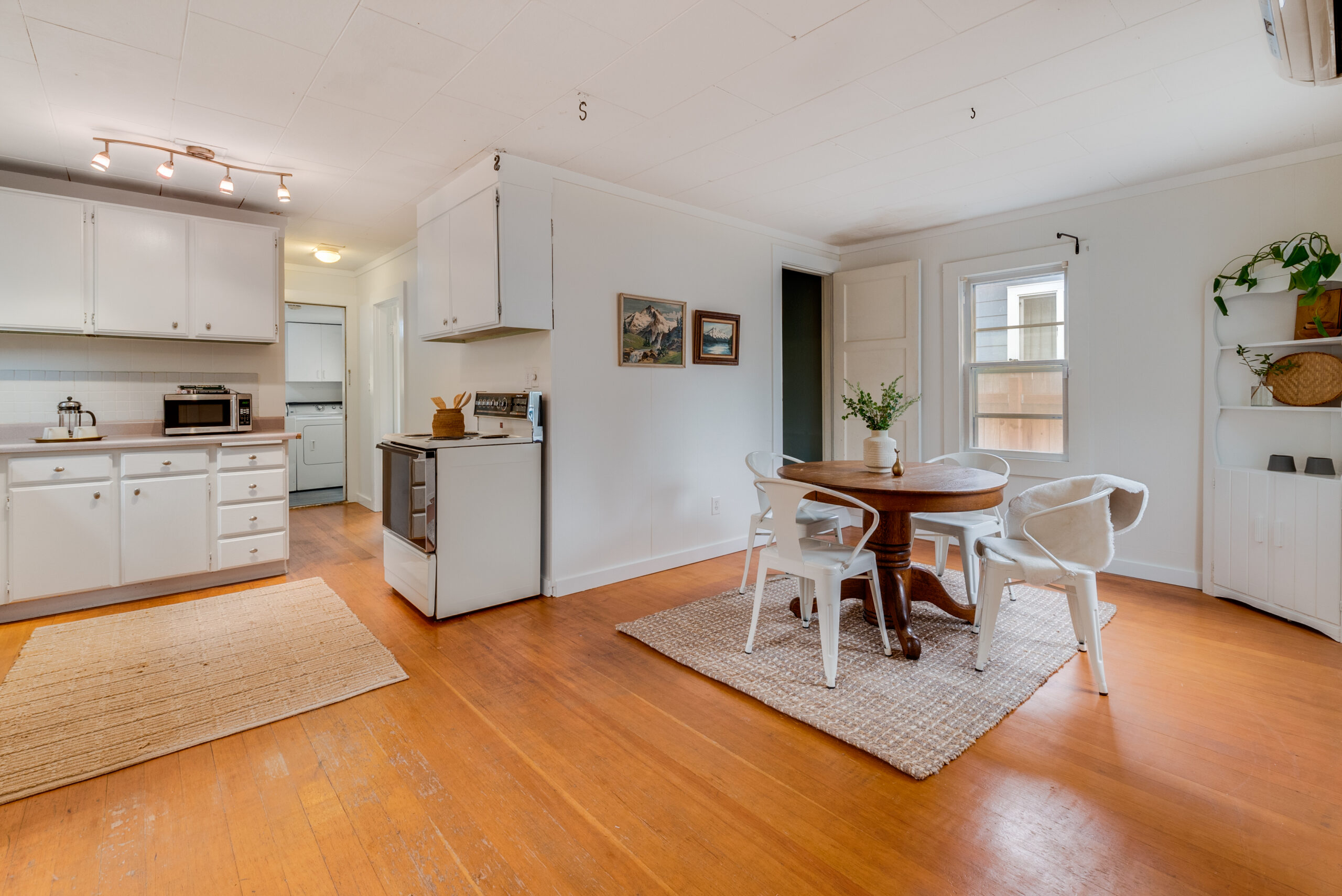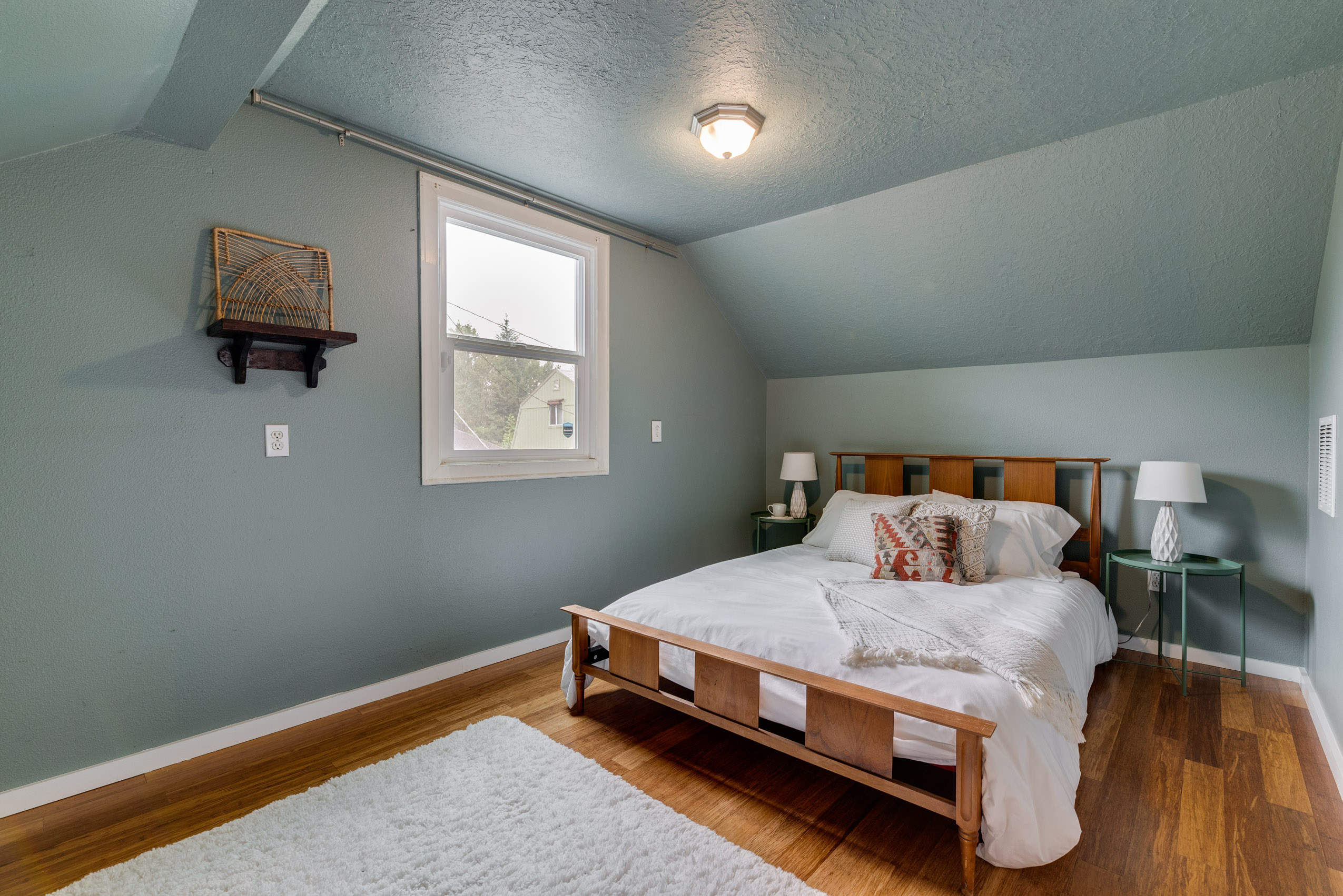 Cozy, light, and bright Montavilla Bungalow, just a stone’s throw to Mt. Tabor and all the good stuff on SE Stark! Details include warm wood floors and Marmoleum, a wood-burning fireplace in the living room, an eat-in kitchen, and a mud/laundry room that opens to the back deck facing a wall of dogwoods – part of the thoughtfully landscaped yard. Improvements include; mini-split AC/heat and insulation, new siding/gutters in 2017, updated bathroom, and permitted seismic retrofit. HES of 8!