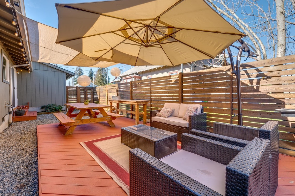 Meticulously updated home lives large. Do not be fooled by the square footage, this house optimizes space. The home has a well-designed kitchen with high end appliances. The main and master bathrooms are fully updated. With a new air conditioner and high efficiency furnace, this is a home of comfort to move in and start living. Rare for the neighborhood, 2-car garage has ample space for cars, bikes, all your sports gear and still room for storage. Relax in the private front patio space or get your garden on in the raised beds, with a potting shed, on the side of the house. Continue around to the fire pit with permanent benches. Finally, get ready to entertain on the large deck off of the kitchen. A great house in a great location. Don’t pass it up!