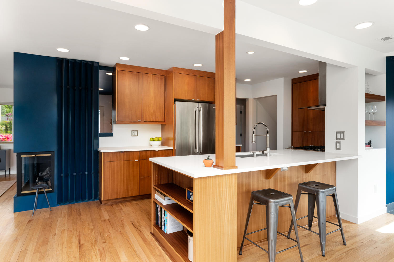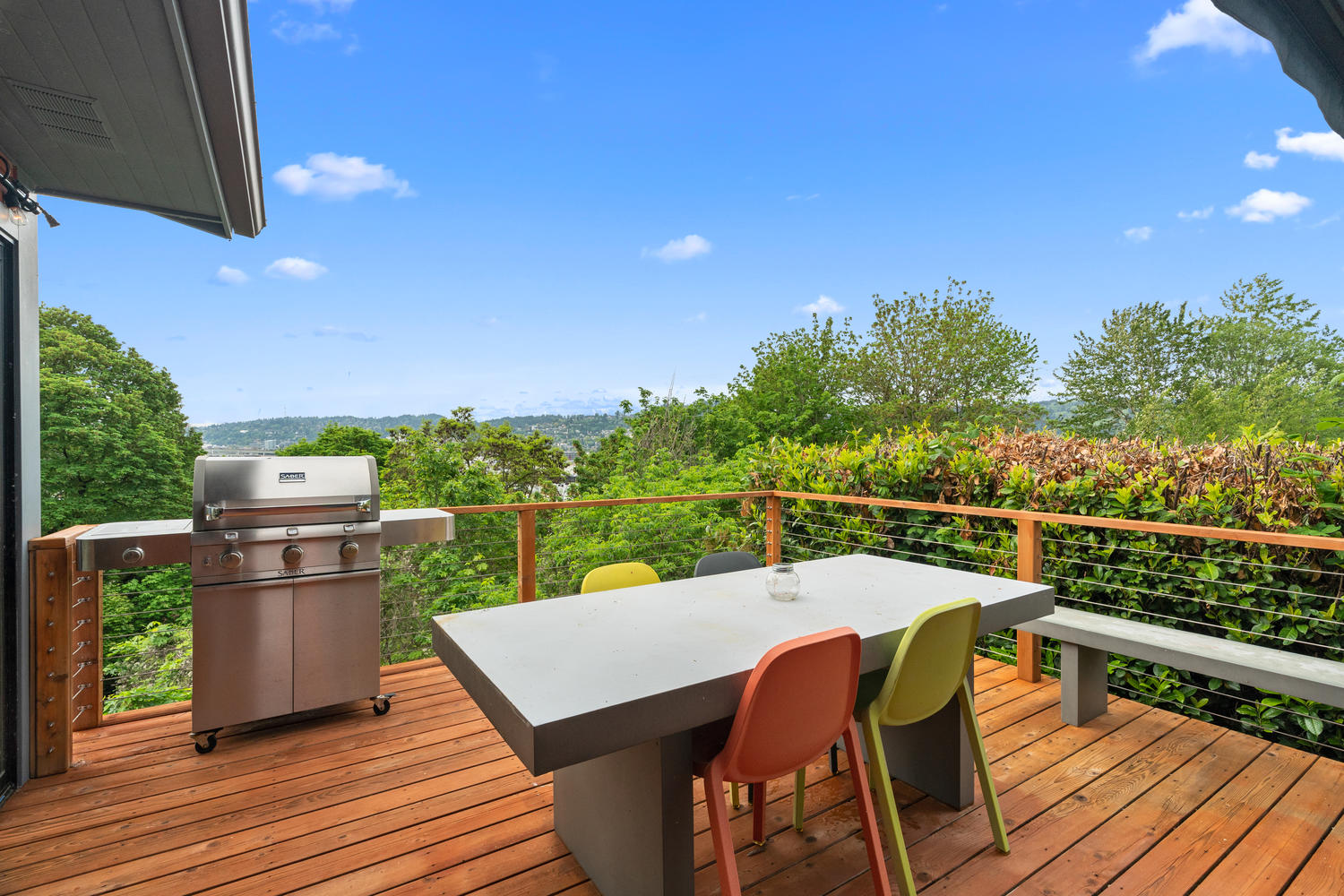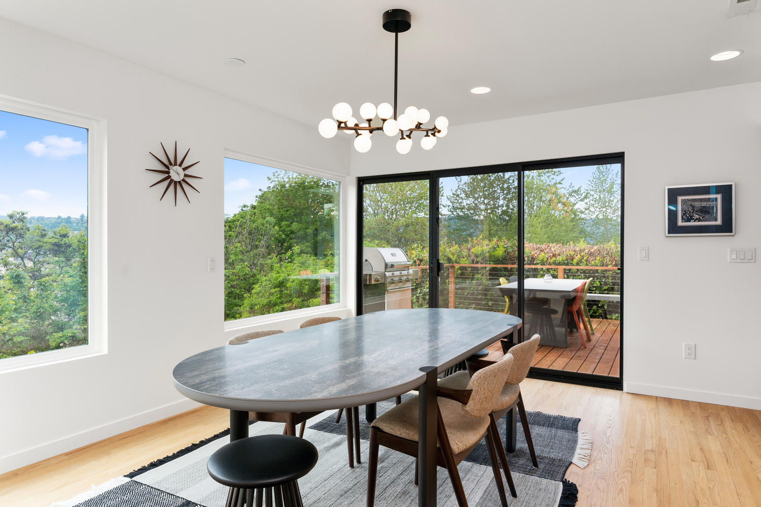The kitchen has been carefully updated to include white quartz counters, mahogany cabinets and a notable appliance package. An expansive outdoor deck reinforces the home’s incredible flow and offers outdoor access from the dining and living rooms. A separate entry from the SE adds to the interior/exterior flow and greets you with a custom hutch accented by a bulletin board and key drop.