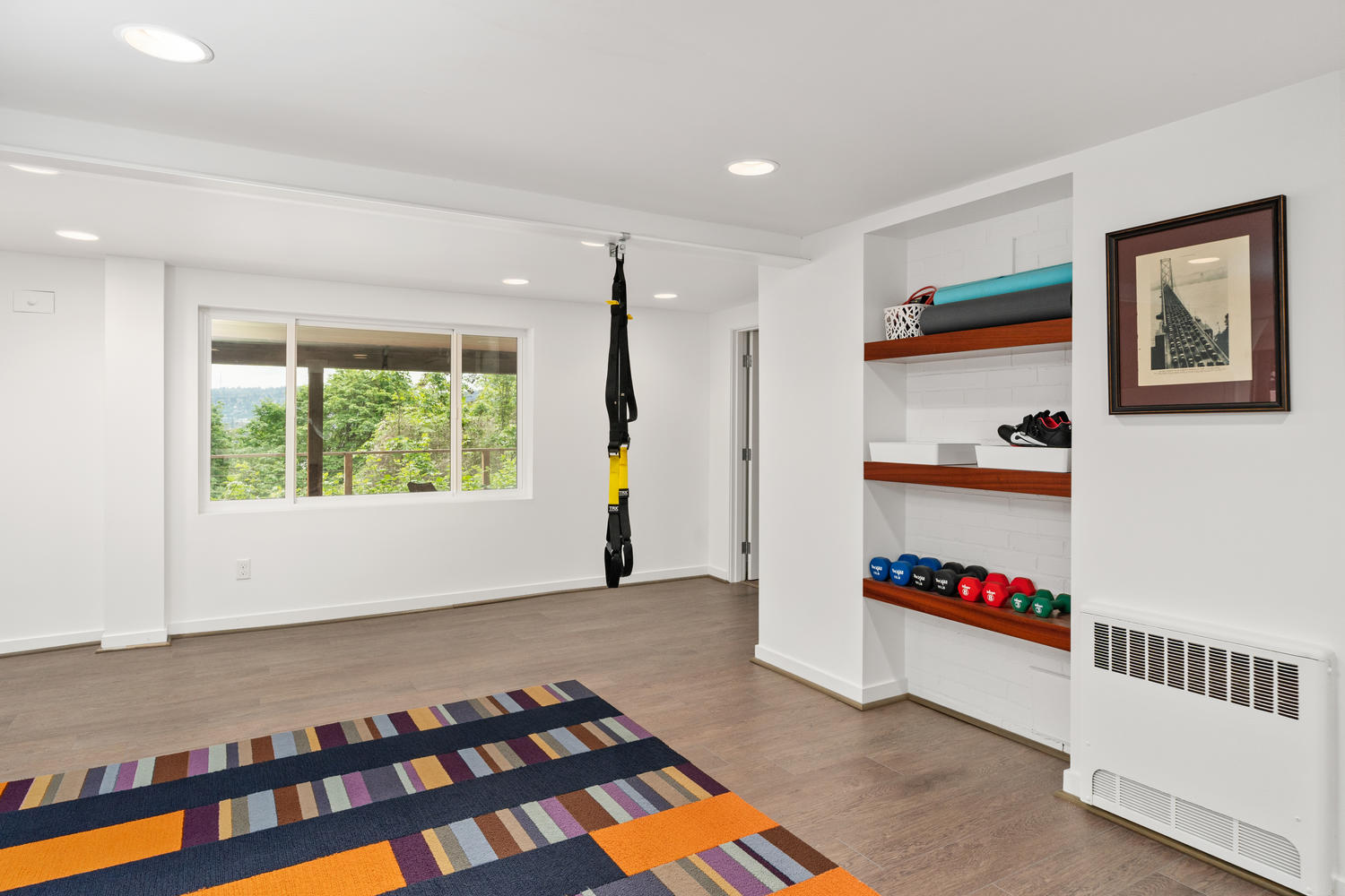 Beyond the main level is the lower daylight basement with high ceilings, bright colors, and an abundance of living space with access to a partially covered outdoor area. A large central room makes an excellent gym or play area and the additional bedroom and full bathroom is ideal for guest quarters. A family room with brick fireplace, 4th full bathroom and laundry room round out the lower level.