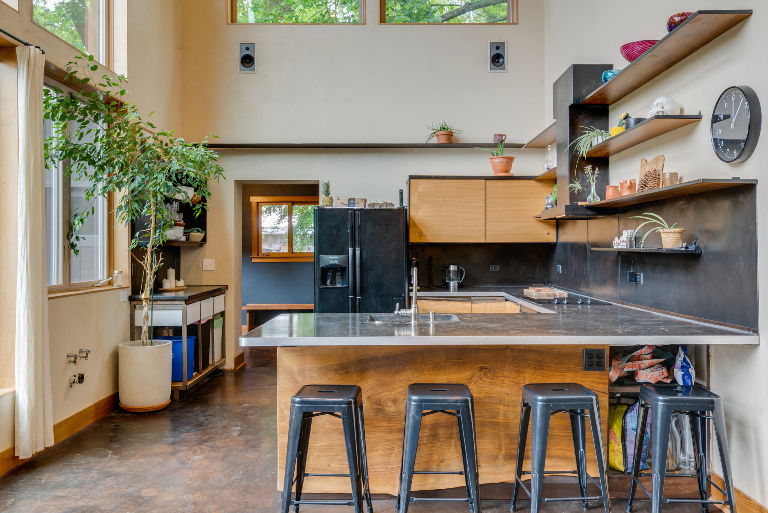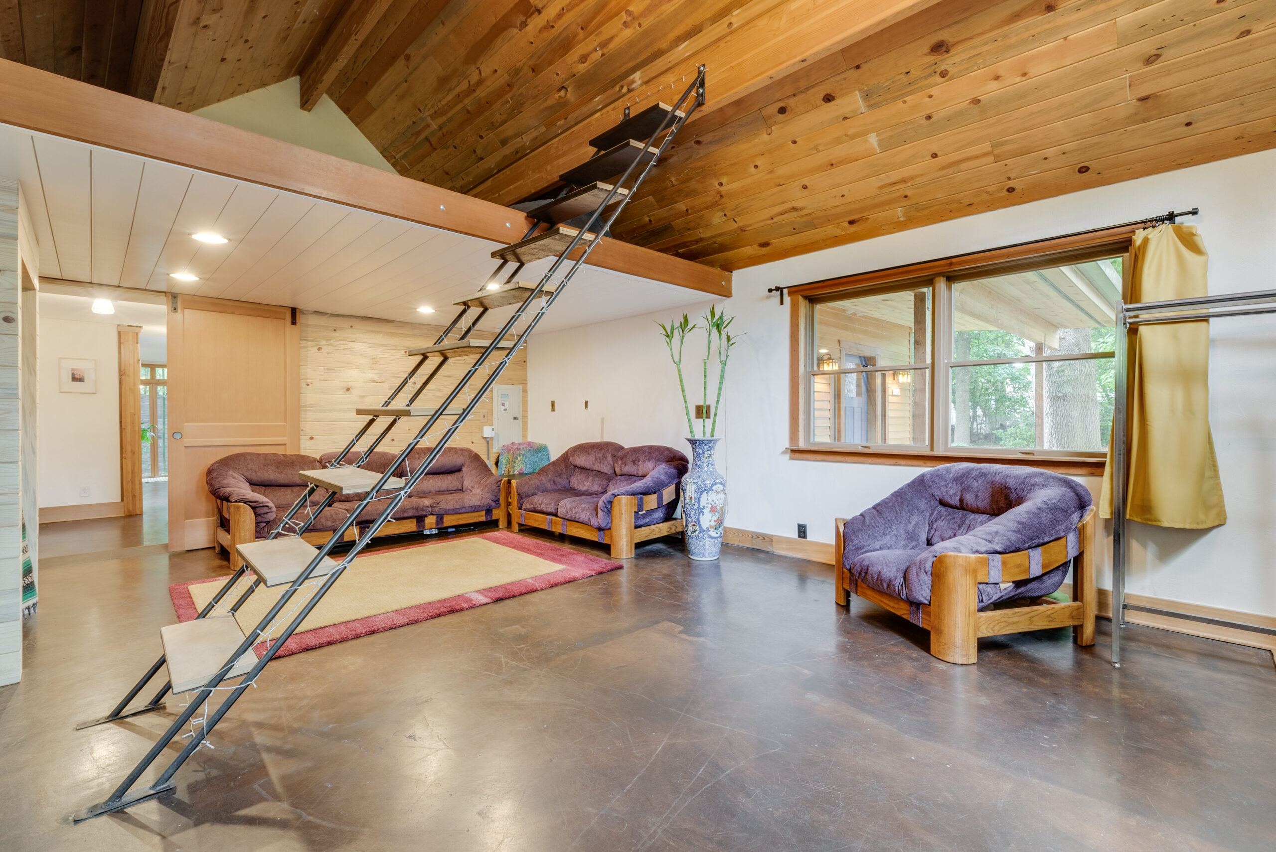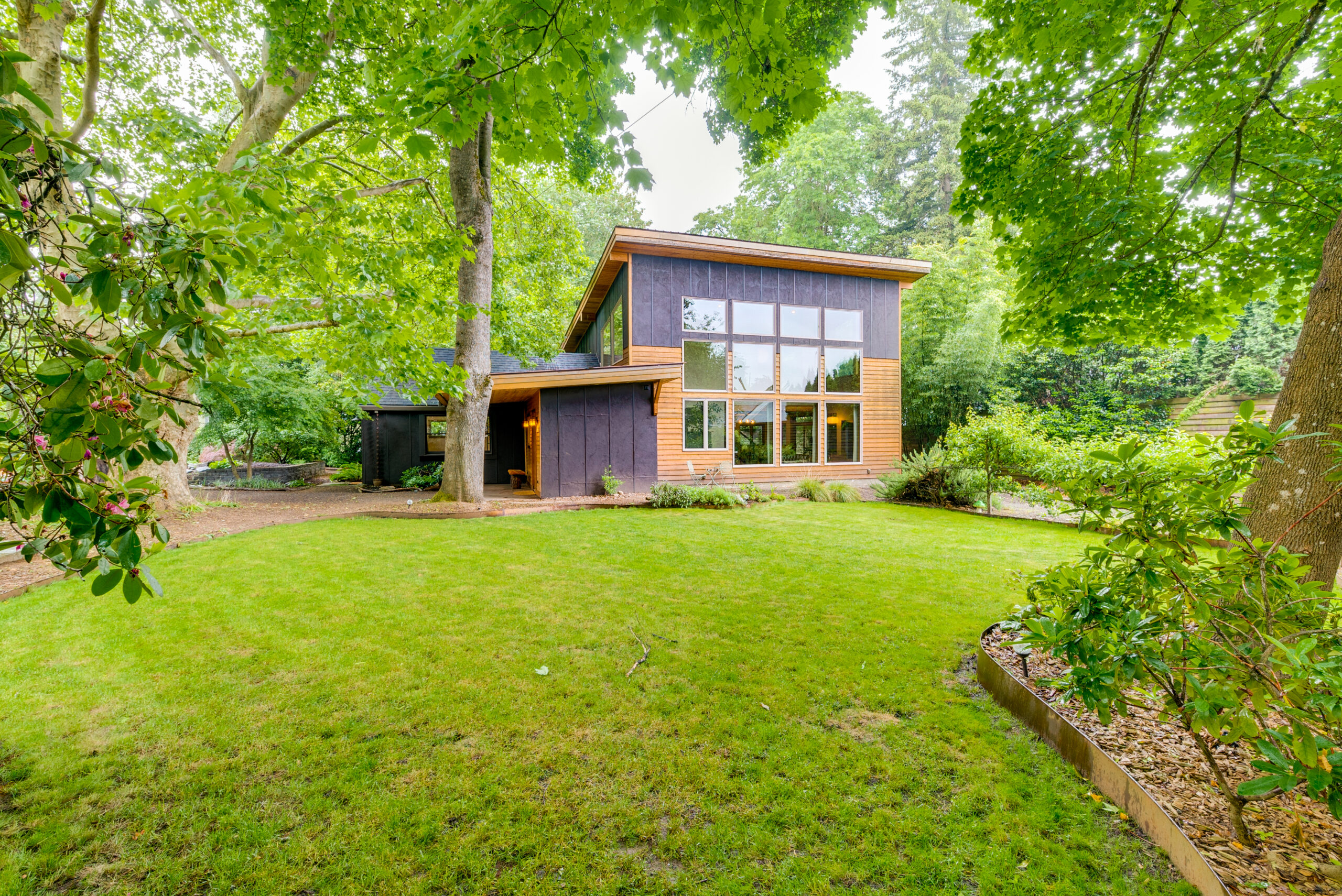 Close-in urban retreat that is both contemporary and expansive, yet magically secluded and cozy. A one-of-a-kind, spacious entryway greets you before entering into a custom, modern kitchen. Gaze out of the many windows surrounding the living room, with high ceilings and an abundance of natural light that flows throughout the main space. One bedroom on main plus fabulous bonus room with sleeping loft, kitchen hookups, and separate entrance. Beautiful bathroom with bath/shower combo, counter space, and drawers for storage. Two beds up, with shared full bath and walk-in shower. Situated far back from the street gives ample space for off-street parking and provides privacy in the front and back of the house. Large, peaceful backyard surrounded by mature trees and plants (apple, pear, plum, fig, blueberries, raspberries, and more), and sunny areas for gardening. Multiple sitting areas around the exterior of the house, along with a large carport with attached workshop and additional shed. Participate in the annual Emerson Street Painting and Neighbor Potluck event, walk to one of the three large surrounding neighborhood parks and dog park, or go biking on the 70th Ave walking and biking path.