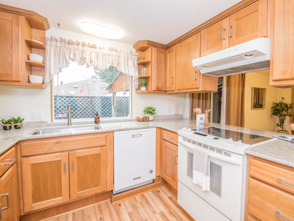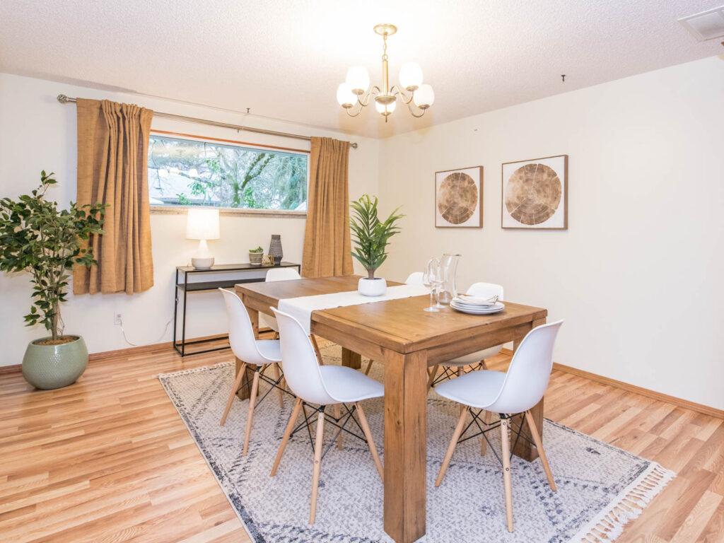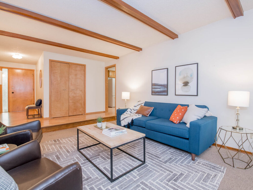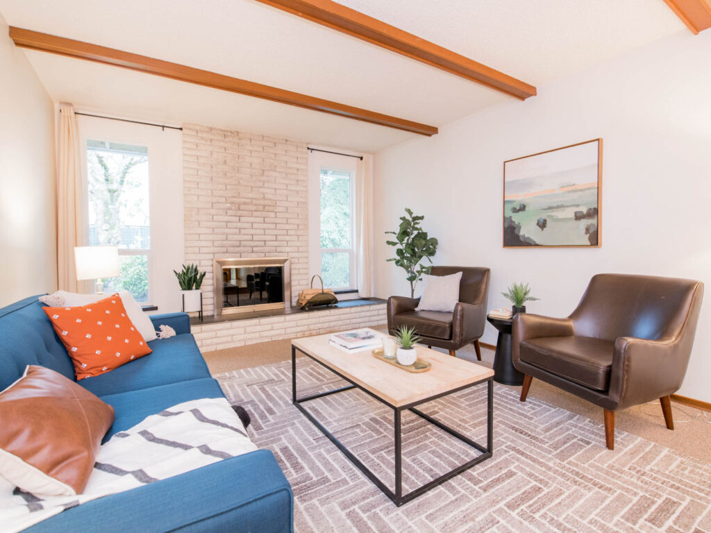Move in ready 70’s ranch, tucked up on a nice corner lot. Features include a modern sunken living room, exposed wood beam ceiling, a large private dining room with eat-in bar, granite counters, new paint and carpet, and fully fenced yard with the potential for RV parking.