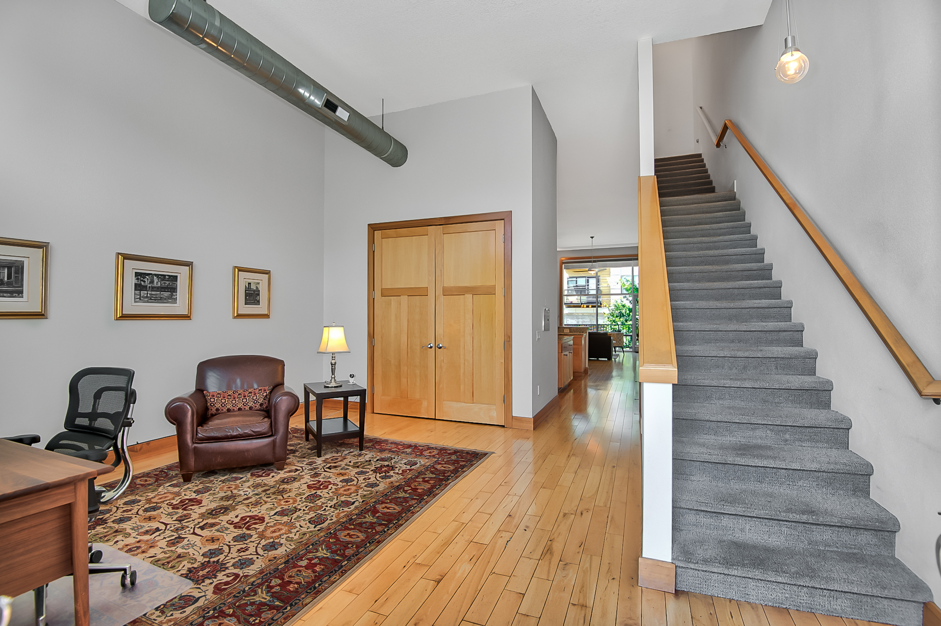 Off Morrison St, or accessible from the secure parking garage. Light-filled bonus room at unit entry for your office, art studio, exercise or hip bike storage needs!