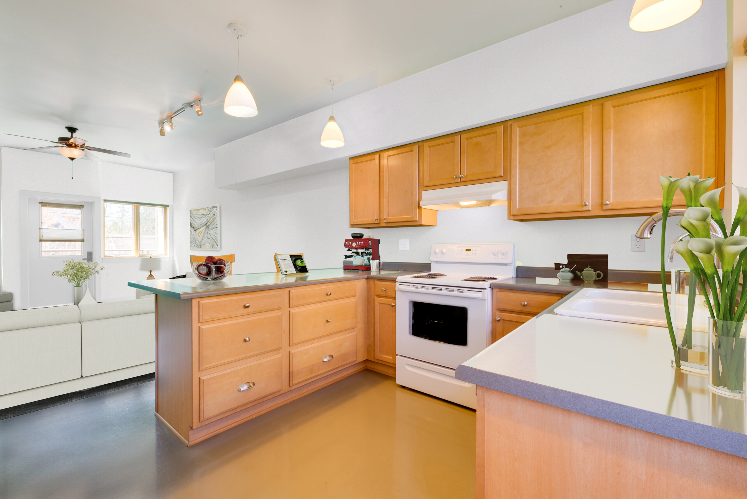 Daybreak cohousing condo in the Overlook neighborhood! Well built & beloved intentional living environment. Bikescore 100! Bus stop nearby. Smack dab in the middle of many cool eateries & Dog Bowl nature area on the bluff. Watch for proposed North Portland Greenway. Radiant floor heat. Private balcony and storage. Common elements include: Commercial kitchen, dining and living rooms, playroom, office with shared computer/printer, media room with piano and flat screen TV, yoga studio, craft room, guest accommodations, workshop, tool library, gym room, bike workshop/storage, laundry room, garden, rooftop deck, on-site storm-water management, green construction! Community has never been so as important – best place to be alone together.