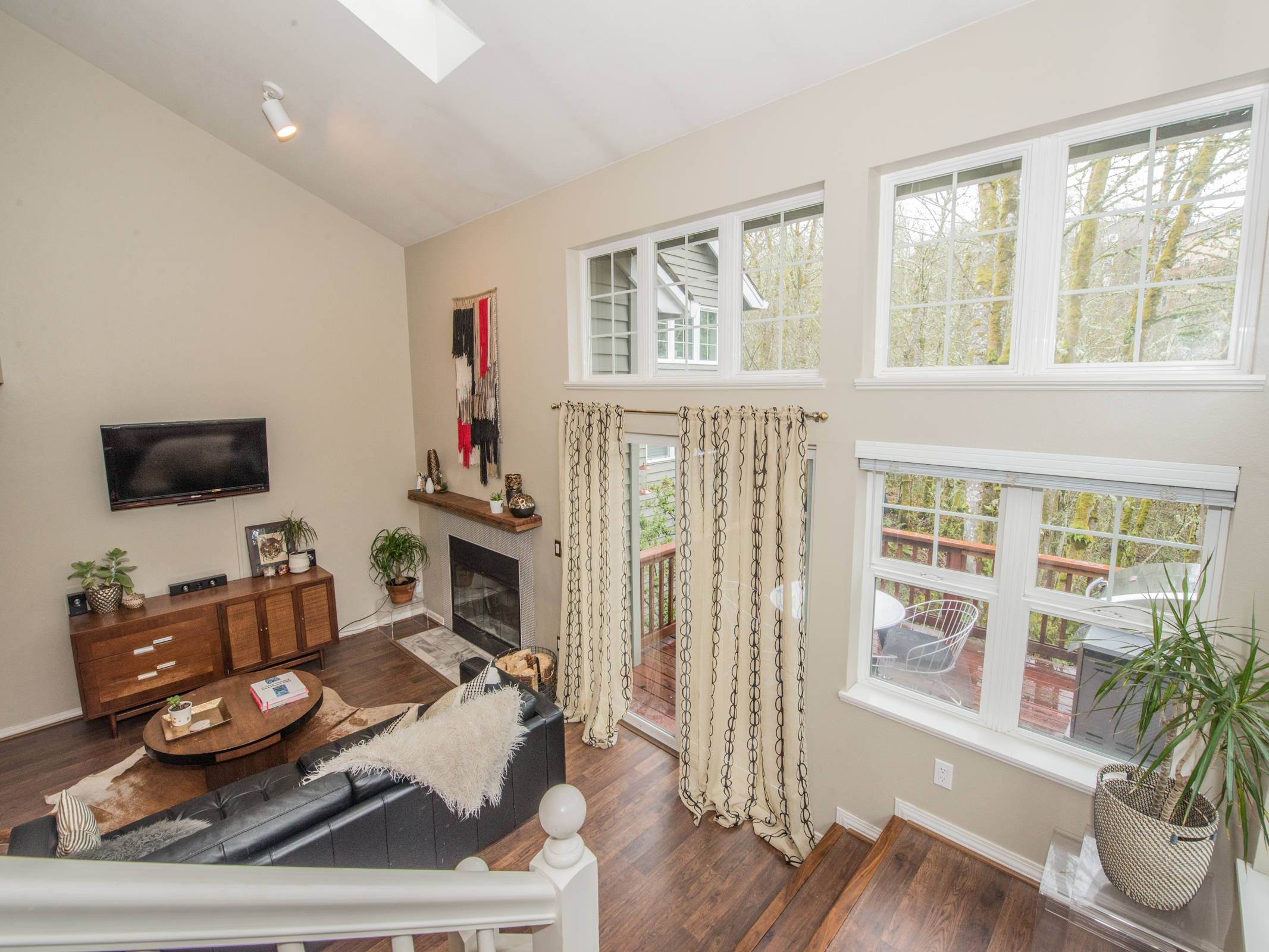 This completely remodeled urban forested townhouse flaunts a modern aesthetic with open concept floorplan. Spacious living room features high-ceilings, ample natural light, and a cozy fireplace. Master suite has it’s own sitting area/office. Private deck resting high above walking trails, waterfalls, and greenspace. New roof, siding and moisture barrier, windows, sliding door, electrical panel, main water line, water heater and most heating registers. Walk to Starbucks, Mill Pond Park, and a free shuttle to Sunset MAX station. Easy access to downtown, Nike, and Intel. Seller is a licensed agent.