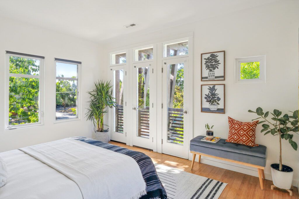 This light-filled Kenton Contemporary welcomes you with soaring ceilings and walls of windows. The award winning design by architect Roxana Vargas Greenan incorporates sustainable materials like bamboo flooring with unique architectural elements such as a series of Juliet balconies along the primary suite.