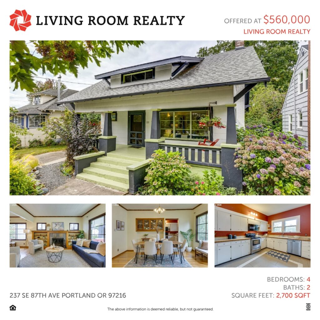 Step into this charming 1912 bungalow, where vintage charm meets modern convenience. With an inviting broad front porch and attractive curb appeal, this home welcomes you with an open floor plan, perfect for modern living. The living and dining rooms are flooded with natural light from oversized windows, highlighting the beautiful wood floors, built-ins, and a cozy fireplace that add warmth and character. With four spacious bedrooms and two full baths, there’s room for everyone. A generously sized primary bedroom features an ensuite bath and skylights. The layout is ideal for both work-from-home needs and hosting family gatherings. The unfinished basement offers potential for expansion—imagine creating an ADU, a studio, or additional living space. Outside, the organic yard is a gardener’s dream, featuring perennial plantings, a deck, a patio, raised beds, and even a fenced-off chicken coop for urban farming. The detached, updated garage provides space for your car, storage, or a garden center. Nestled near the vibrant heart of Montavilla, you’ll be steps away from fantastic dining, shopping, and coffee spots. With a BikeScore of 97, this location is a cyclist’s paradise, offering a short stroll to local businesses and easy access to Portland’s main thoroughfares like 205, I-84, and Burnside. This is more than just a home—it’s a lifestyle opportunity you don’t want to miss! HES 1