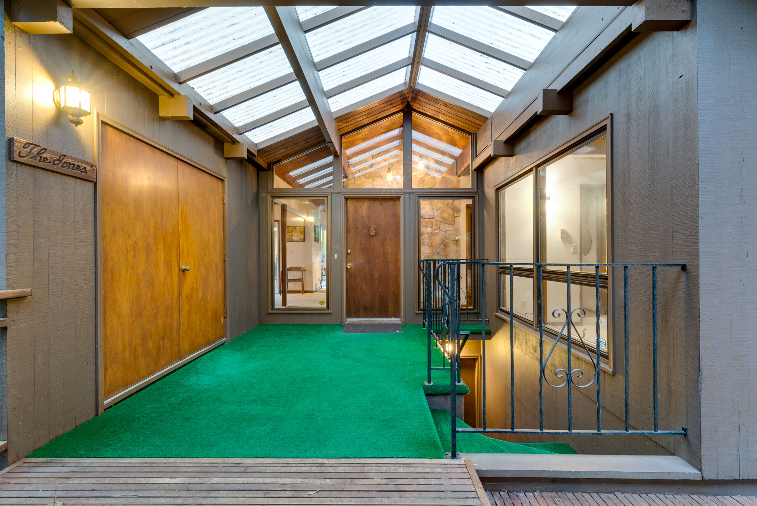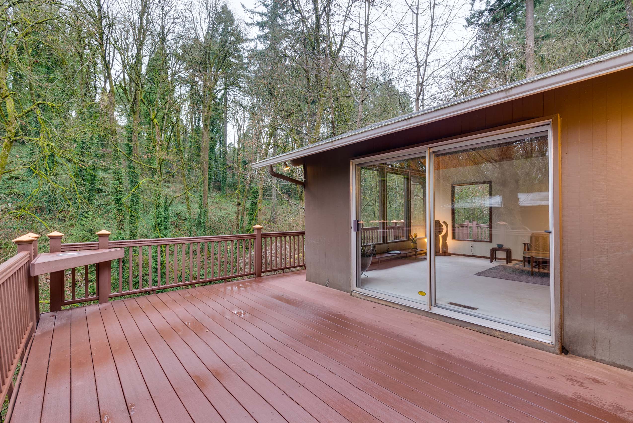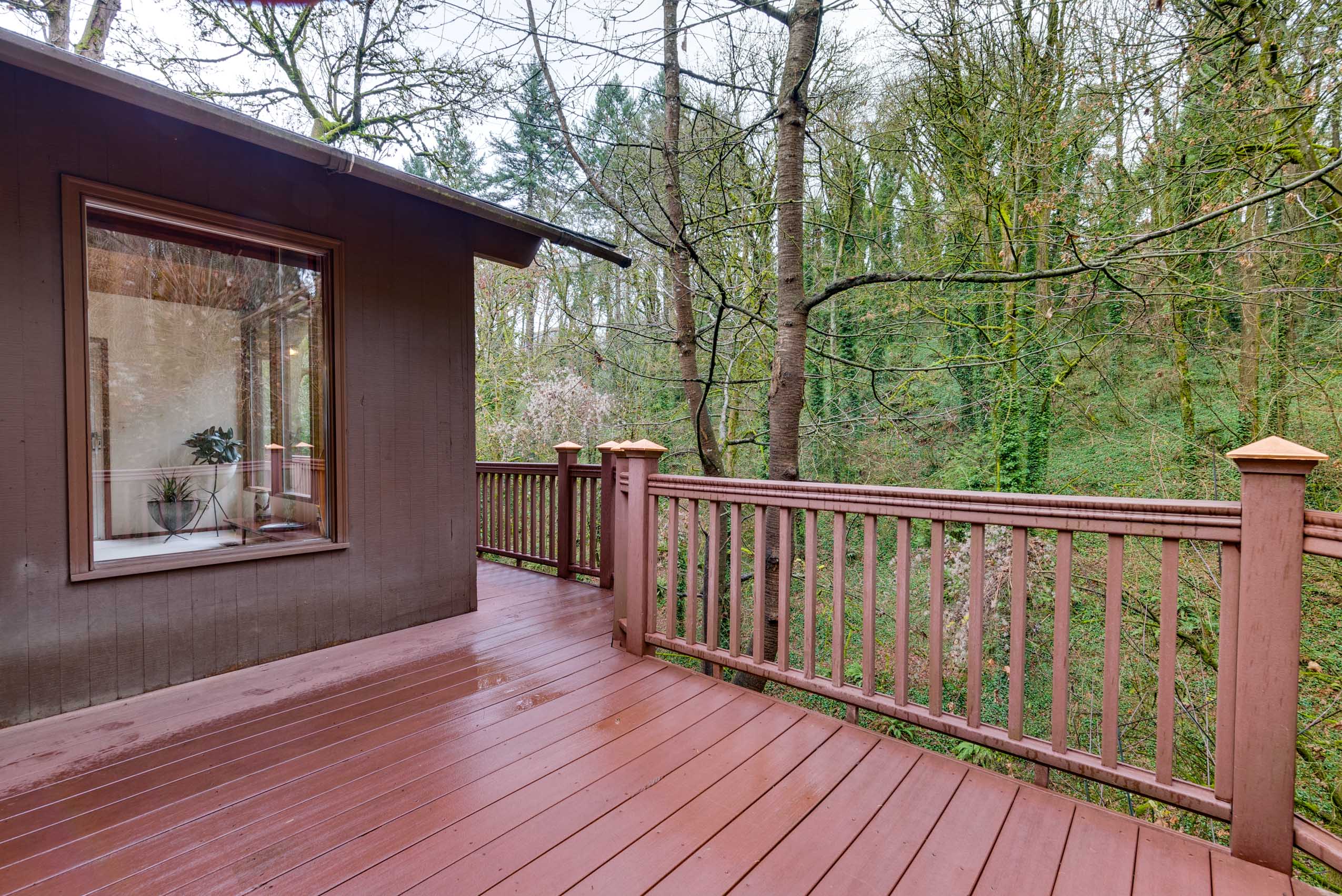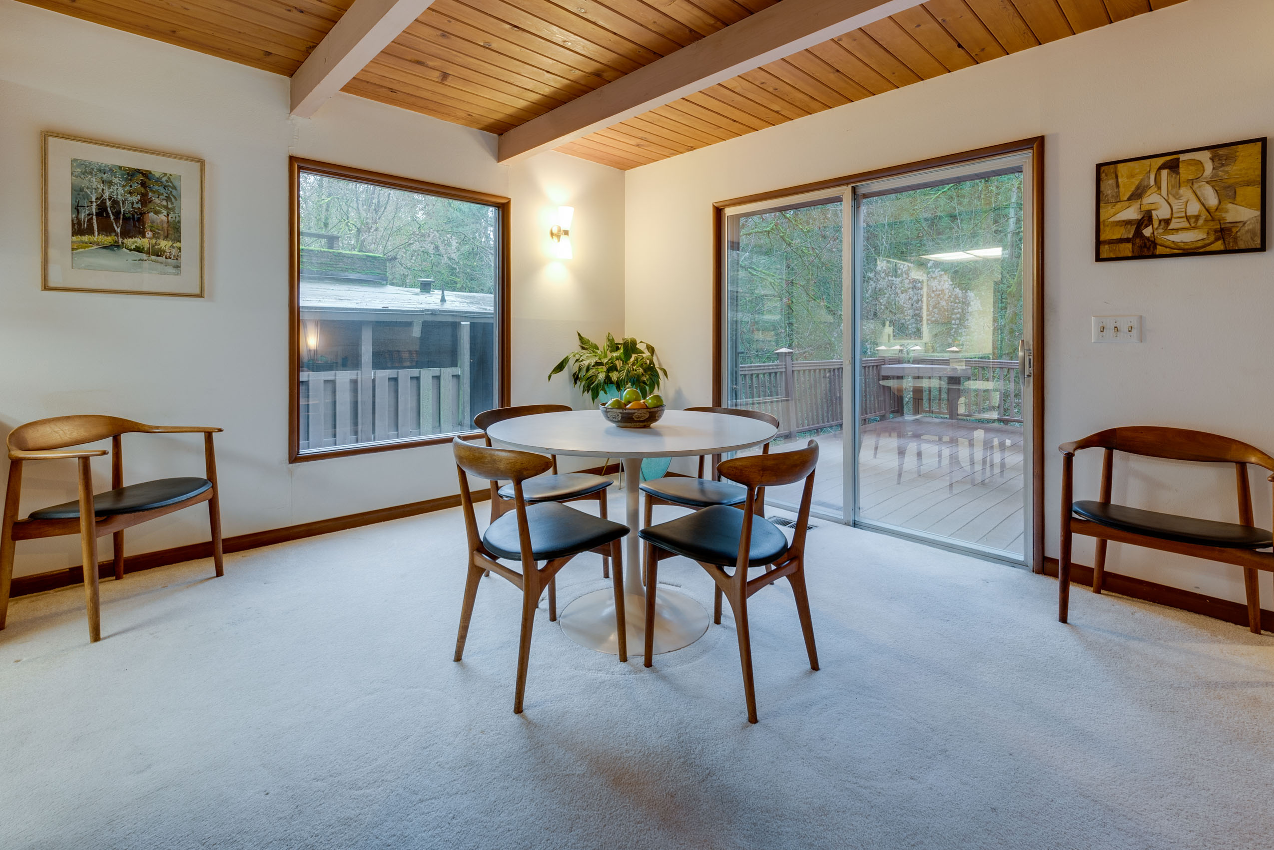 Perched on a hill above greenspace, this home is truly unlike no other. The wall of windows fills the home with natural light and makes you feel like you are living in the trees. The vaulted open beam, wood ceilings and incredible floor to ceiling rock fireplace are focal points of it’s high end mid-century modern architecture.