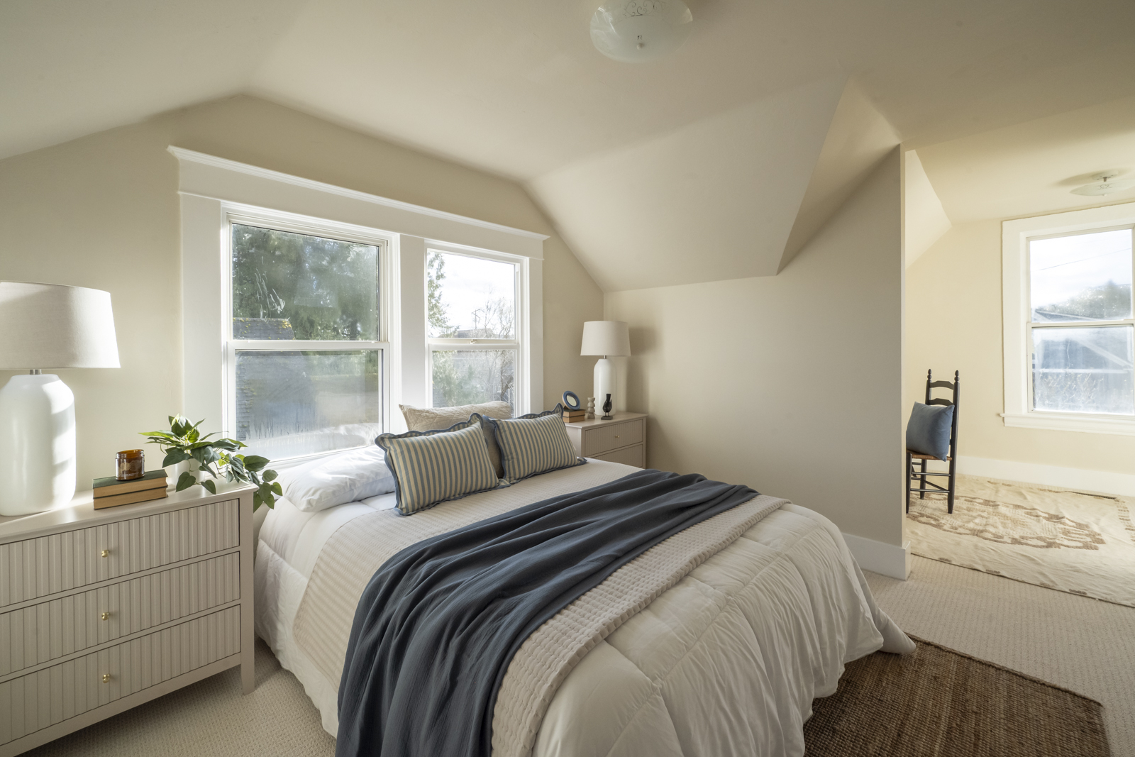 The house itself is full of warmth and light, with high ceilings, original wood floors, and a spacious layout that features a formal living room, a comfortable kitchen with new marmoleum flooring that flows into the dining room, and a main floor bedroom and bathroom. Upstairs, find a second full bathroom, plus two more bedrooms, including a generous primary with a connected sitting room/office area (or make this space an epic walk-in closet!).