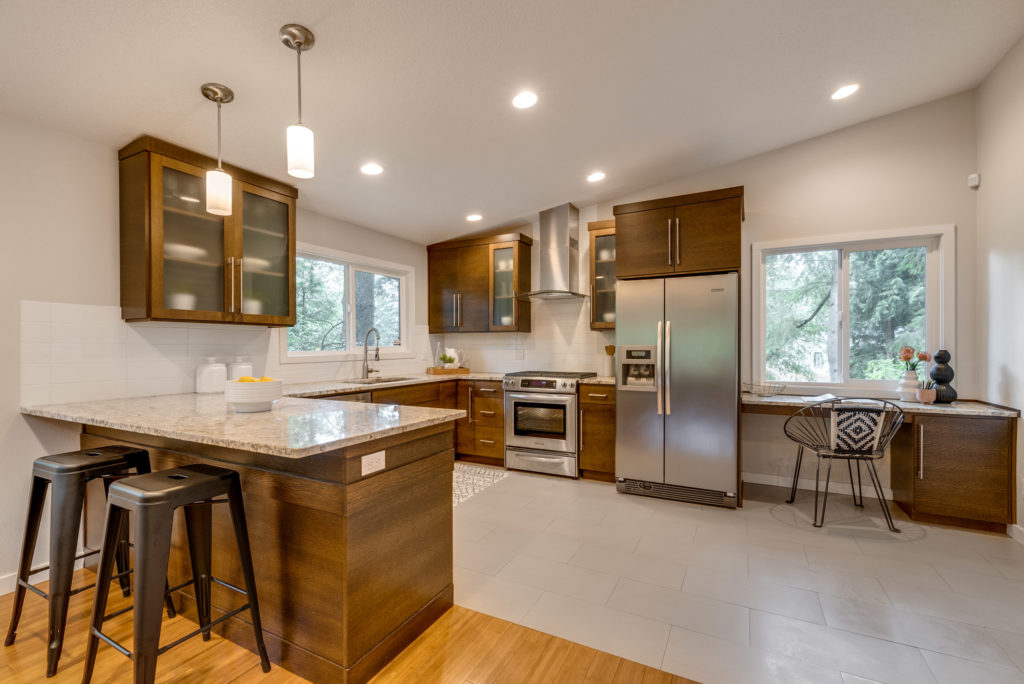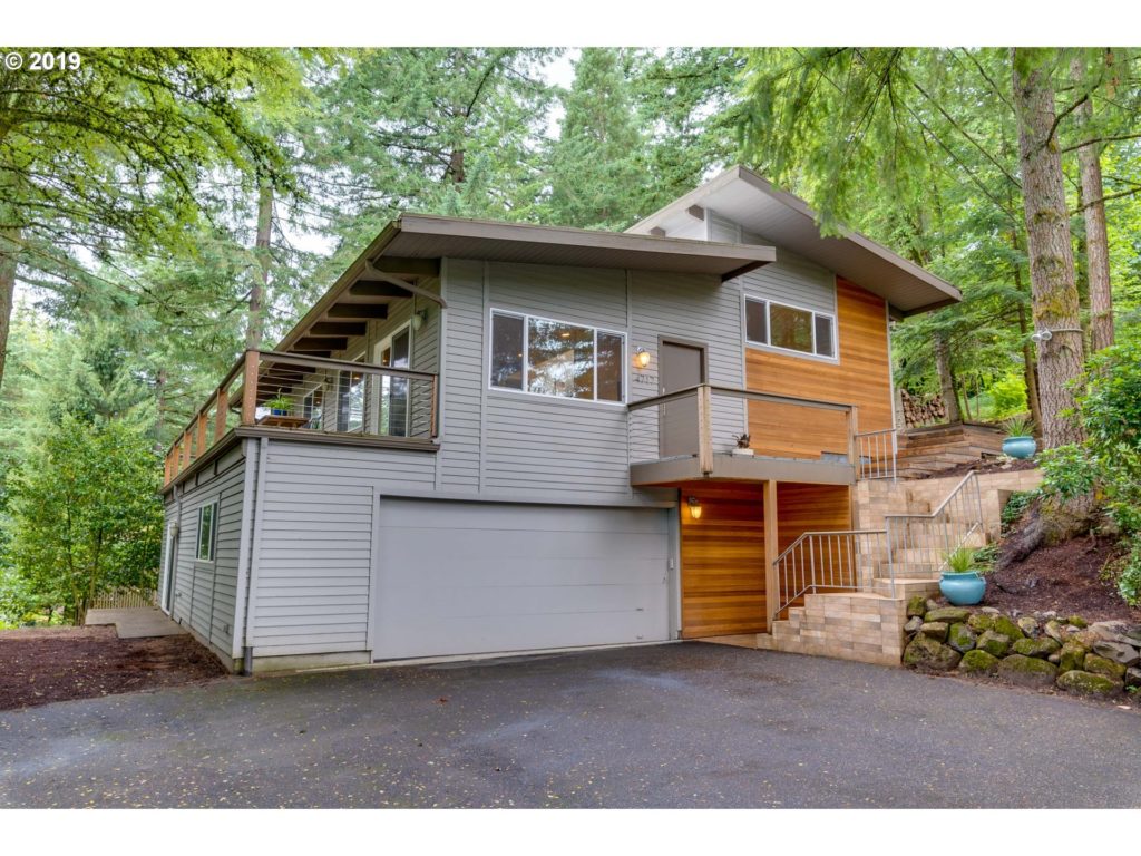 View ListingRemodeled mid-century modern style home perched at the end of a private driveway on an over-sized forested lot in Sylvan Highlands. Open concept main floor and vaulted ceilings provide lots of natural light. Large kitchen perfect for entertaining or an experimental chef. So much space in the three luxurious private bedrooms and three full baths, all remodeled. Master is complete with walk-in closet and en-suite featuring dual shower heads. Tranquil front terrace and deck looks over the large private lot, perfect spot to relax at the end of a long day. This one of a kind home is conveniently located just minutes from Downtown Portland and Washington Park with all the fun stuff.