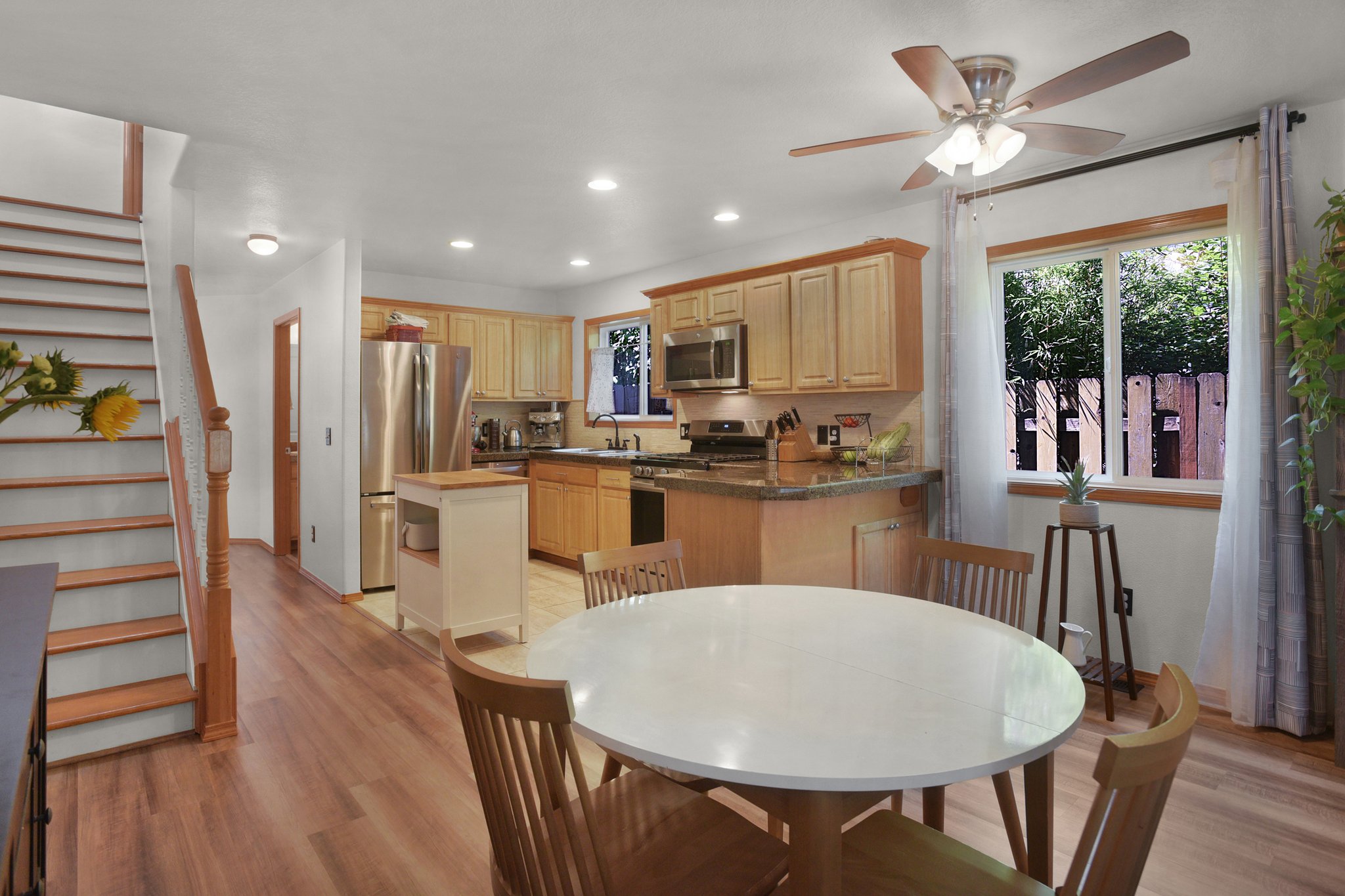 Bright and clean Montavilla traditional! Open concept main floor features: kitchen with upgraded appliances, gas fireplace, waterproof vinyl flooring, and a patio door that flows into the backyard with covered patio and room to play. Upstairs, find a luxurious primary with vaulted ceilings, ensuite bath, and dual closets, plus two more spacious bedrooms and an additional bath. Fresh exterior paint, well-maintained systems, a/c. Only .7 miles to Montavilla’s shops, restaurants, and farmer’s market! HES=6