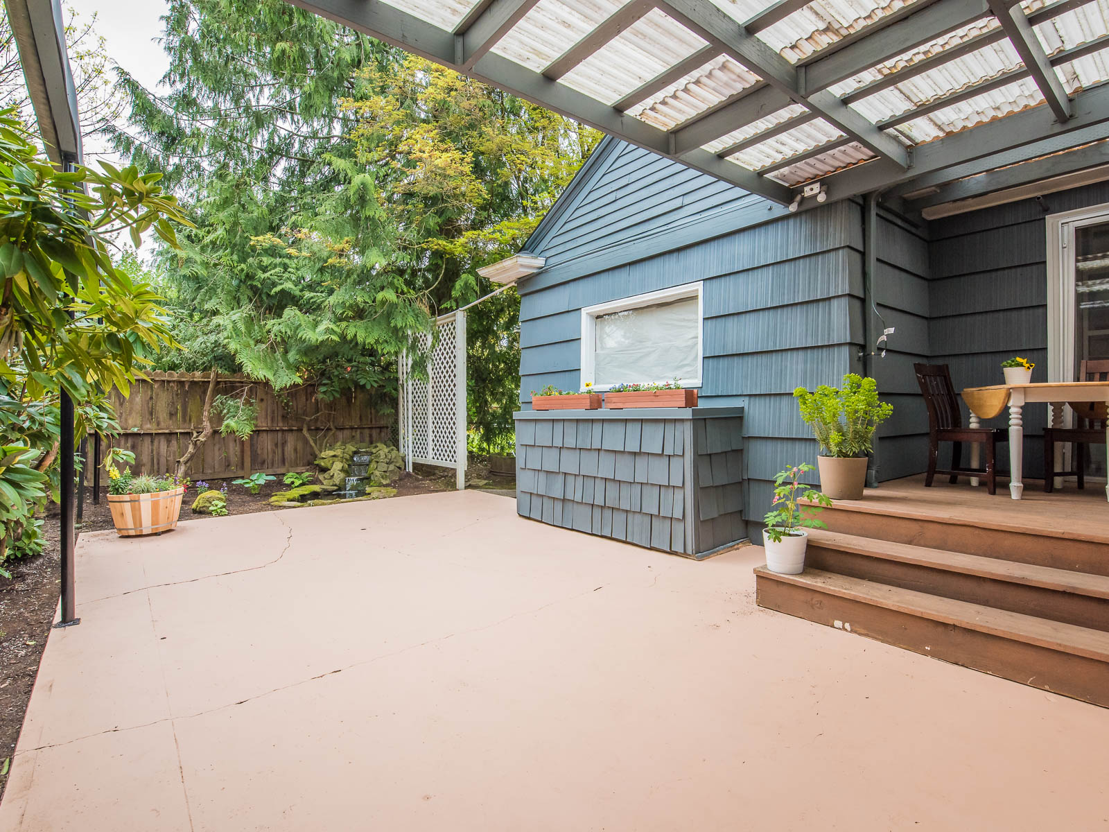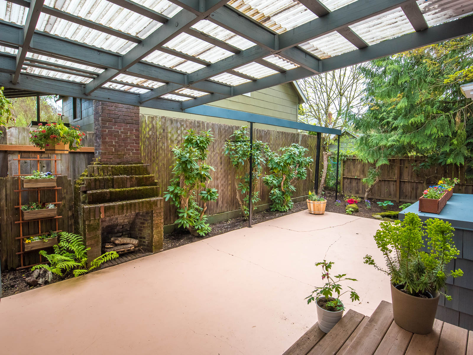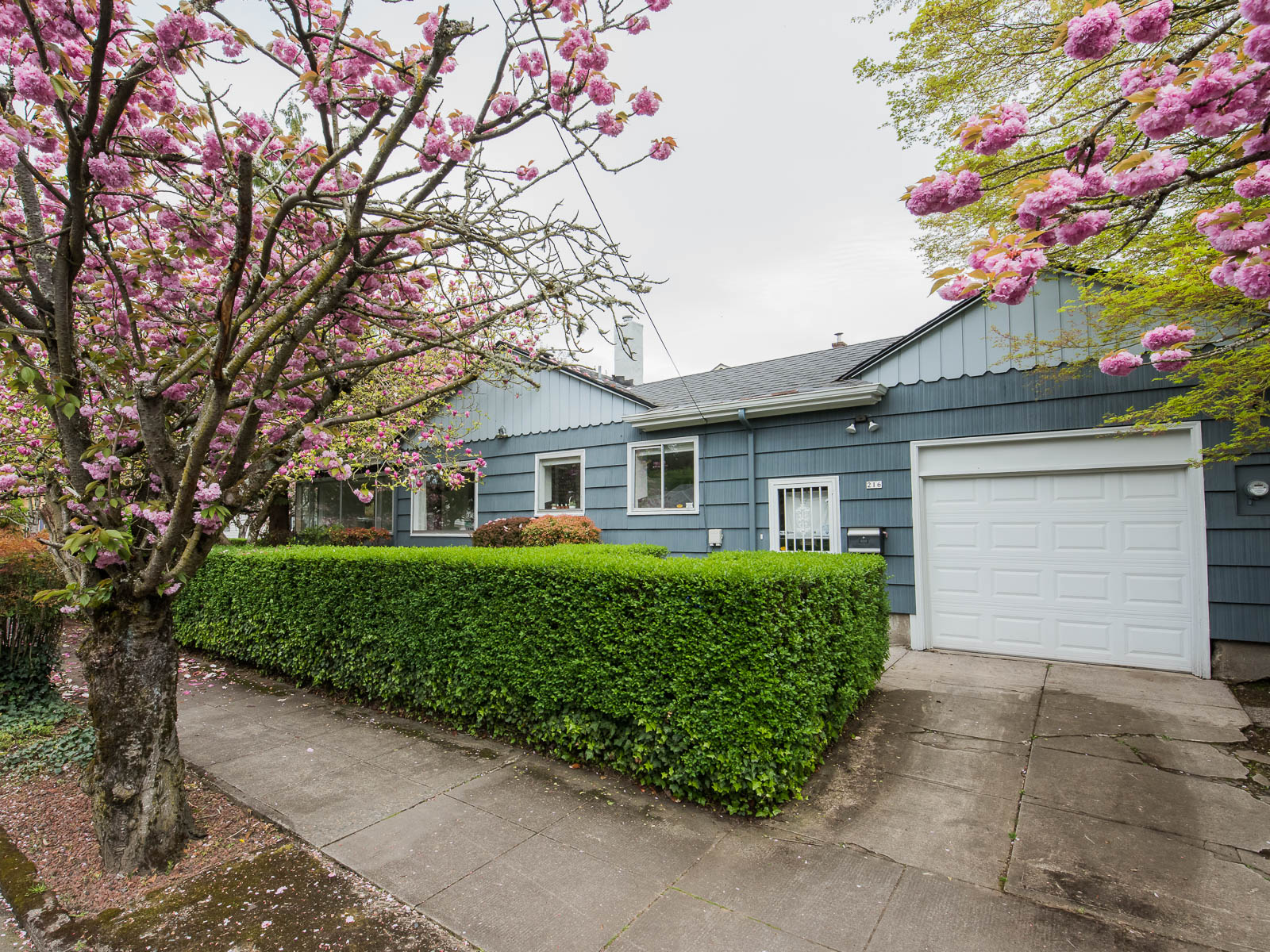 Light and bright Mt Tabor Cottage in magical setting! Surrounded by flowering trees, and boasting a private patio oasis with outdoor fireplace and pond. Step inside to discover generous entryway, refinished wood floors, big windows, fireplace with mantle, formal dining and quaint kitchen with stainless steel counter top. Walk right into your kitchen from the attached garage! Great location near store, coffee, food. 90 bike score! HES 5