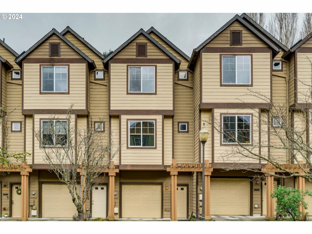 Welcome to your charming retreat just steps away from the bustling center of Nike World Headquarters! Nestled on a dead-end street, this townhome offers both convenience and comfort in a serene setting. Elevated on the second floor, the main living area boasts an airy, open layout that invites abundant natural light and fosters seamless connectivity between the living room, dining area, and kitchen- perfect for modern living.Cozy up by the gas fireplace on chilly days, or step out onto the balcony through the sliding doors for delightful alfresco coffee or dining amidst the backdrop of towering evergreens, giving a sense of privacy and tranquility. The kitchen features an island, essential appliances, and a cozy breakfast nook, while a convenient half bath accommodates guests with ease.Upstairs, discover two generously sized bedrooms, each boasting its own private bath. Say goodbye to trekking downstairs for laundry, as the stackable washer and dryer are conveniently located between the main bedrooms. Additionally, a versatile bonus room accessible through the attached garage offers possibilities as a home office, hobby space, or an extra bedroom for guests or roommates. The attached garage and driveway provide off street parking for 2 cars.Enjoy the best of both worlds- the seclusion of a dead end street combined with easy access to the vibrant heart of Beaverton.
