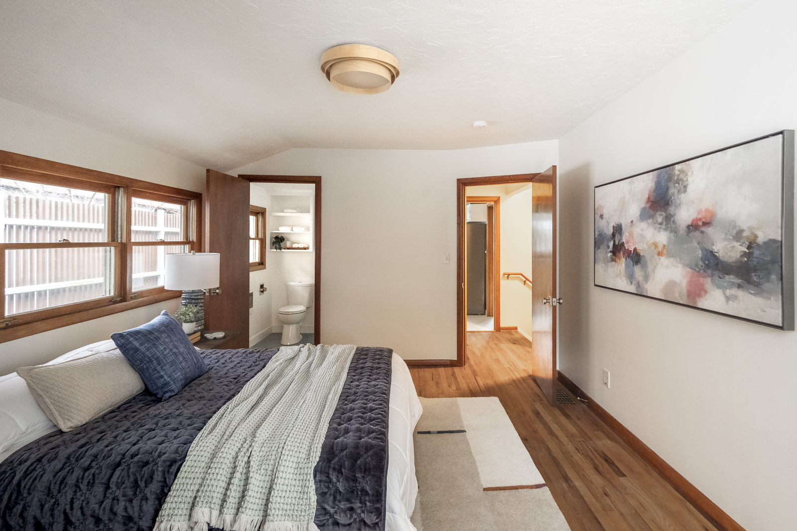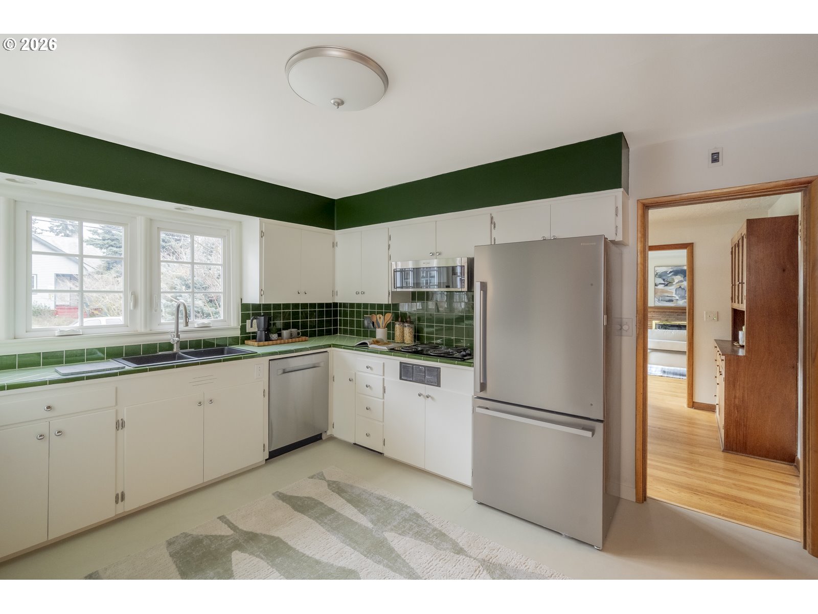 The kitchen offers both character and convenience, with vintage tile, new appliances, plenty of counter space, and room for multiple people to cook at once. Find three spacious bedrooms and two baths on the main floor, including a primary bedroom with ensuite and a slider out to the large, fully fenced backyard.