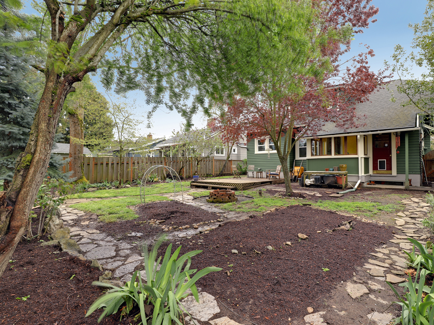 Light-filled Piedmont bungalow! Three beds plus bonus loft space. Primary bedroom up features ensuite half bath with room to expand. Vinate features include: wood floors, built-ins, cozy fireplace. Updated light fixtures, newer windows, abundant storage in the full height basement. Fully enclosed yard with deck & fire pit. A plant parent’s dream: enclosed sunroom for plant babie starts, established gardens, fruit trees & flowers. Ideal location: 1/2 mile to Dekum hotspots & 3/4 mile to spectacular Peninsula Park. HES 6.