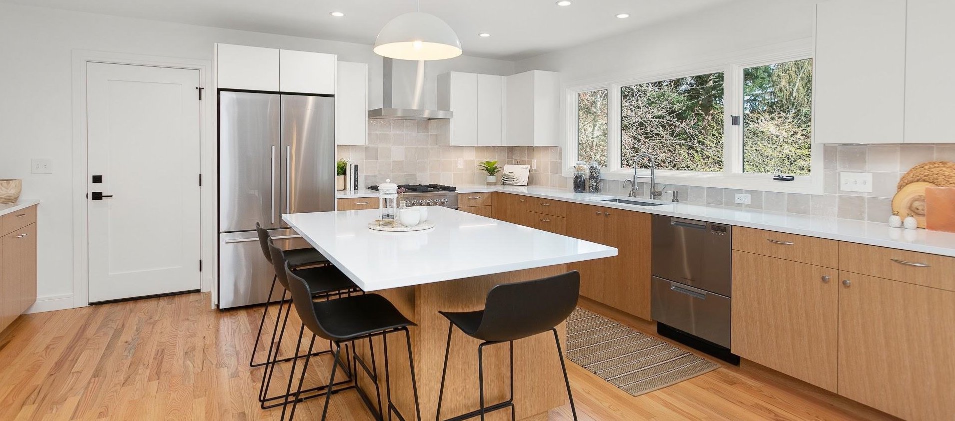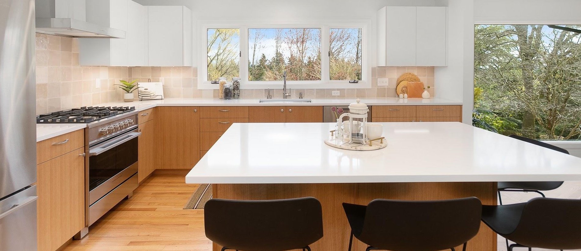 Modern design and smart upgrades engage beautifully with mid–centuryarchitectural features. Great room features a wall of windows looking out to the maturely landscaped grounds. The vaulted main floor living continues out to the spacious covered outdoor balcony. Custom built cabinetry through out, Fisher & Paykel appliances, and Rejuvenation fixtures.