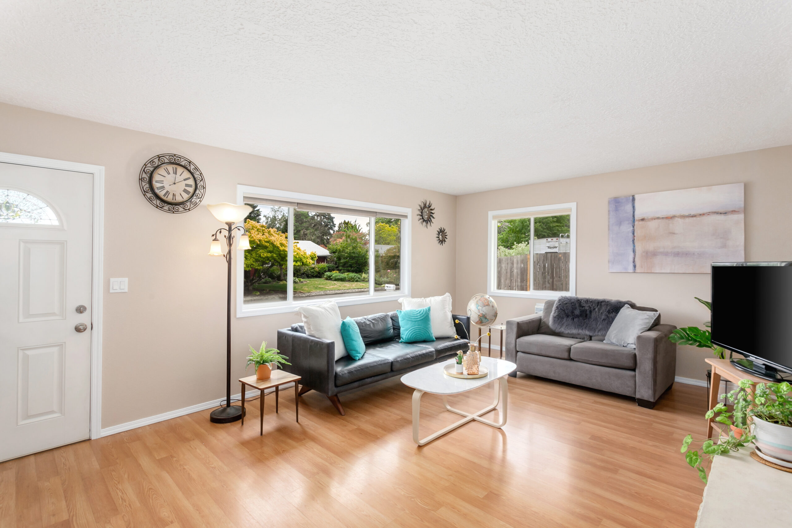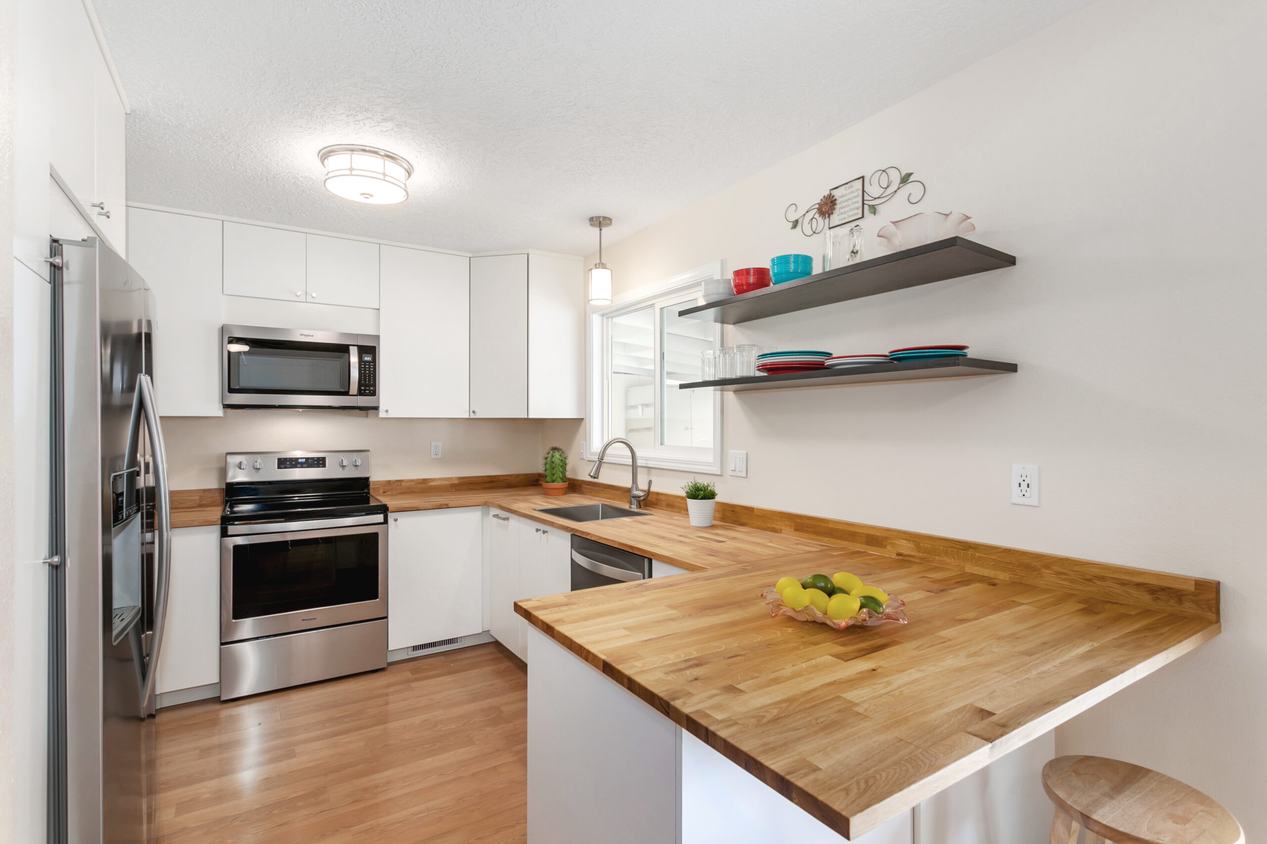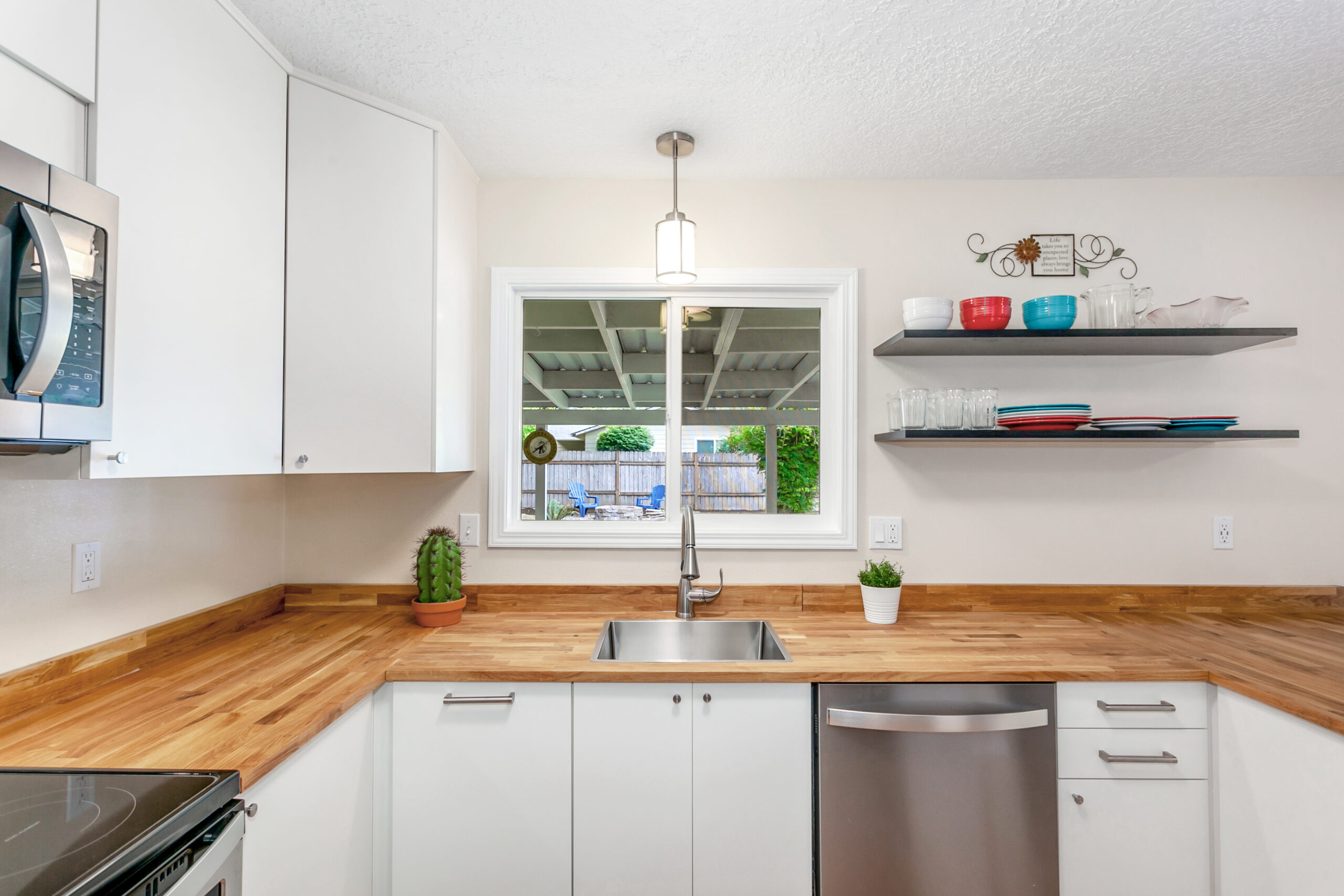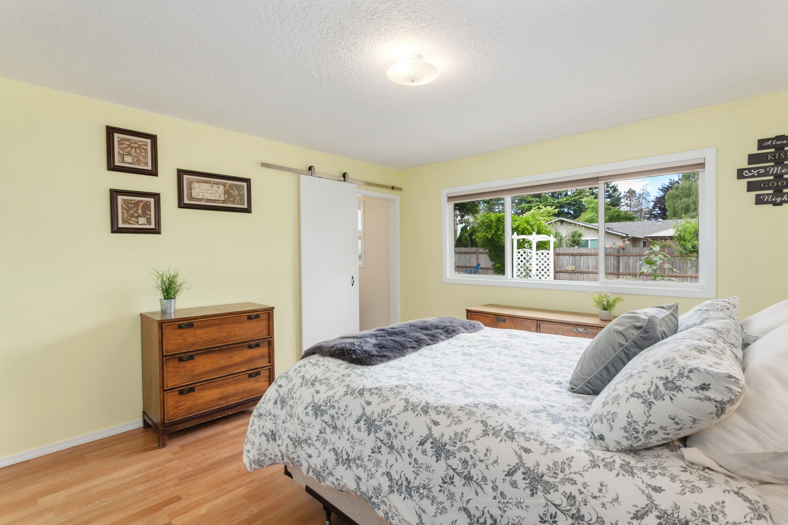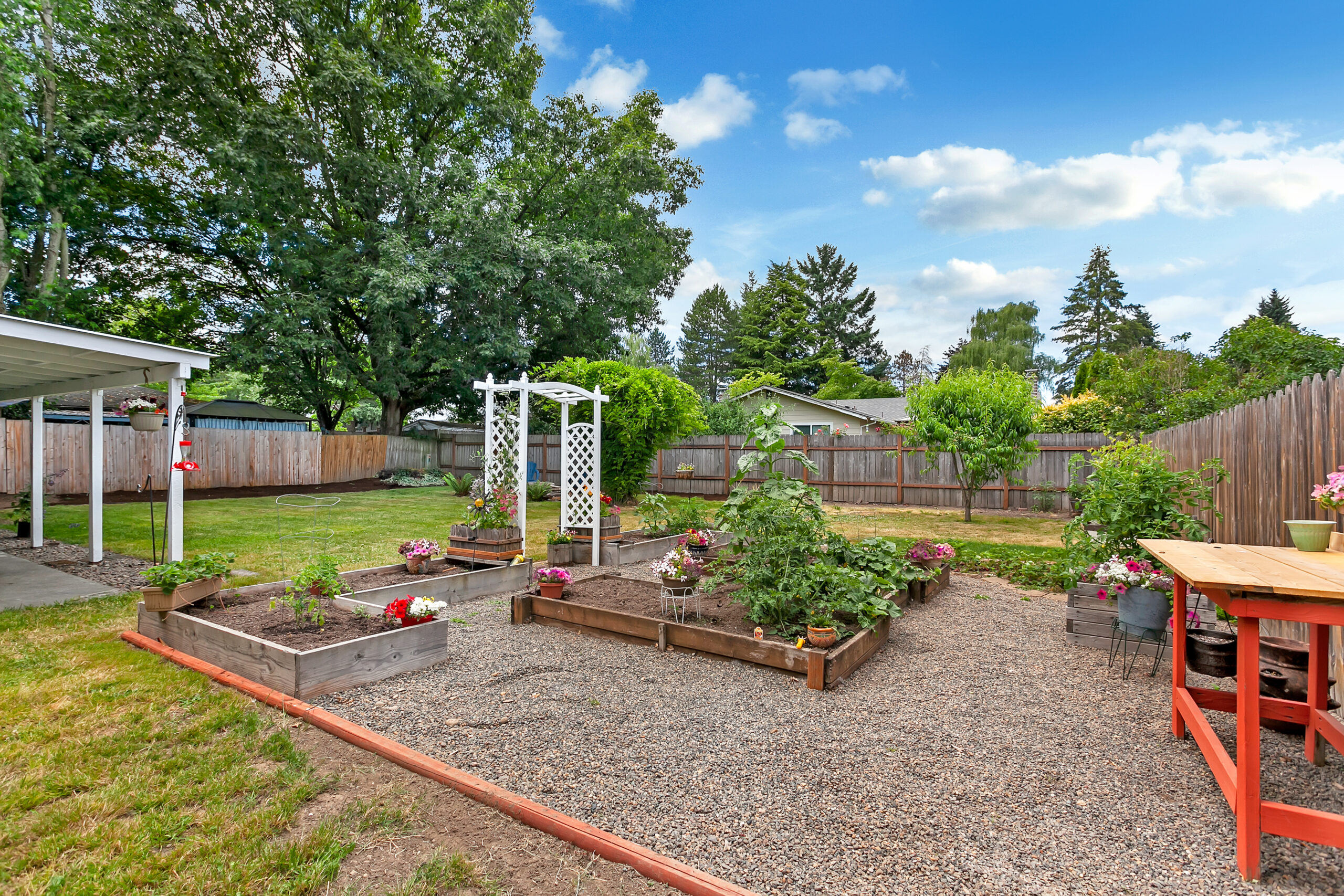 The best of the mid-century, but for today’s modern lifestyle, this remodeled ranch is everything you’ve been hoping for. The wraparound fireplace anchors the home while you breeze through the living room into the dining room and the brand new remodeled kitchen. Cultivate your own mini-farm in the incredible private 1/5th acre backyard, complete with covered patio, fire pit, and raised garden beds full of berries and peppers, as well as peach trees. In addition to the large garage with a private workshop nook, this home has additional secure storage in the backyard. The bedrooms are spacious and have great natural light, and the bathrooms have been remodeled with high-end updated features. On a quiet street, this home has easy freeway access and is in perfect proximity to all the important things while still having your own piece of land.