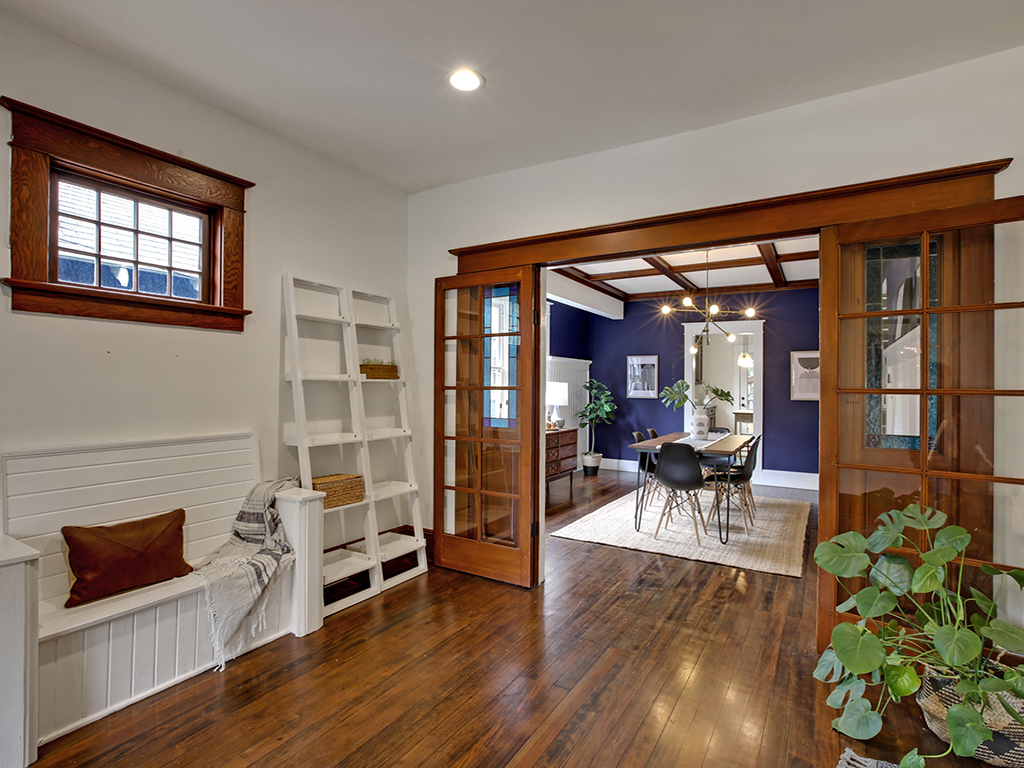 Richmond Craftsman ~ Gorgeous 4 bedroom, 3 bathroom home features classic architecture and modern amenities. Loads of vintage details; stained glass, wood floors, craftsman millwork, wainscoting, box beams. Modern chef’s kitchen opens to back porch and fenced yard with natives & entertainment spaces. 2 large bedrooms upstairs, both en suite & 2 additional bedrooms on the main. Covered front porch, renovated throughout in 2016; electrical, plumbing, hi-eff furnace, roof, siding. Blocks from Division goodies; restaurants, cafes, shops & parks.