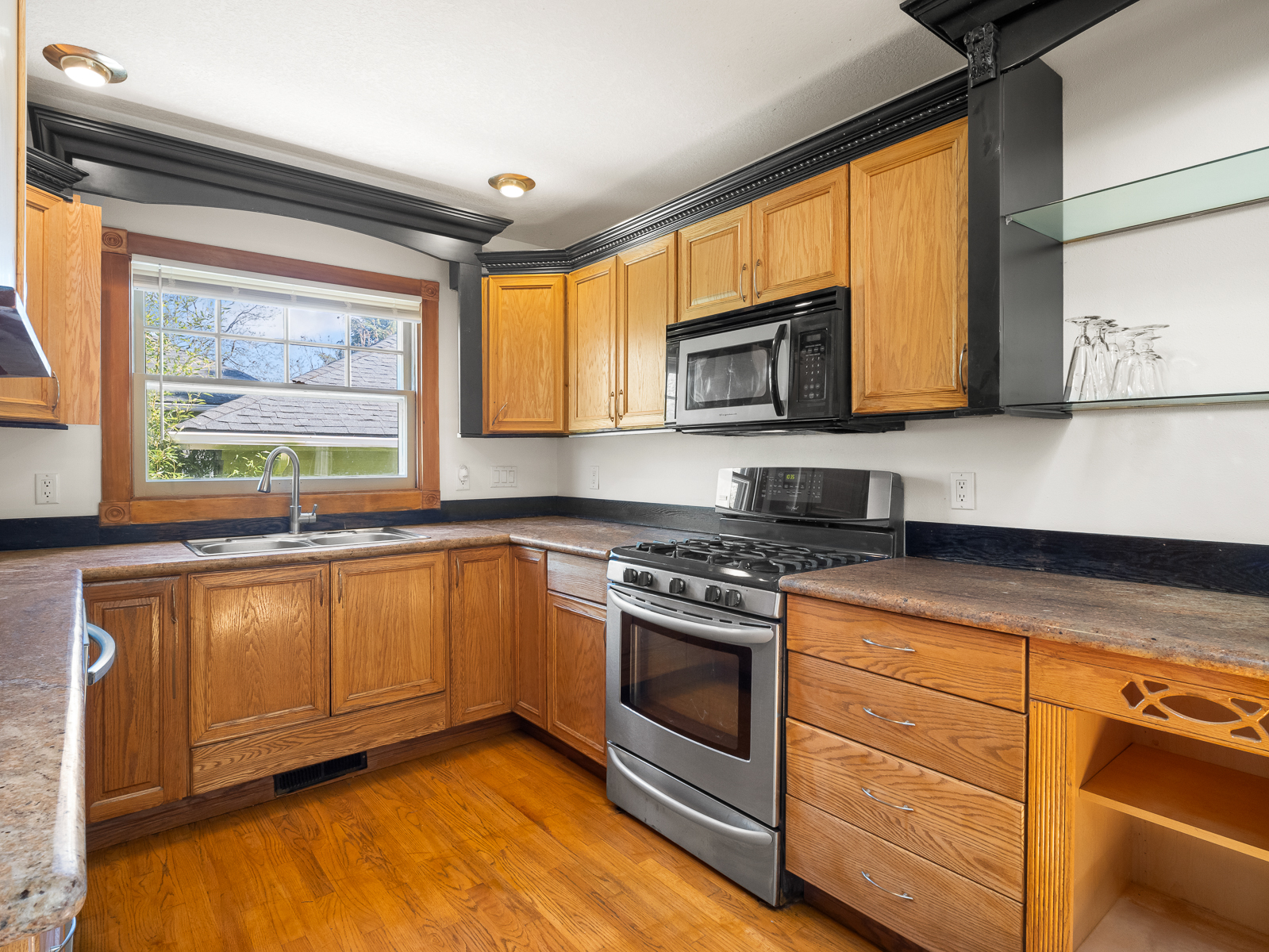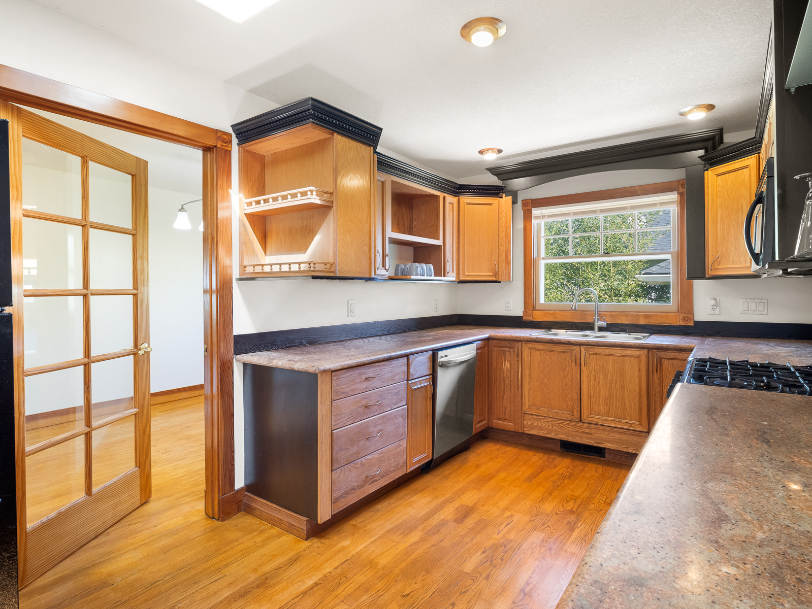 Notice lovely details like gleaming wood floors, unique granite counters, and an energy efficient tankless water heater. The backyard features sunny space to play and garden as well as a rare detached two car garage: park multiple vehicles here, or create a fantastic wood shop! Enjoy living tucked onto a quiet street, but with shops and restaurants at your fingertips: walk score of 77, bike score of 91!