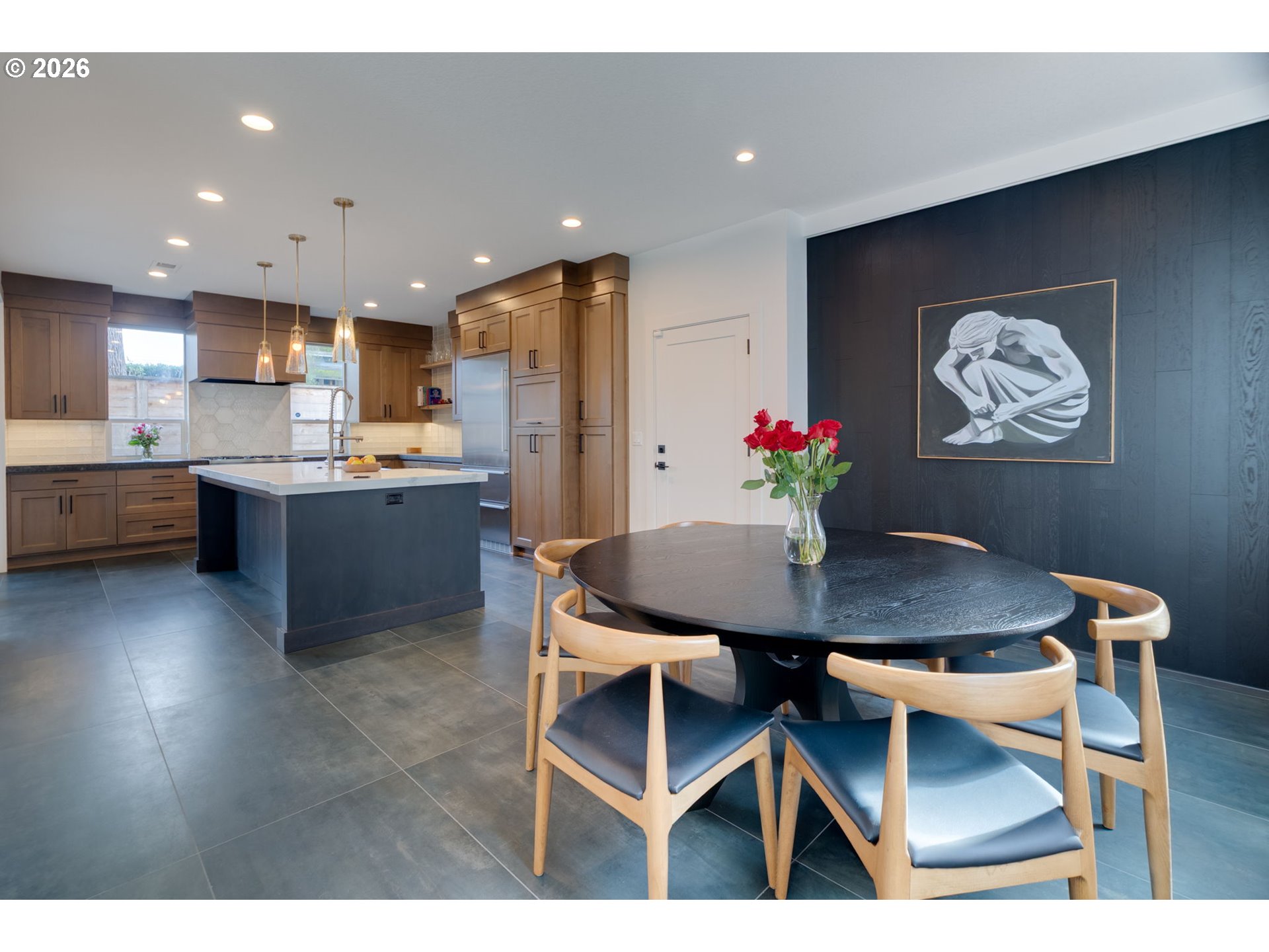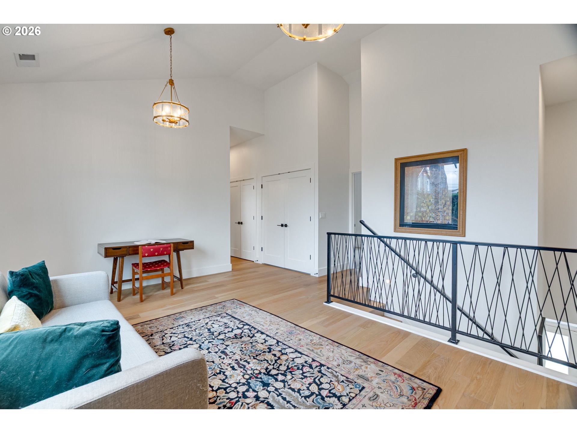 Exceptional 2022 construction in the heart of Sellwood, offering elevated design, quality craftsmanship, and refined modern living. This attached residence lives like a standalone home (NO HOA) blending architectural intention with everyday comfort. Bathed in natural light, the open-concept main level showcases clean lines, soaring windows, and thoughtfully curated, high-end finishes throughout. The gourmet kitchen is a true centerpiece, anchored by an expansive entertainer’s island and seamlessly flowing into the dining area, living room, and covered patio for effortless indoor-outdoor living. Designed for gathering, yet equally suited for quiet evenings at home. Upstairs, four bedrooms surround a stunning central loft, a light-filled retreat with expansive windows that create an atrium-like ambiance. Complete with a built-in bar and beverage refrigerator, this flexible space is ideal for movie night, use as a studio, or working from home. The vaulted primary suite offers a serene escape with a spa-inspired bath and walk-in closet. Second-floor laundry enhances daily ease. The outdoor space is beautifully balanced with room to garden, host, and unwind, while remaining low-maintenance and manageable. EV charger installed and an attached garage adds convenience and security. All just moments from the boutiques, restaurants, parks, and river access that make Sellwood one of Portland’s most sought-after neighborhoods.