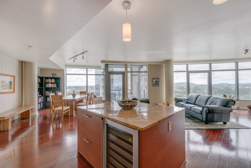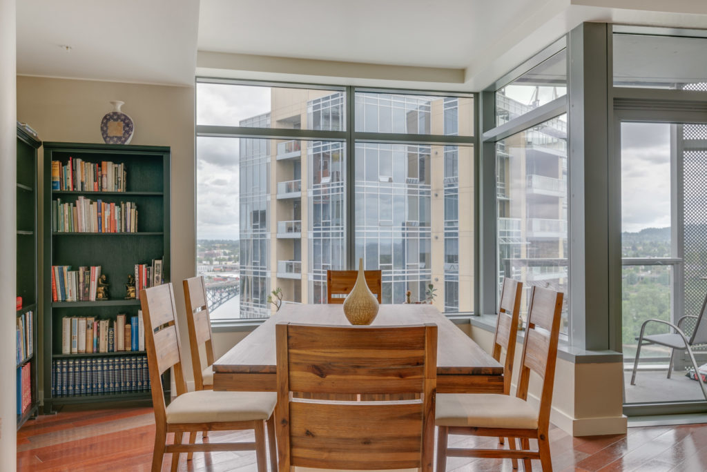 Come home to this breathtaking corner unit on the 22nd floor of the gorgeous John Ross building. Floor to ceiling windows provide panoramic views of Mt. St. Helens, Mt. Hood, Willamette River & Portland cityscape! The open floor plan is great for entertaining and features a kitchen with stainless steel appliances. There are two large bedrooms, a huge walk-in closet in the master bedroom, and utility room with washer dryer hookups. Two deeded parking spots and storage unit included. Plus, treat yourself to the luxury of 24-hour concierge, community room, rooftop garden & BBQ area!
