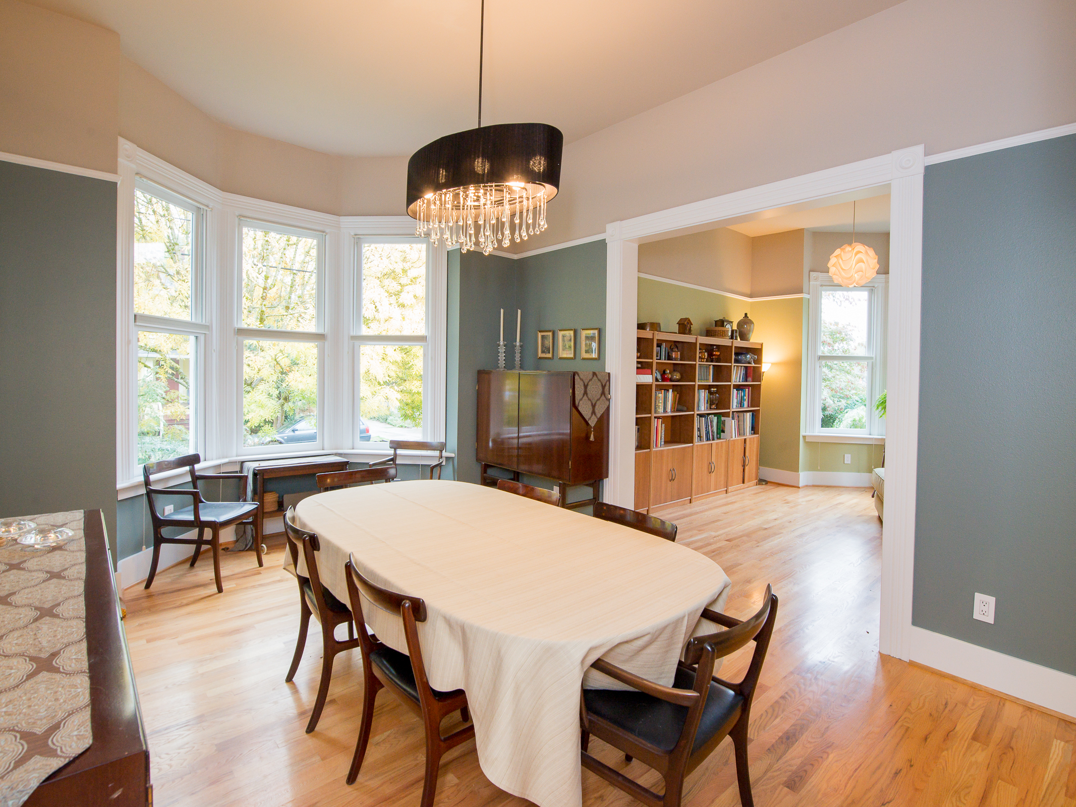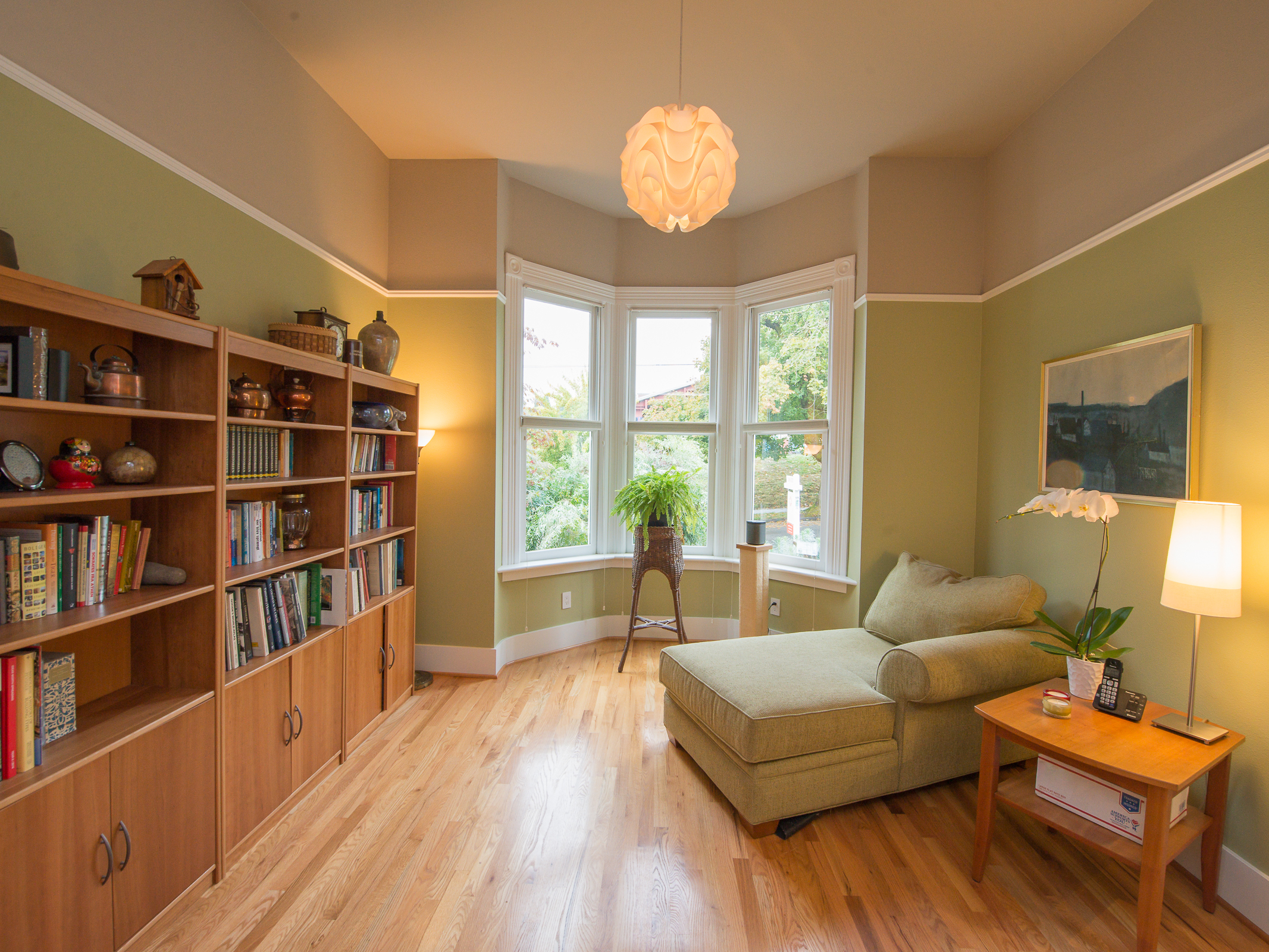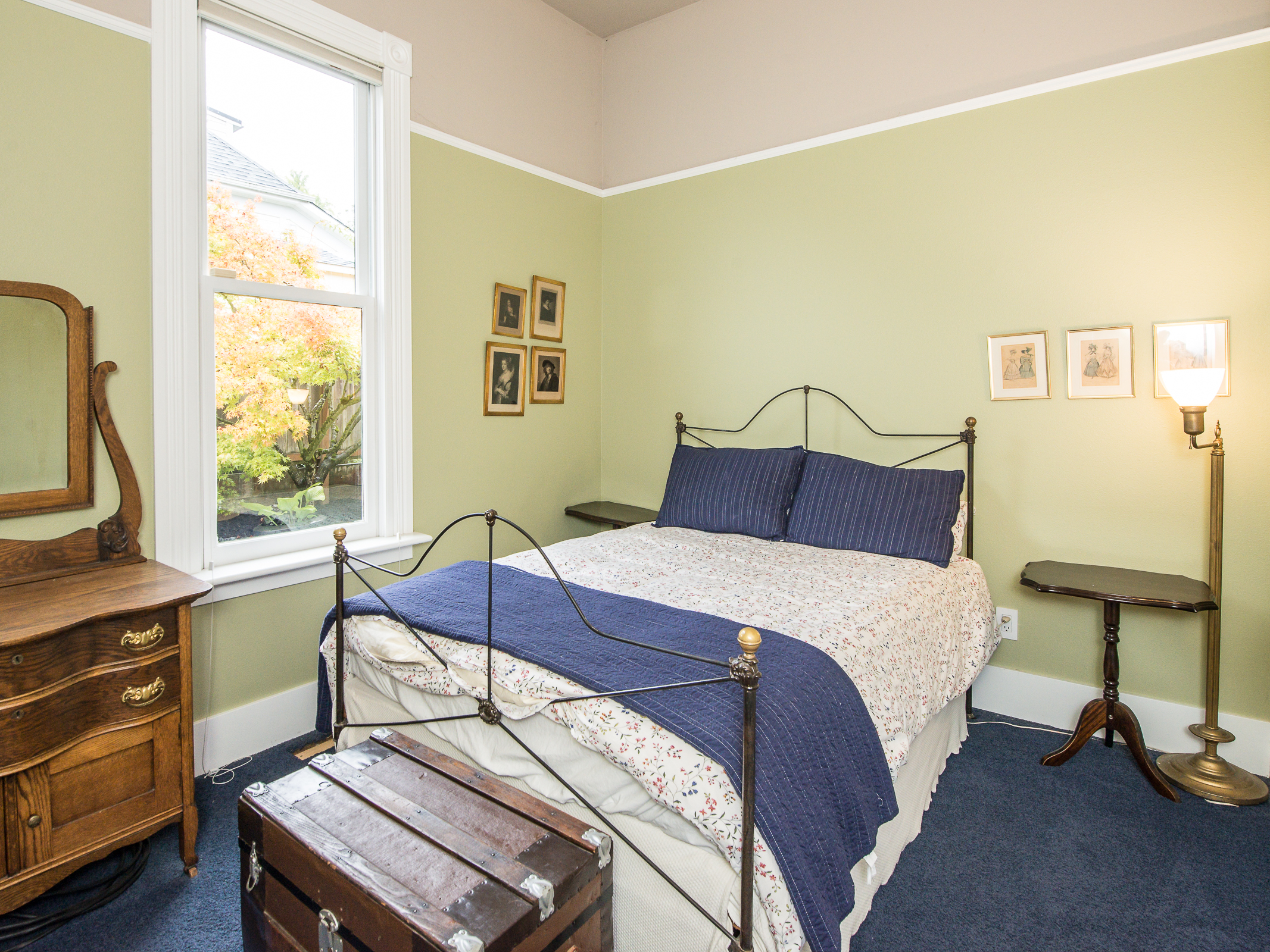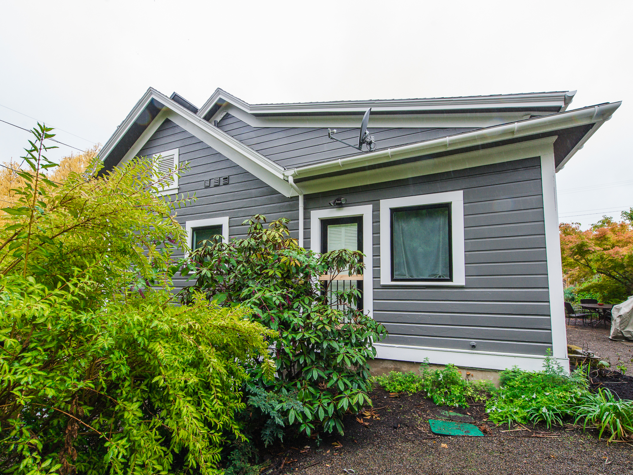 This is a truly special and unique home – in Buckman! Owned by an Architect and Tradesman they have produced a tasteful contemporary remodel that retains subtle Victorian charms, while using some of the most efficient green technologies – solar, radiant floor heat on both floors, fully insulated envelope – truly a new home in so many ways. Master suite on main provides a walk in closet + elegant bath with soaking tub alongside the rest of the 11′ ceiling rooms – an open kitchen that entertains into the living room, grand fireplace connecting to the bay window dining room. You’ll also find an en suite guest room, a perfect home office, bay window library full of sun. Street level family room is perfection, joins the additional pair of bedrooms, stylish laundry room, and fascinating mechanical room storing components of the homes green features. Private mature landscape, beautiful plantings, heated and insulated shed on concrete pad complete with sub panel for tools, art or get away space!