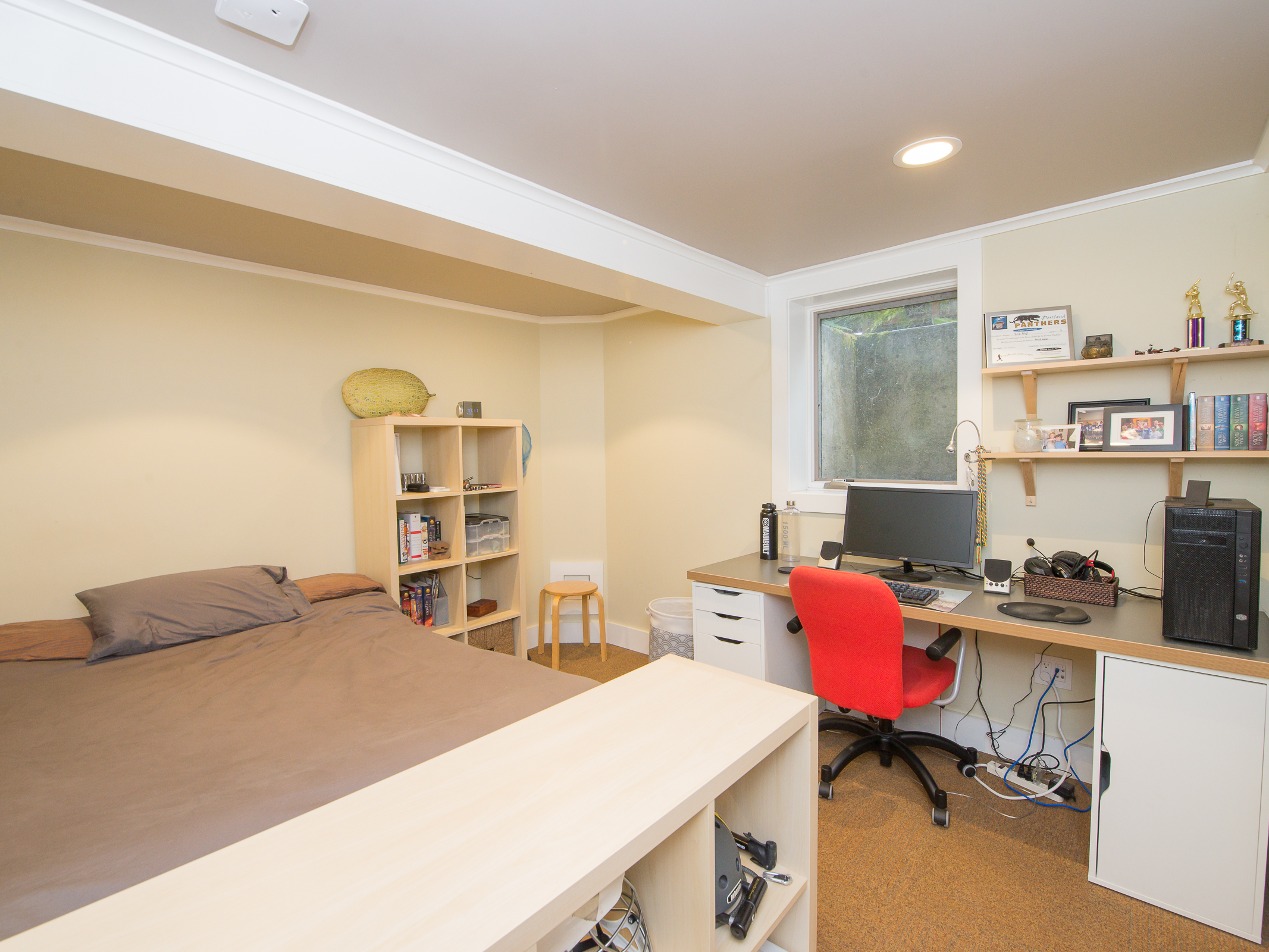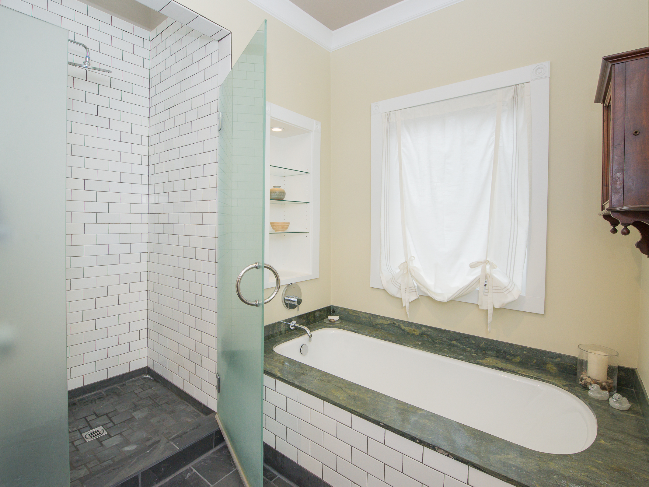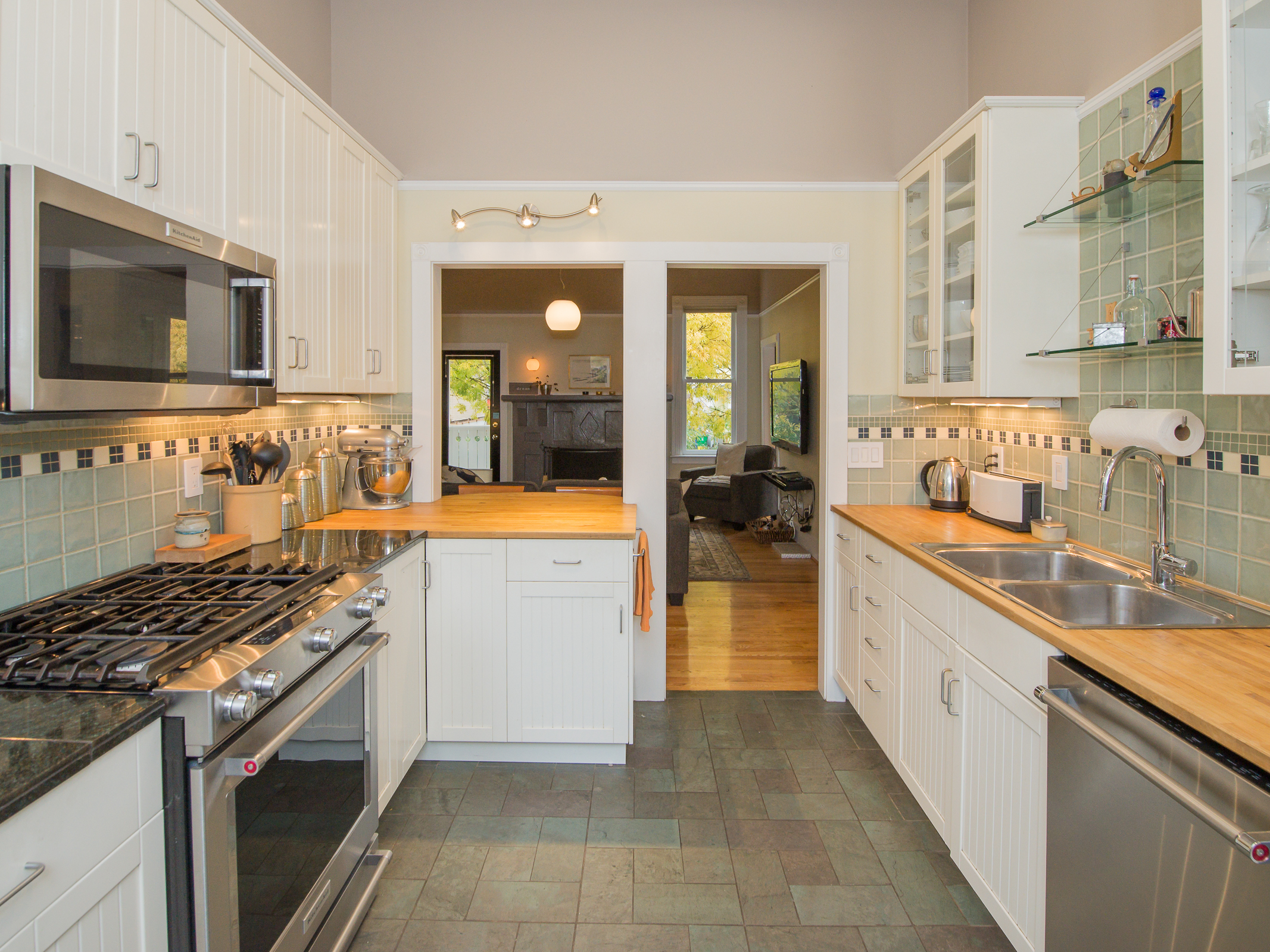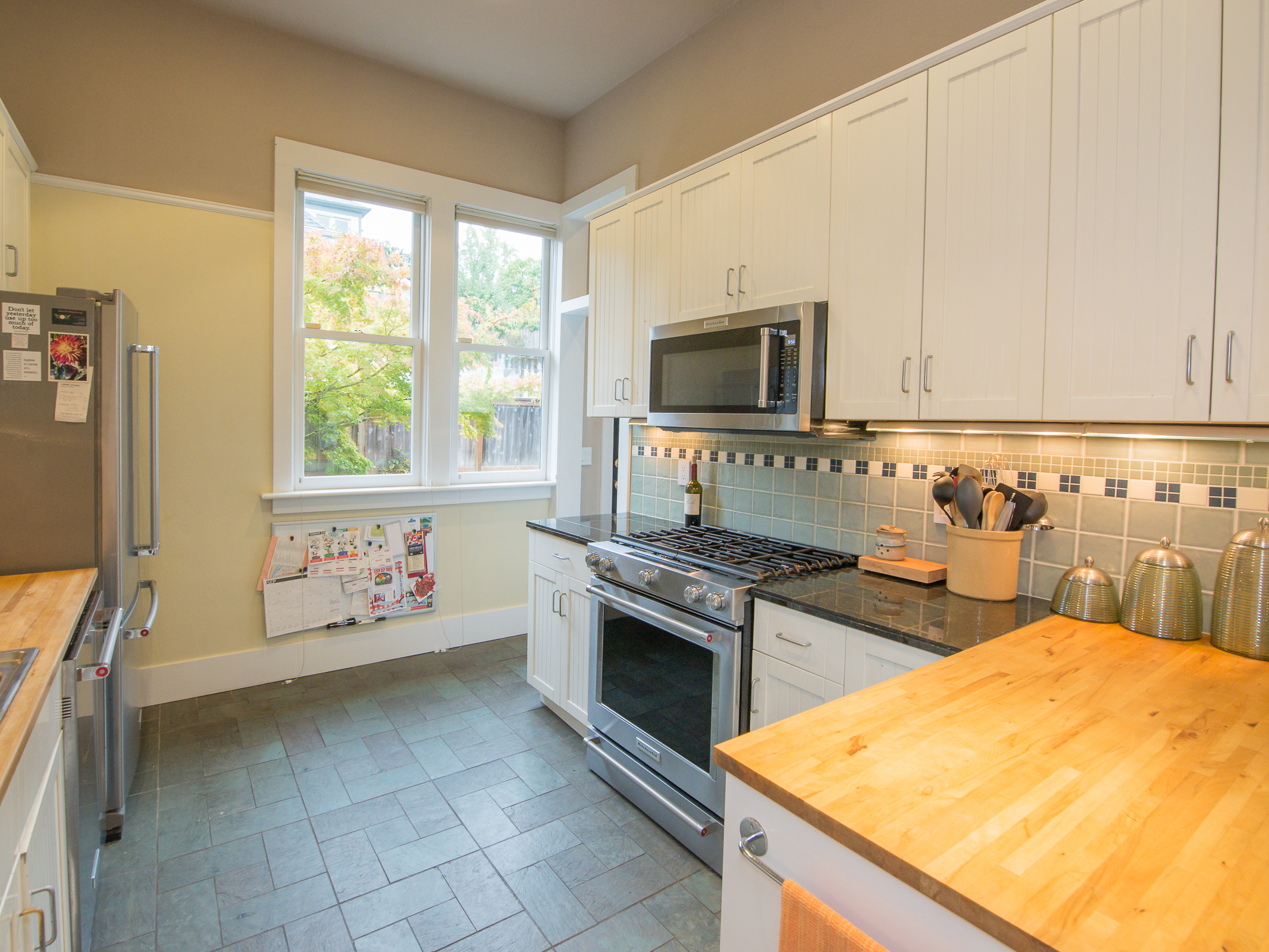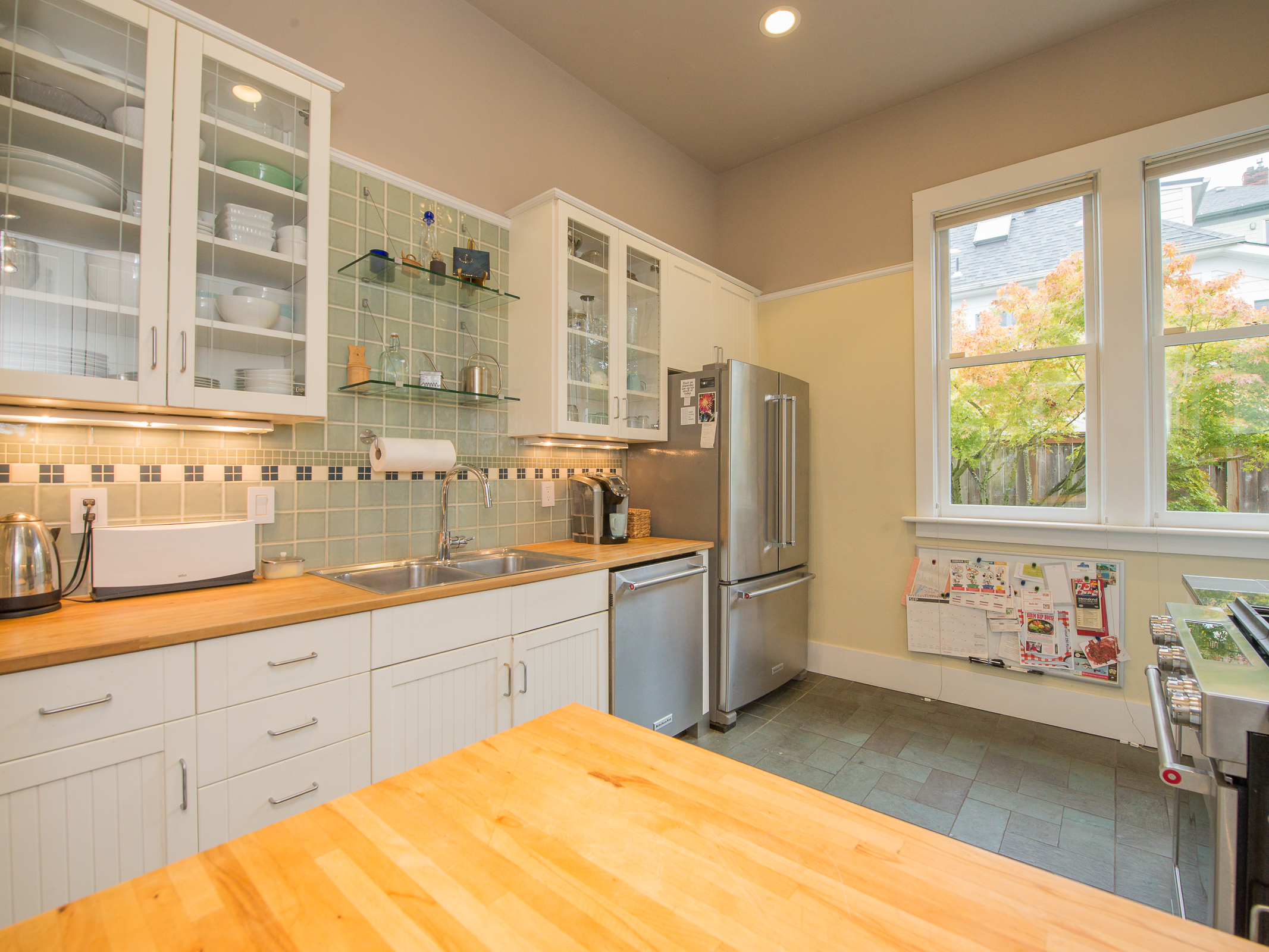 This is a truly special and unique home – in Buckman! Owned by an Architect and Tradesman they have produced a tasteful contemporary remodel that retains subtle Victorian charms, while using some of the most efficient green technologies – solar, radiant floor heat on both floors, fully insulated envelope – truly a new home in so many ways. Master suite on main provides a walk in closet + elegant bath with soaking tub alongside the rest of the 11′ ceiling rooms – an open kitchen that entertains into the living room, grand fireplace connecting to the bay window dining room. You’ll also find an en suite guest room, a perfect home office, bay window library full of sun. Street level family room is perfection, joins the additional pair of bedrooms, stylish laundry room, and fascinating mechanical room storing components of the homes green features. Private mature landscape, beautiful plantings, heated and insulated shed on concrete pad complete with sub panel for tools, art or get away space!