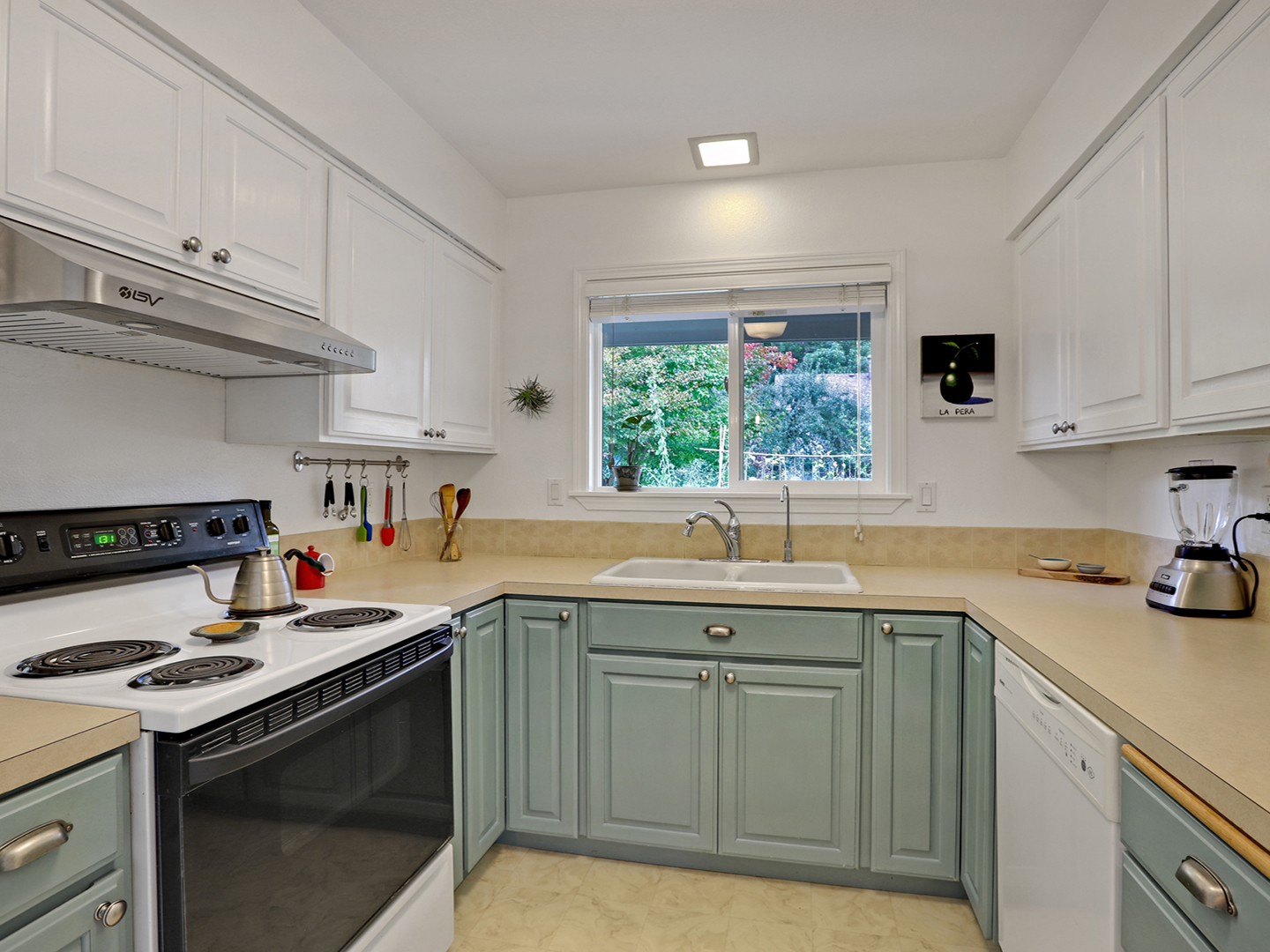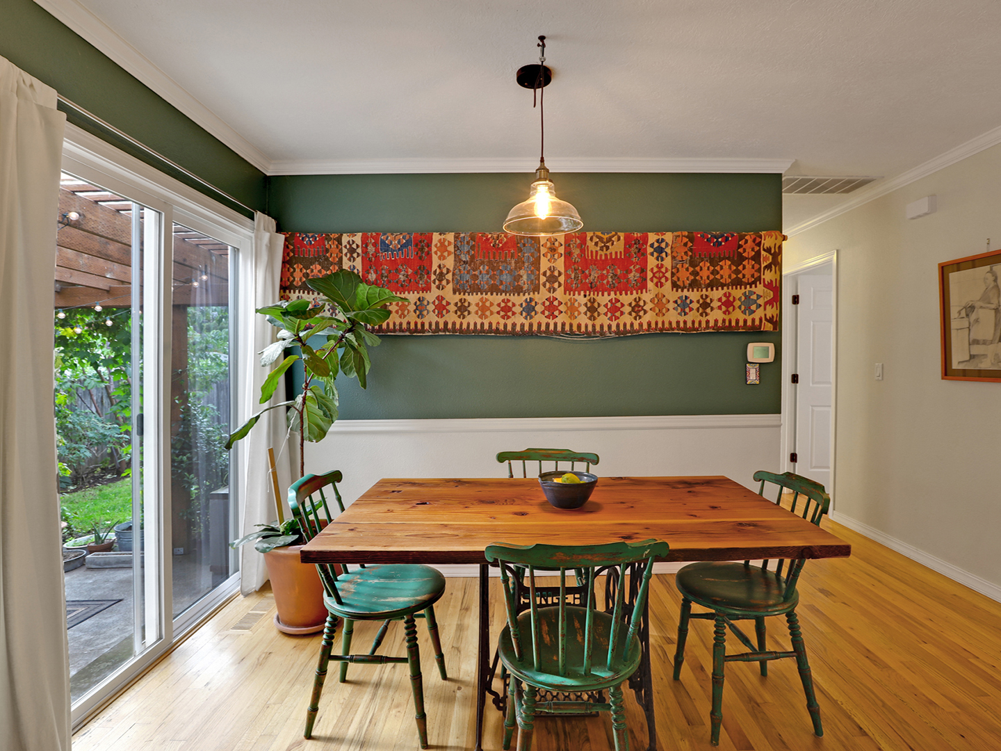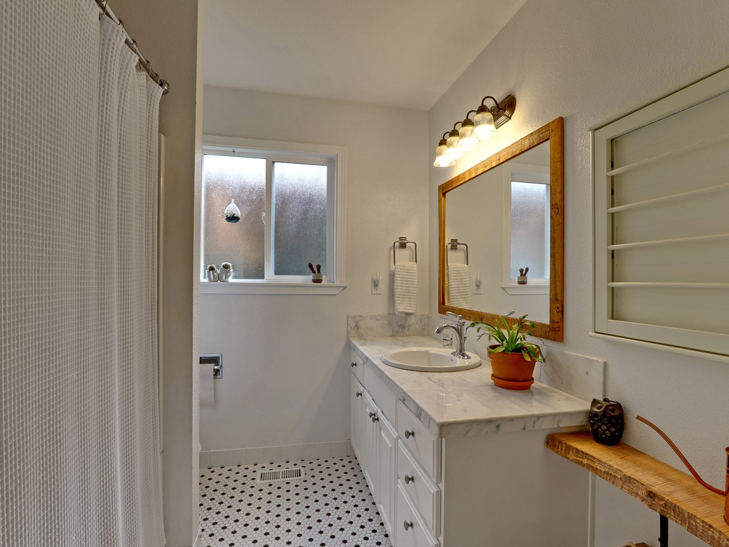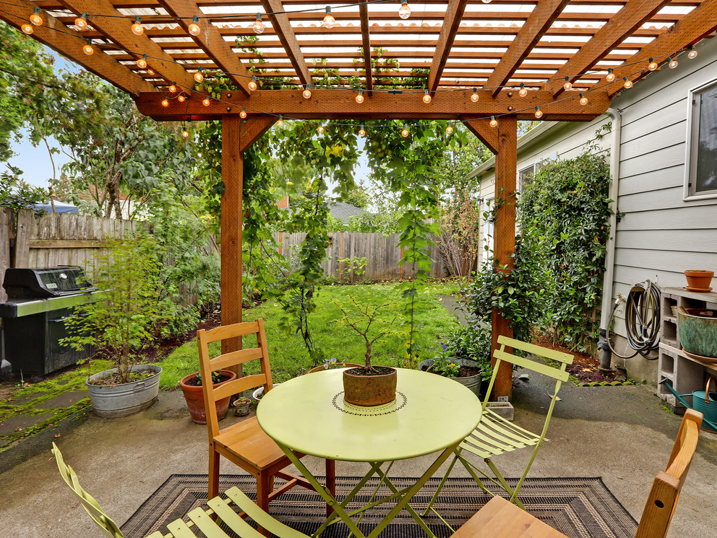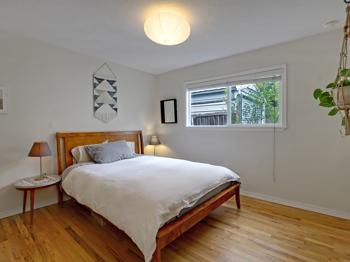 South Tabor Mid Century. Remodeled one-level with open floorplan. Flooded with light, views of established landscaping throughout. Gorgeous oak floors, wood burning fireplace, attached garage, updated kitchen & bathroom. Dining room opens to private, covered patio. Tucked away on a quiet street, a retreat-like setting w/secret sauna & shower room. Blocks from Mt Tabor, Bike routes & Division goodies.