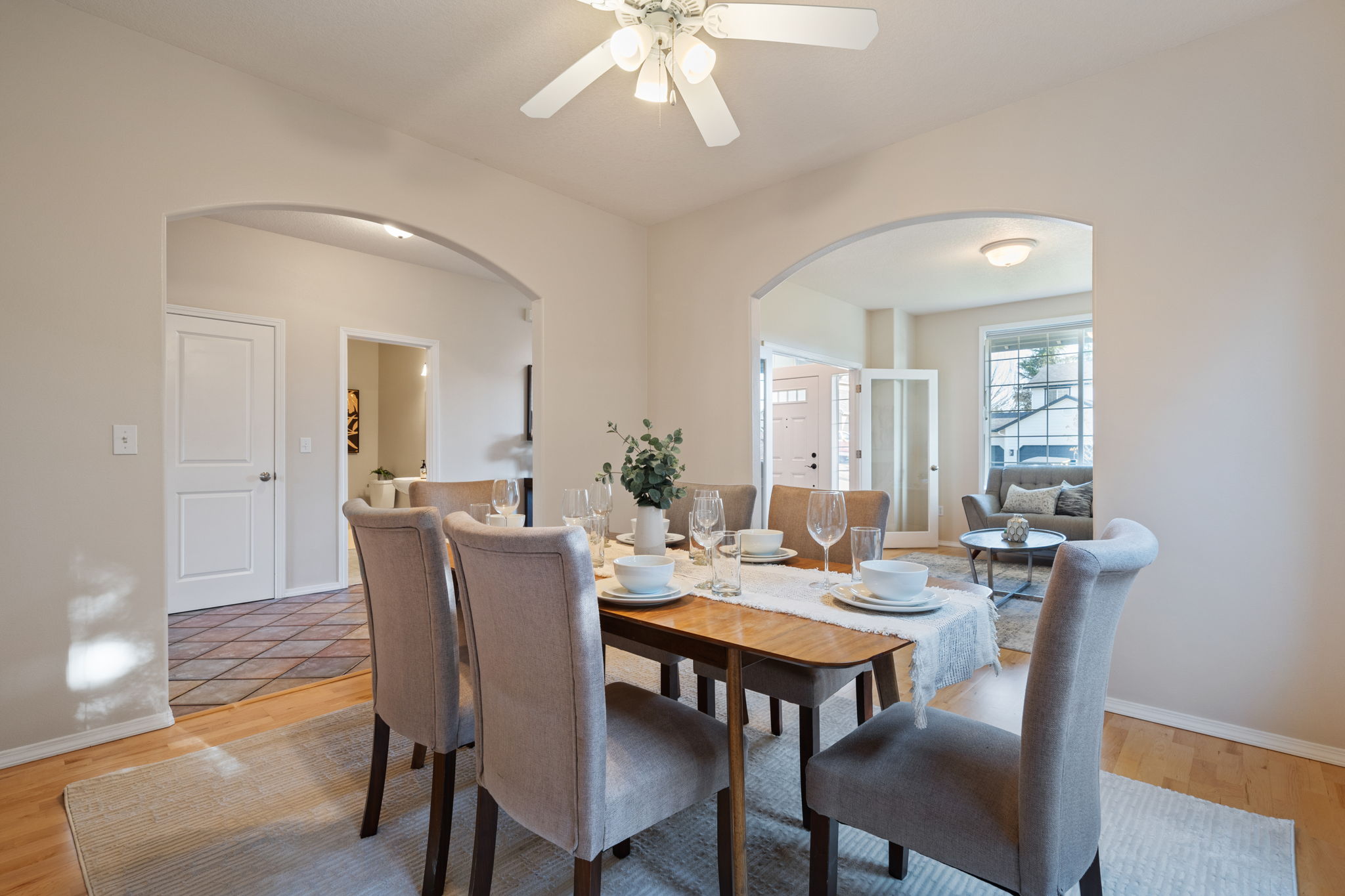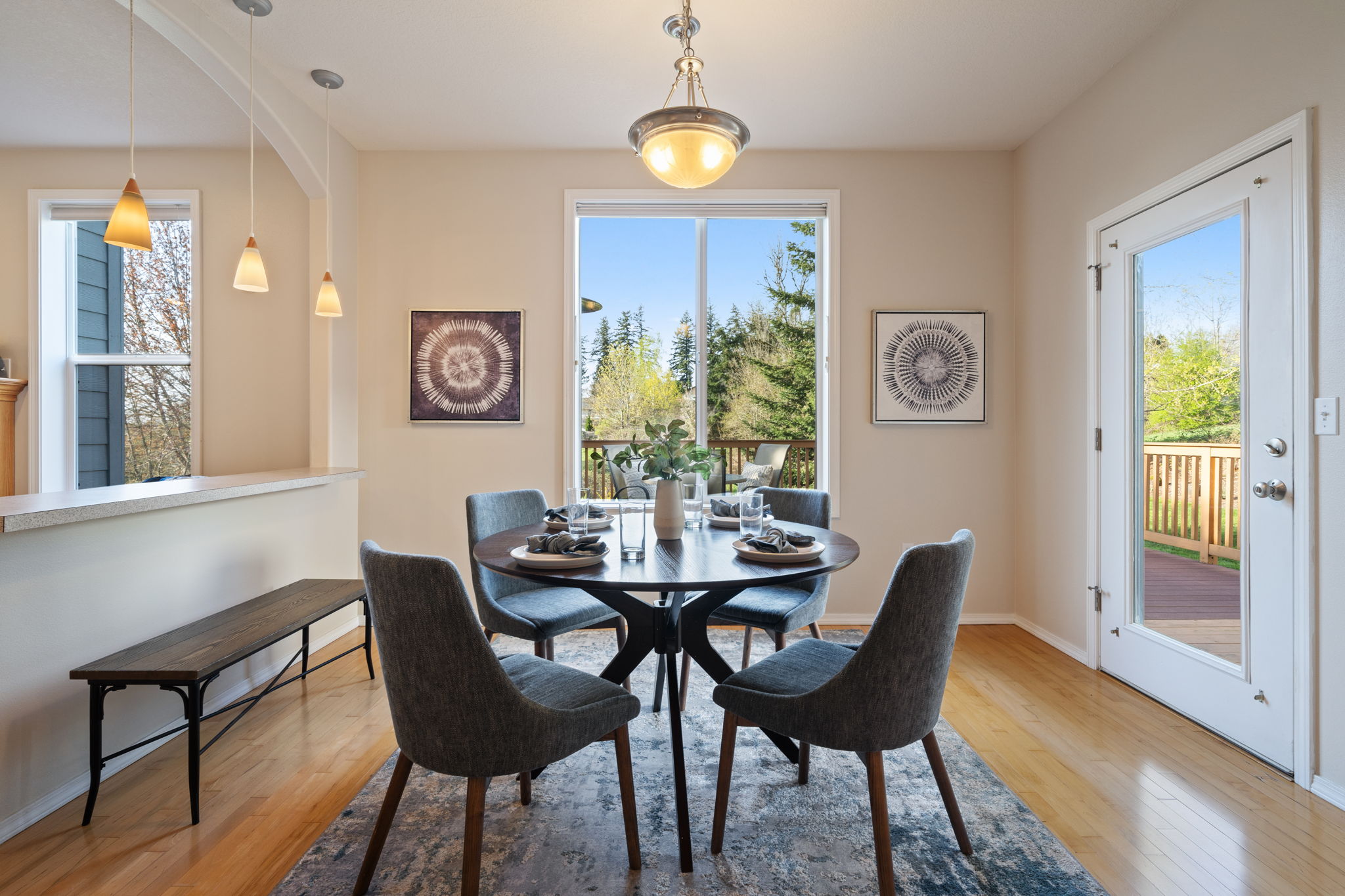 Inside, the main floor layout includes a formal living room with French doors that connect to the formal dining room. The extra-large family room with a gas fireplace adjoins the kitchen dining nook, connected by a pass-through bar. With two living areas and two dining spaces, there’s plenty of room for entertaining, relaxing, or hosting dinners and celebrations. Step out onto the large back deck to enjoy the sights and sounds of nature. Upstairs, you’ll find all four bedrooms, a versatile loft space, and a convenient laundry room—all with freshly updated carpet for a clean, move-in-ready feel. The extra-spacious primary suite includes an equally roomy walk-in closet and an ensuite bathroom with dual sinks. With nearly 3,000 sq ft, a 3-car garage, and close proximity to Hwy 14, trails, and top-rated schools, this home is ready to meet your everyday needs—and your weekend adventures.