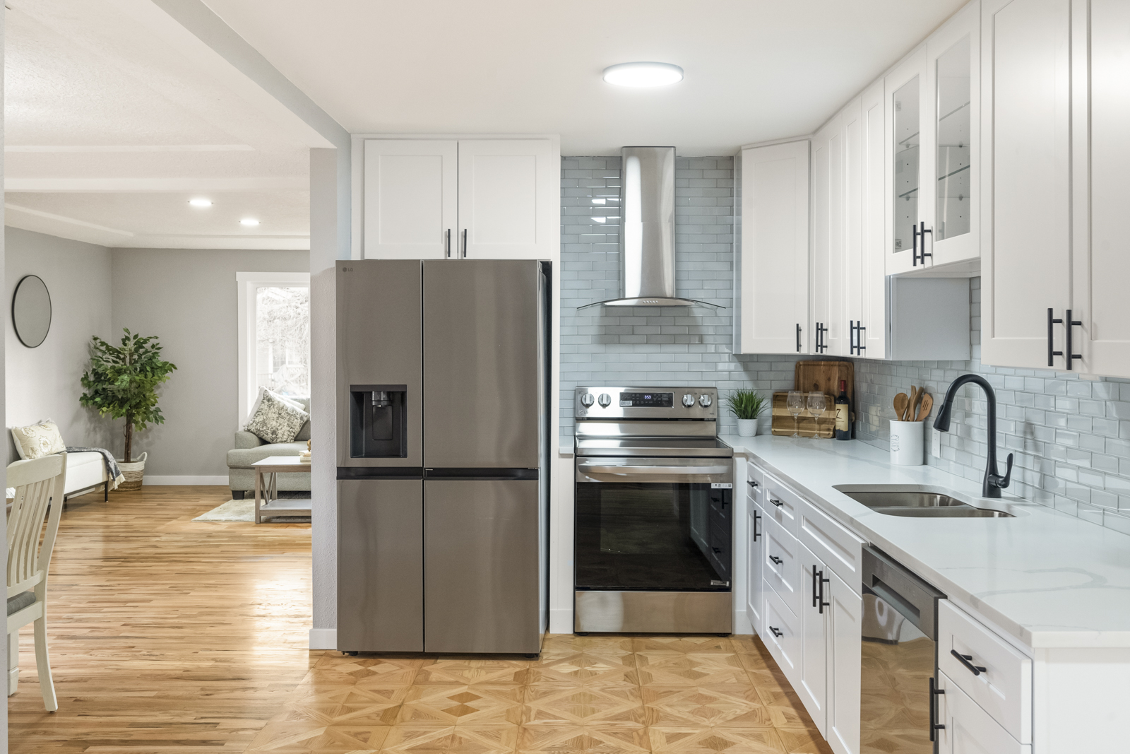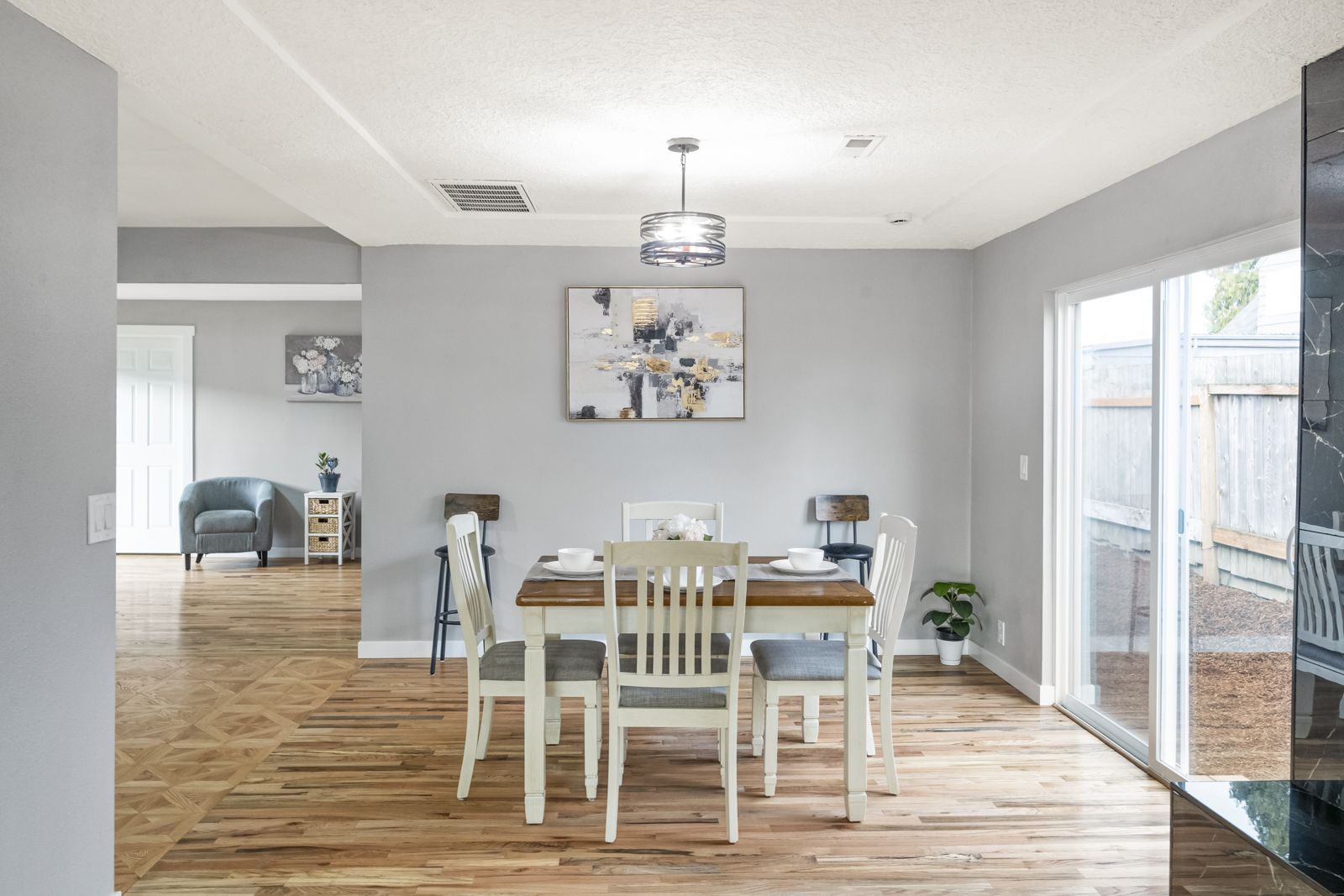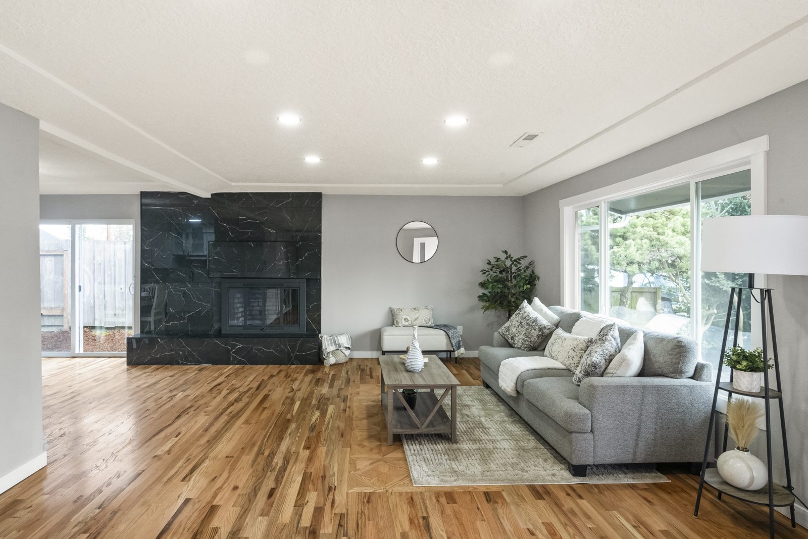 View ListingStylish midcentury ranch with all the upgrades! Move right into this high-end remodel in desirable St Johns and enjoy features like gorgeous wood floors, designer-tiled fireplace, a fully renovated kitchen with quartz countertops and energy efficient stainless steel appliances, and a beautiful primary bedroom with high-end ensuite bath that’s tucked away in its own separate wing of the house. There are two more bedrooms and a renovated hall bath, plus a large family room with views of the backyard that’s primed and ready for your green thumb.