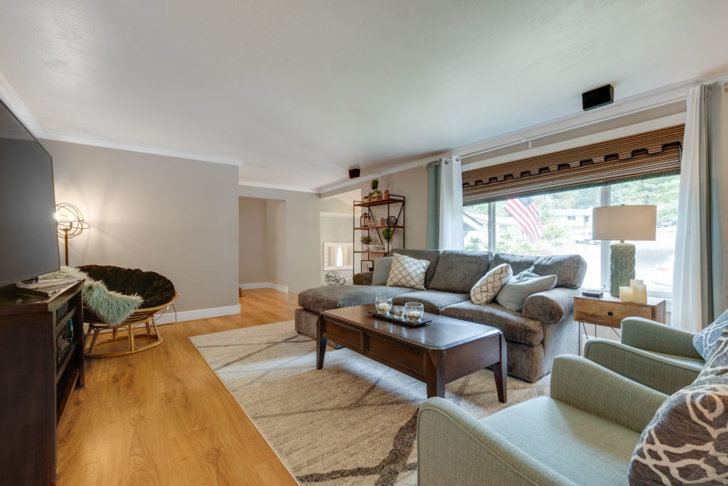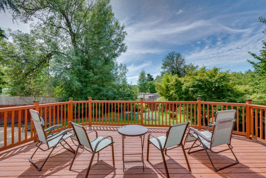 Come home in style! Elegant light fixtures greet you upon entry into a spacious, open concept living room on main level w/ cozy fireplace. Chic bamboo flooring feels oh so good on your feet all throughout upper level with good quality carpeted stairs. Enjoy outdoor gatherings all year round on expansive deck with a plush, large backyard. Easy to maintain backyard with the stamped concrete & refreshing green space. Plenty of room to spread out with 2 car garage, parking pad out front with space on both sides of the home and an outdoor shed perfect for extra toys for all ages. Brand new roof & water heater! Easy access to Hazeldale Park, Albertsons, Dutch Bros, Walgreens, Bus Line 88 & much more!