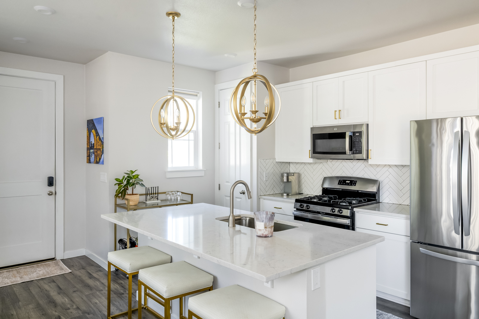 Upgraded Reed’s Crossing townhome with an assumable 3.375% FHA interest rate! This gorgeous property is loaded with extras like a beautiful kitchen with quartz counters and stylish backsplash, floor-to-ceiling tile in the bathrooms, soaring ceilings with oversized 8 foot doors, high-end lighting, laminate flooring throughout the main, a/c, and so much more.