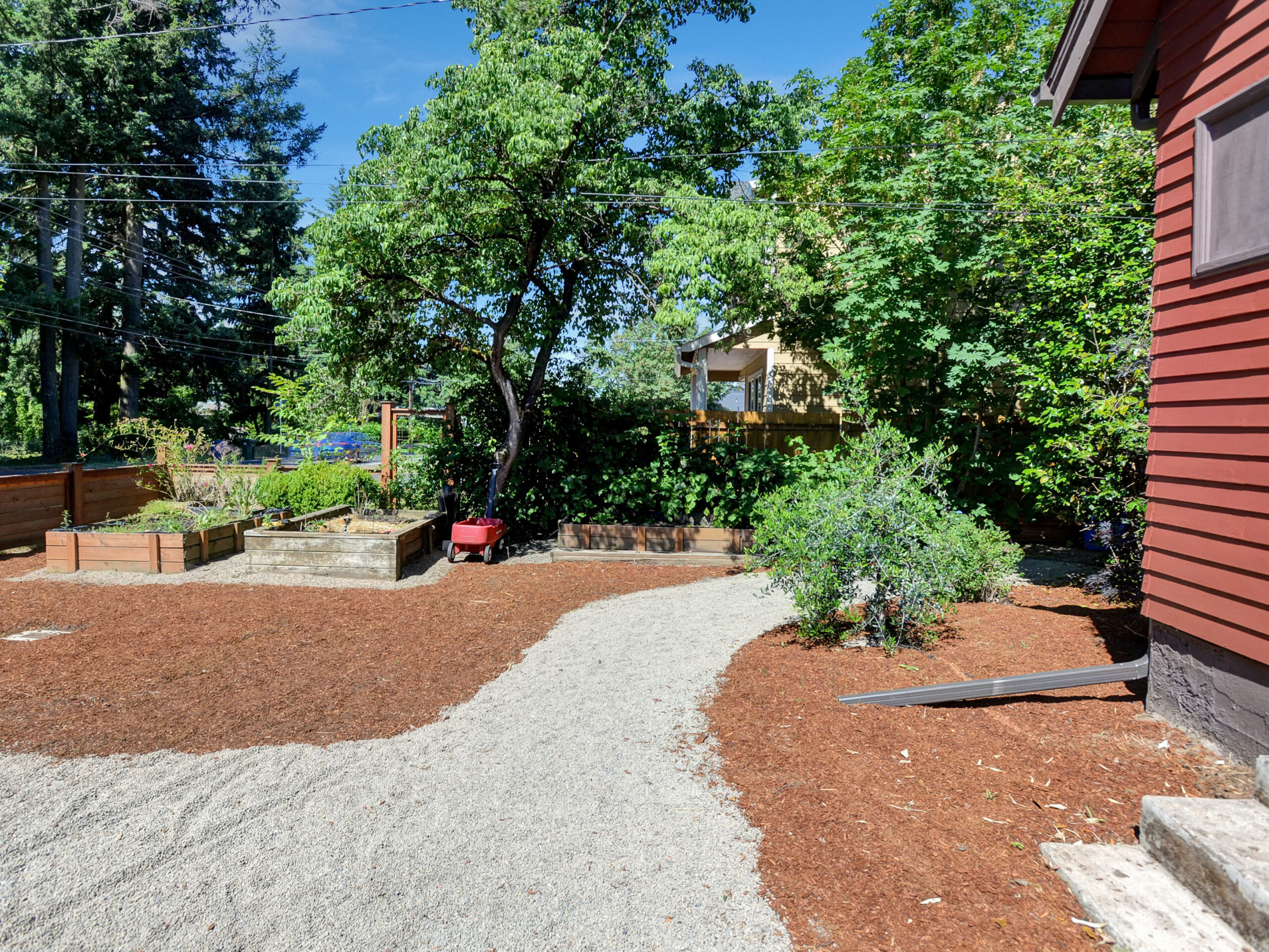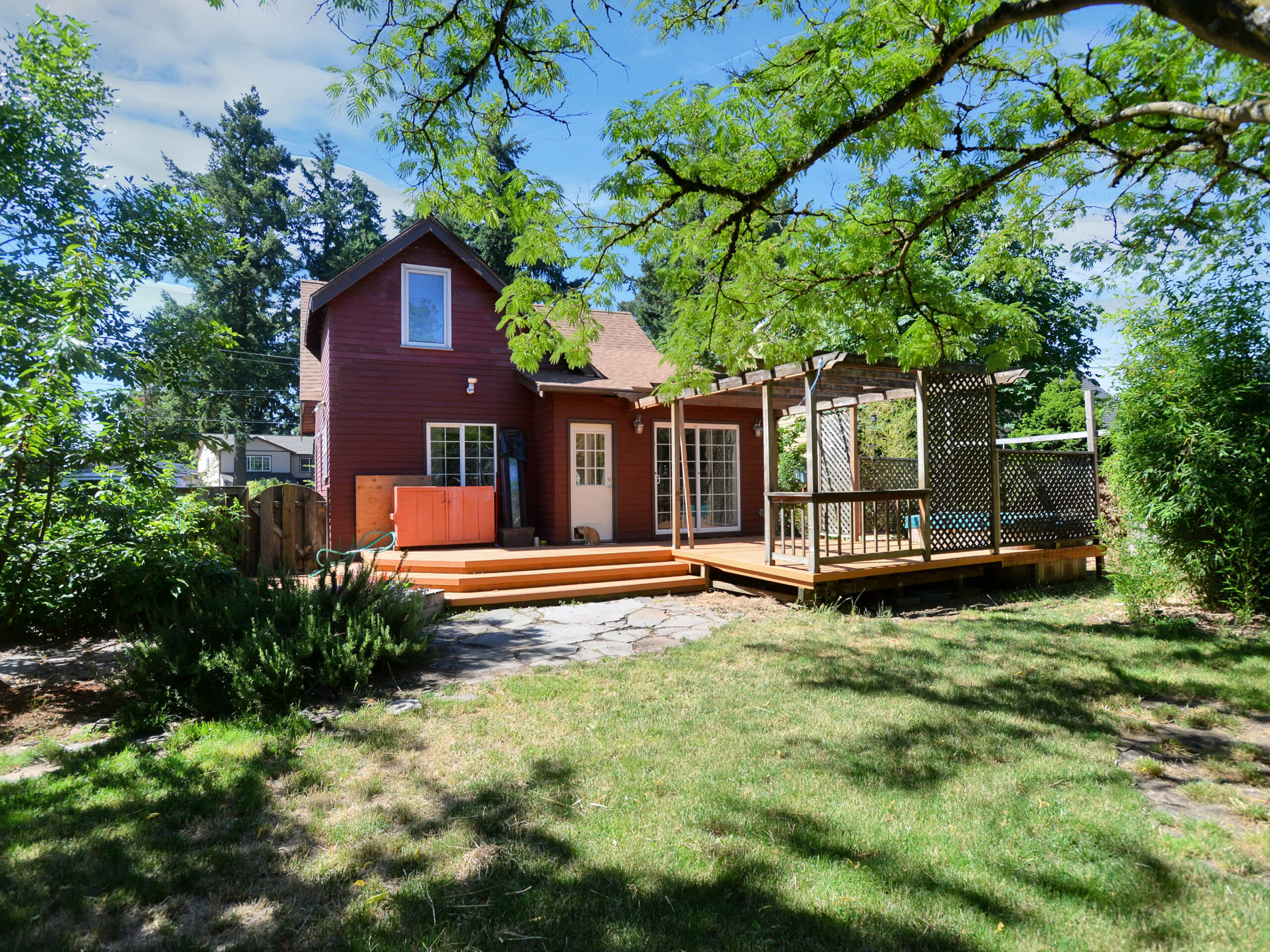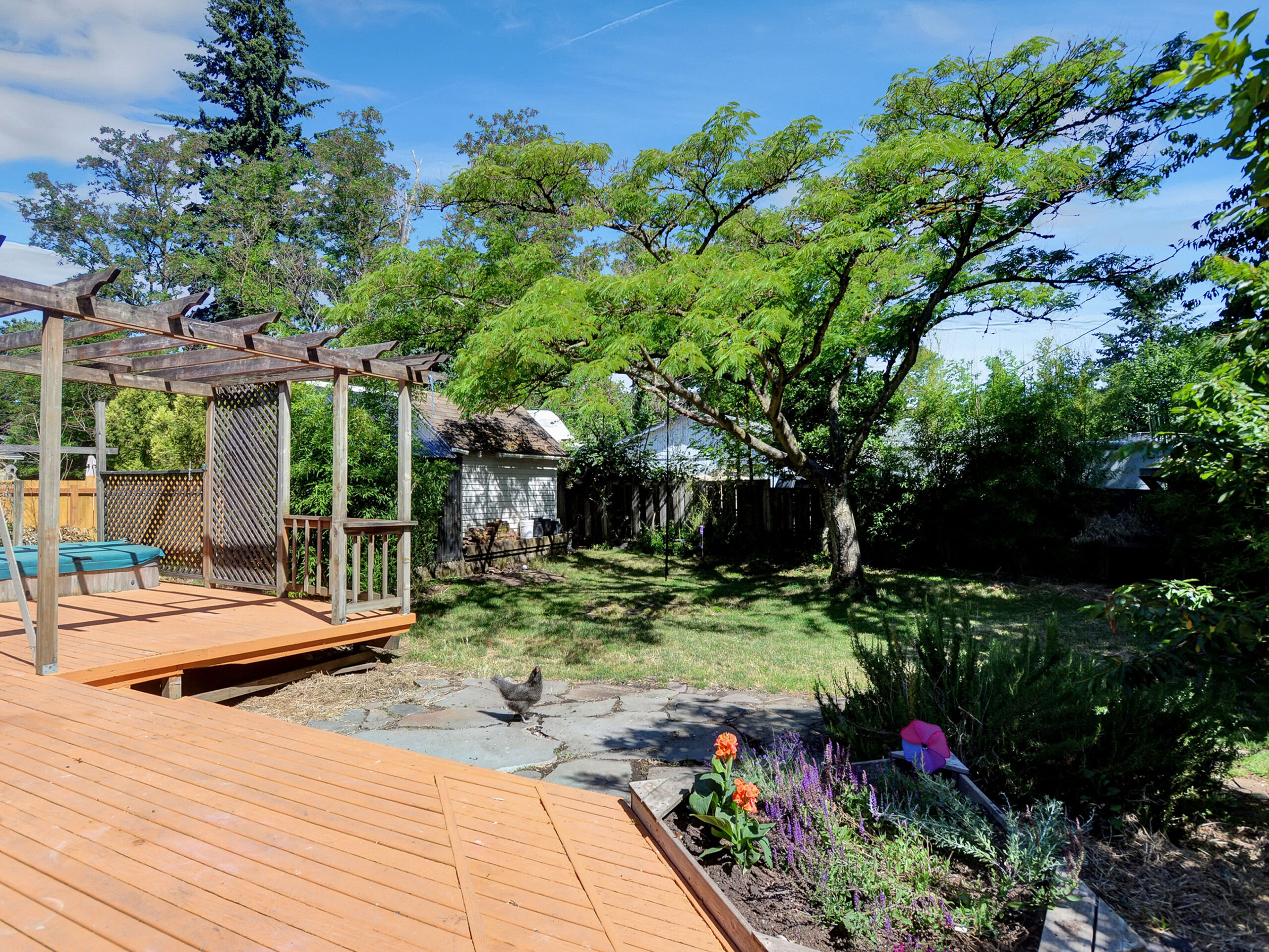 Updated farmhouse-style home on beautiful, spacious lot. Larger than it appears, this home offers open great-room style functionality and wonderful private spaces. Finished basement has separate laundry and potential as separate living space. Central kitchen with high-end appliances, butcher block island, and pantry. Sanctuary feel in bedrooms with cherry wood floors and solar powered skylights. Tons of potential for urban farming, a large private deck and hot tub!