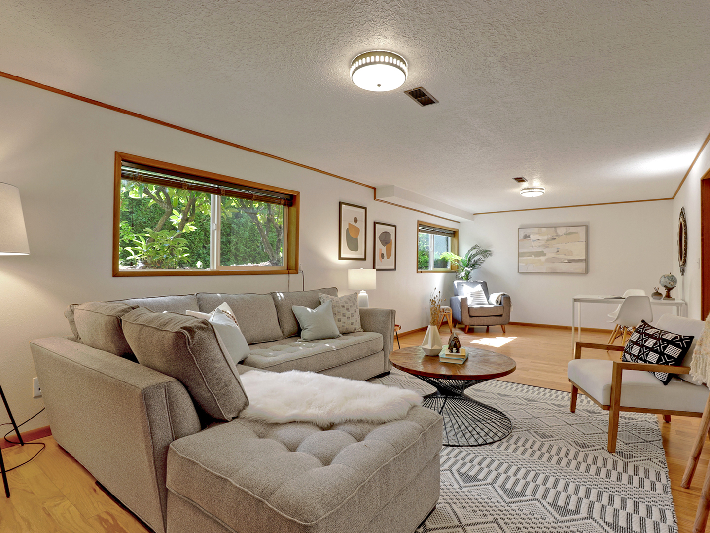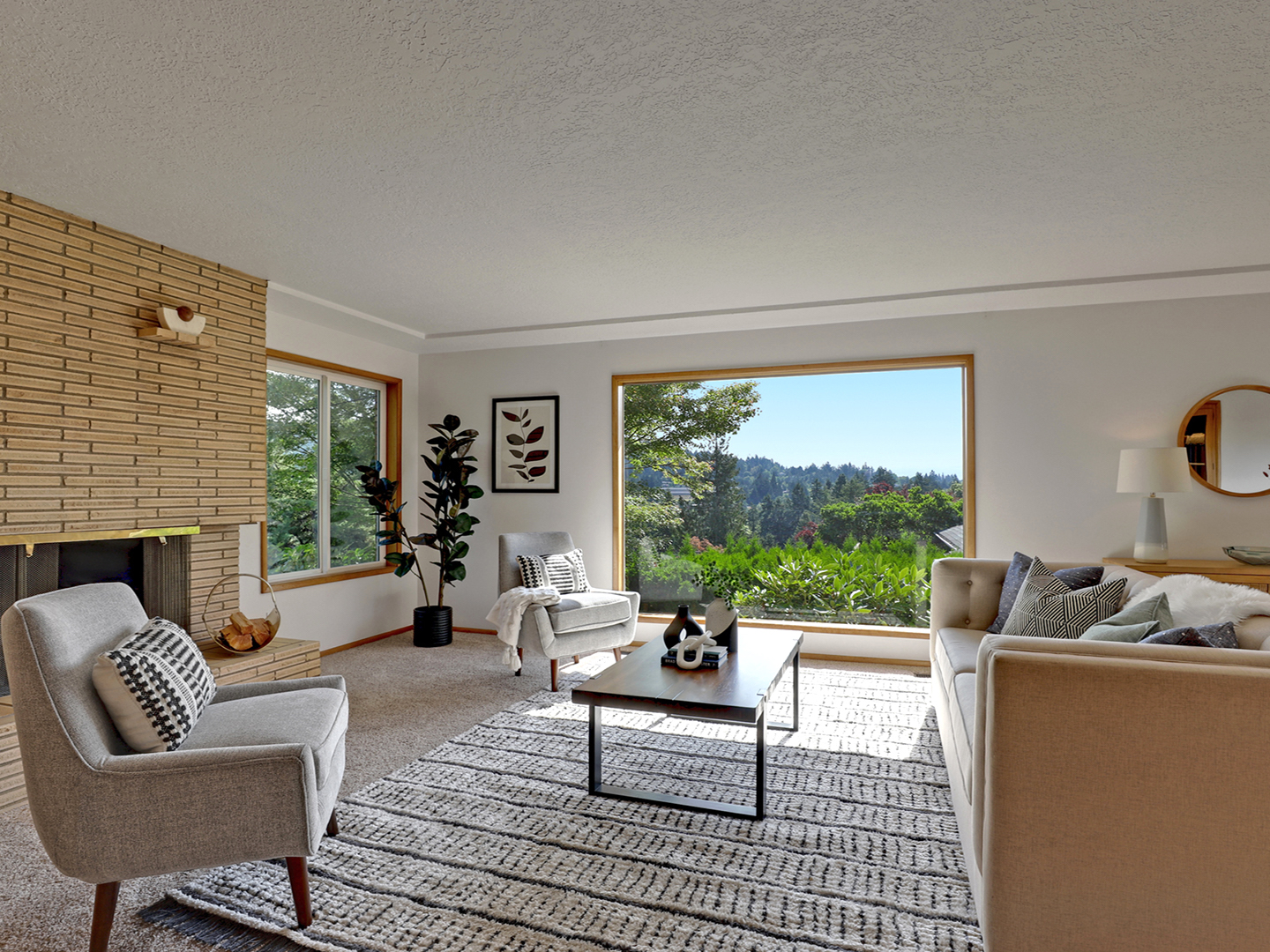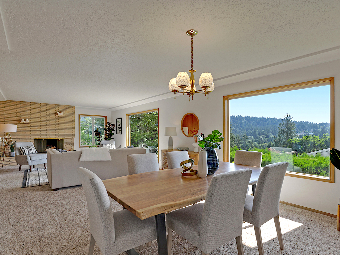 View ListingVermont Hills Midcentury with classic ’60s details in architect-designed floorplan. Mount Hood views, original Oak flooring, Mahogany trims & abundant built-ins. Updated kitchen with dining nook, tile, cork flooring, access to sunroom/patio & multi-level backyard with established natives & edibles. 4 bedrooms & 2 baths on main level. Basement family room with 2nd fireplace & 3rd bath. Double garage, laundry room & additional basement storage. A mile to Gabriel Park, community center & local amenities.