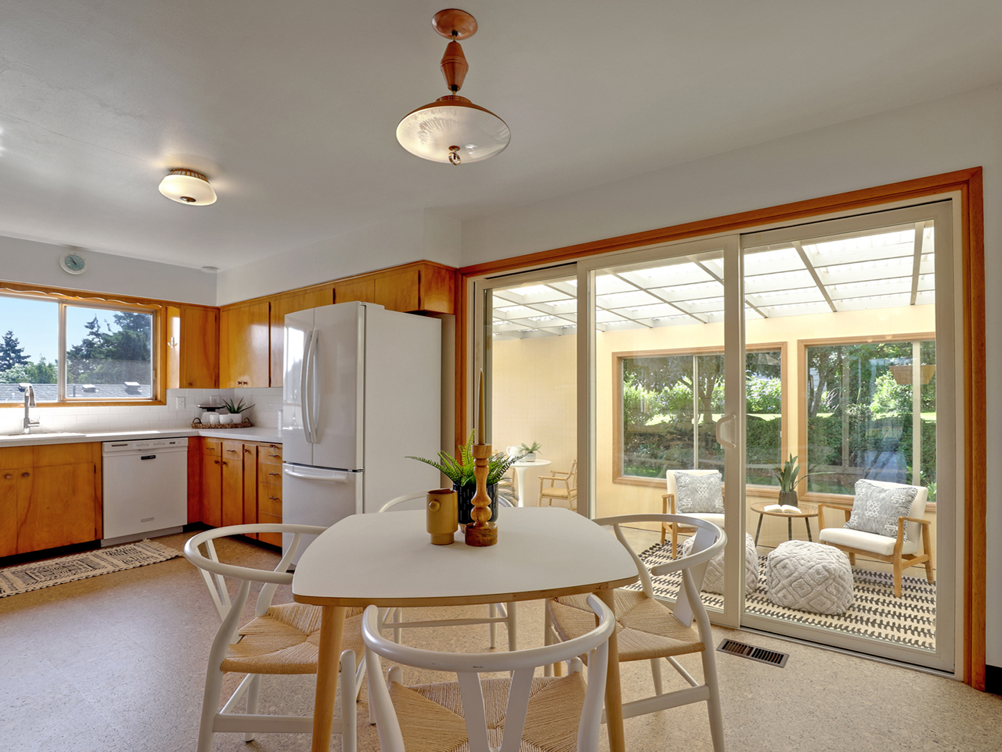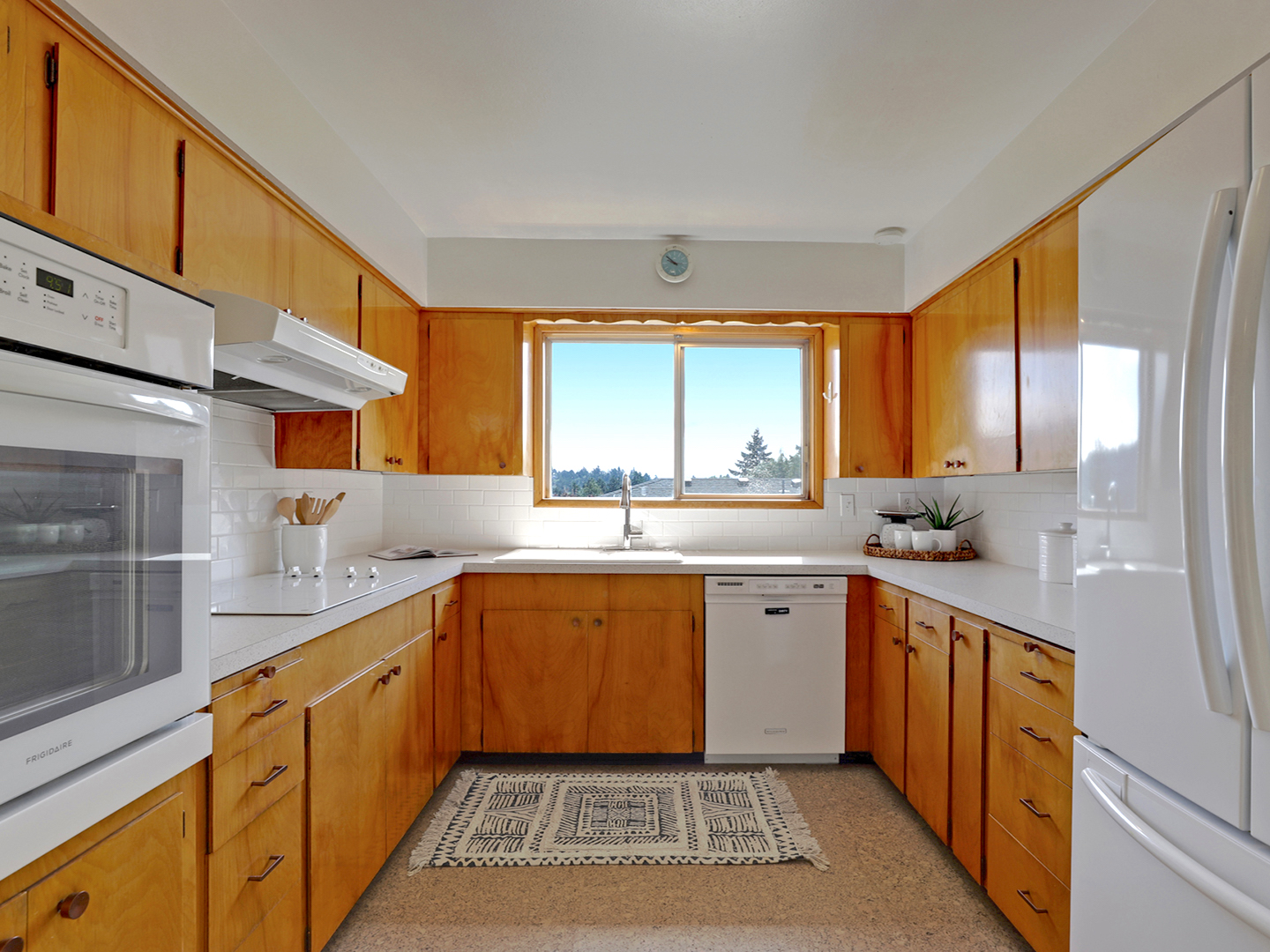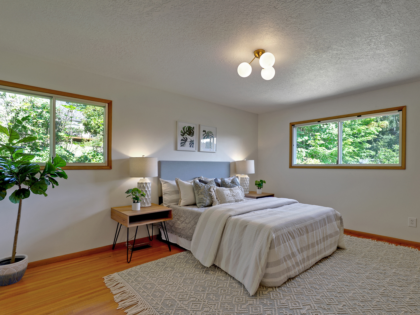 View ListingVermont Hills Midcentury with classic ’60s details in architect-designed floorplan. Mount Hood views, original Oak flooring, Mahogany trims & abundant built-ins. Updated kitchen with dining nook, tile, cork flooring, access to sunroom/patio & multi-level backyard with established natives & edibles. 4 bedrooms & 2 baths on main level. Basement family room with 2nd fireplace & 3rd bath. Double garage, laundry room & additional basement storage. A mile to Gabriel Park, community center & local amenities.