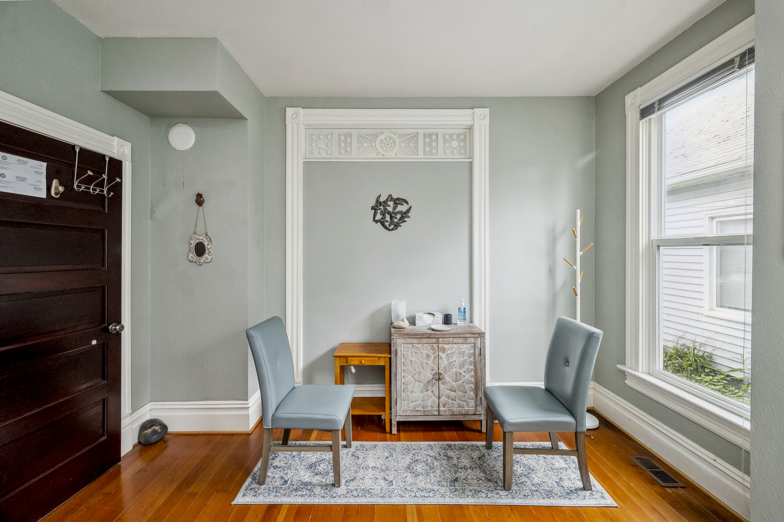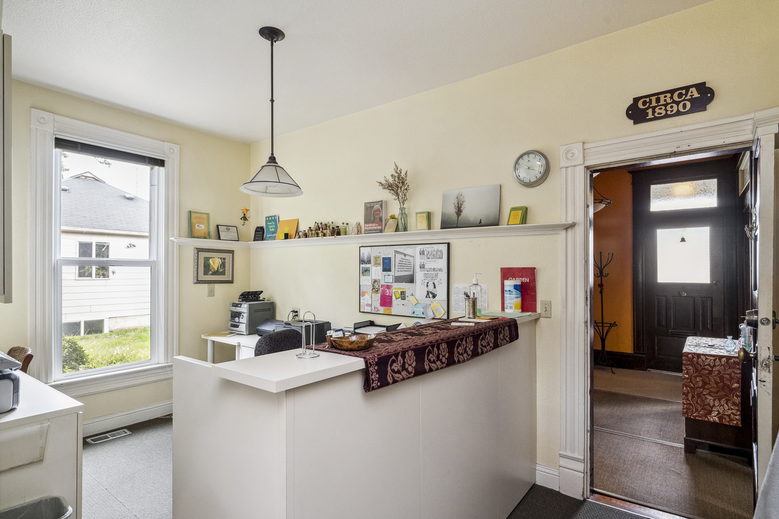 View ListingThis exceptionally charming Victorian office building is perfect for your business! The warm and inviting lobby features original unpainted millwork, architectural glass, and vintage light fixtures and is a fantastic way to welcome clients. The communal common space offers a welcome desk, kitchenette, relaxing lounge area, and ADA compliant bathroom and is an excellent training or group gathering space.