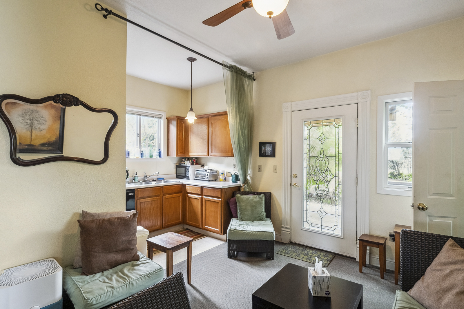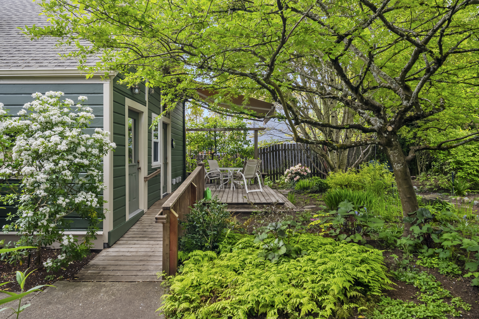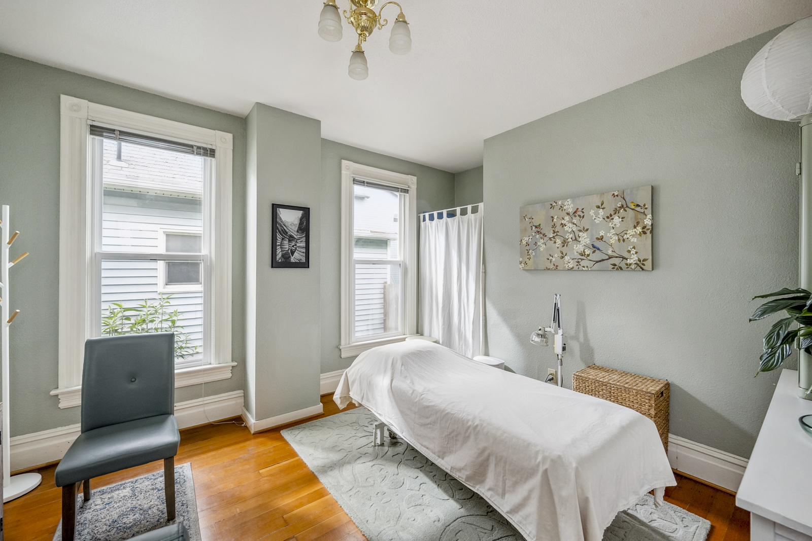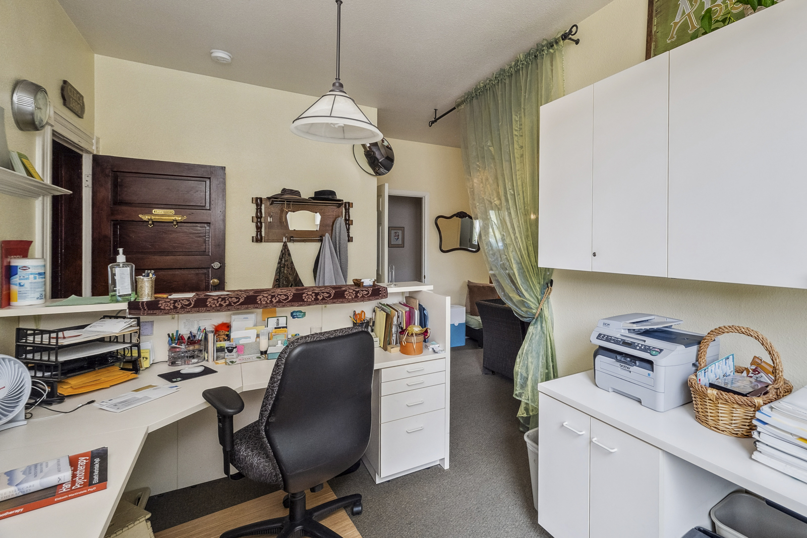 There are two private offices on the first floor, and three more upstairs: one of which has a gas fireplace and separate lounge and workspaces. A second full bathroom, off-street parking, and beautifully landscaped backyard- with retractable awning and wiring for electrical heat- are lovely touches that increase the rentability of the space. This property has been meticulously cared for through the years, and the maintenance shows. Each office is leased by individual long term tenants who are happy to stay on: enjoy a ready-made cash flowing investment property, take over one of the offices and have tenants pay most of your expenses, or move into the whole building and run your dream business from this creative, historic property. There is even potential for a live/work space here: the opportunities are endless!